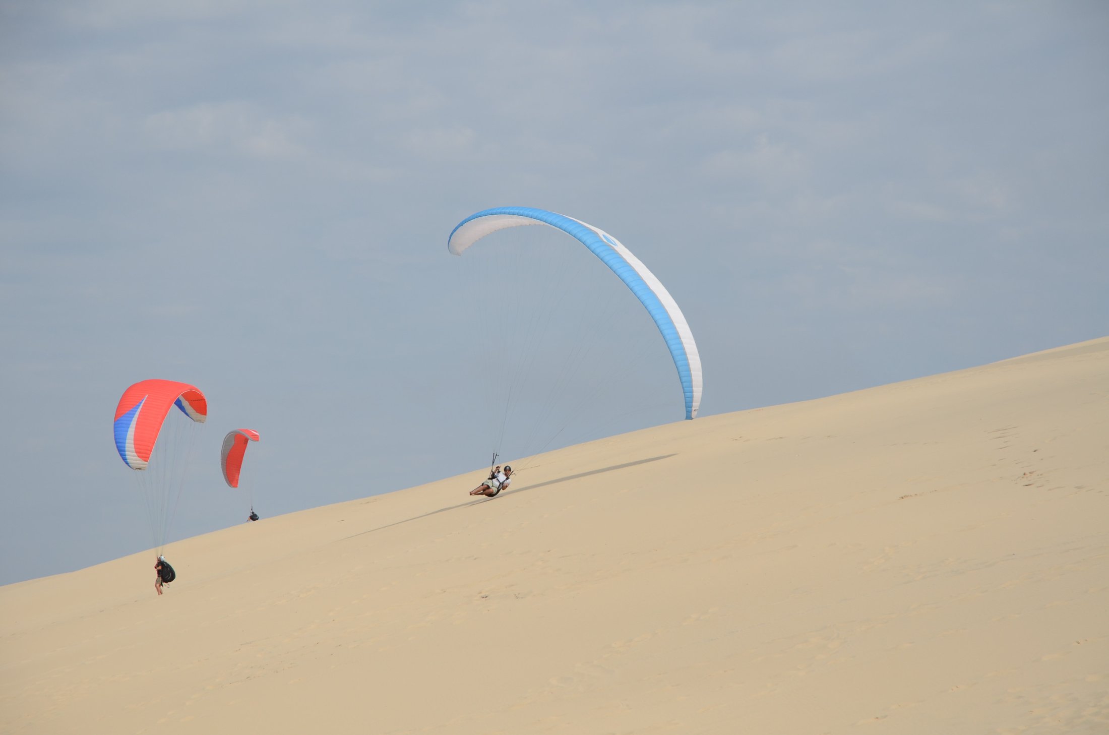Die von der Meerbrise angewehte und -gehäufte 100 Meter hohe Dune du Pyla an der französischen Atlantikküste wird zu unserem Spiel- und Flugplatz. Groundhandling, Kiten, Touch & Go und Waggas sind die Zauberwörter dieser Gleitschirmreise. In einzigartigem Umfeld erleben hier Gleitschirmler aller Niveaus spielerisch die Leichtigkeits des Fliegens und Seins.