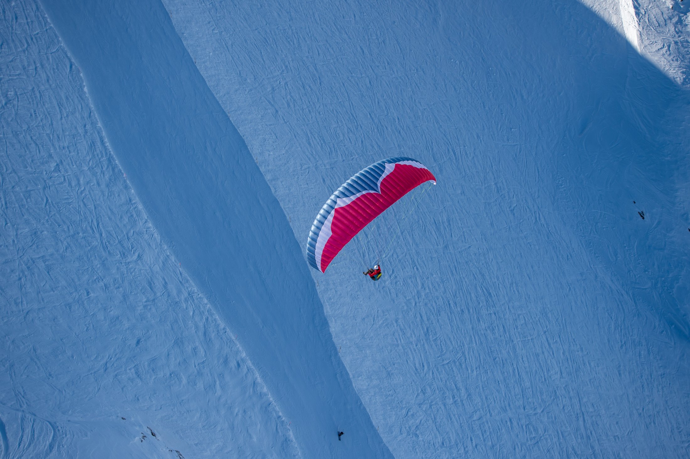 Früh morgens schwingen wir uns aufs Brett bzw. die Bretter und geniessen den frischen Powder, die präparierte Piste, die Langlaufloipe, den weltbekannten Slopestyle-Park oder gar die Monsterpipe oder die Monsterkicker aufm Crap - je nach Lust und Können. Am späteren Vormittag tauschen wir unsere Bretter gegen unsere Flügel ein, und los geht's mit Fliegen. Die Berge um Flims bieten uns Tuchflieger*innen schon im März mit apernden Südhängen spannende Flugbedingungen. Dies nutzen wir, um den Flug mit Skiern zu erlernen, unsere Thermikskills für die neue Saison zu verbessern, die ersten längeren Flüge zu geniessen, einfach Flüge fürs Brevet zu sammeln oder schlicht und einfach die fantastischen Kulisse aus der Luft zu geniessen. Streckenfluganfänger*innen können sich in einer Umgebung mit zuverlässiger Thermik und vielen Aussenlandemöglichkeiten auf ihre ersten Streckenabenteuer begeben. Nach der Landung können wir nach Lust und Laune in einer der landeplatznahen Bars den Après-Fly Abend starten.