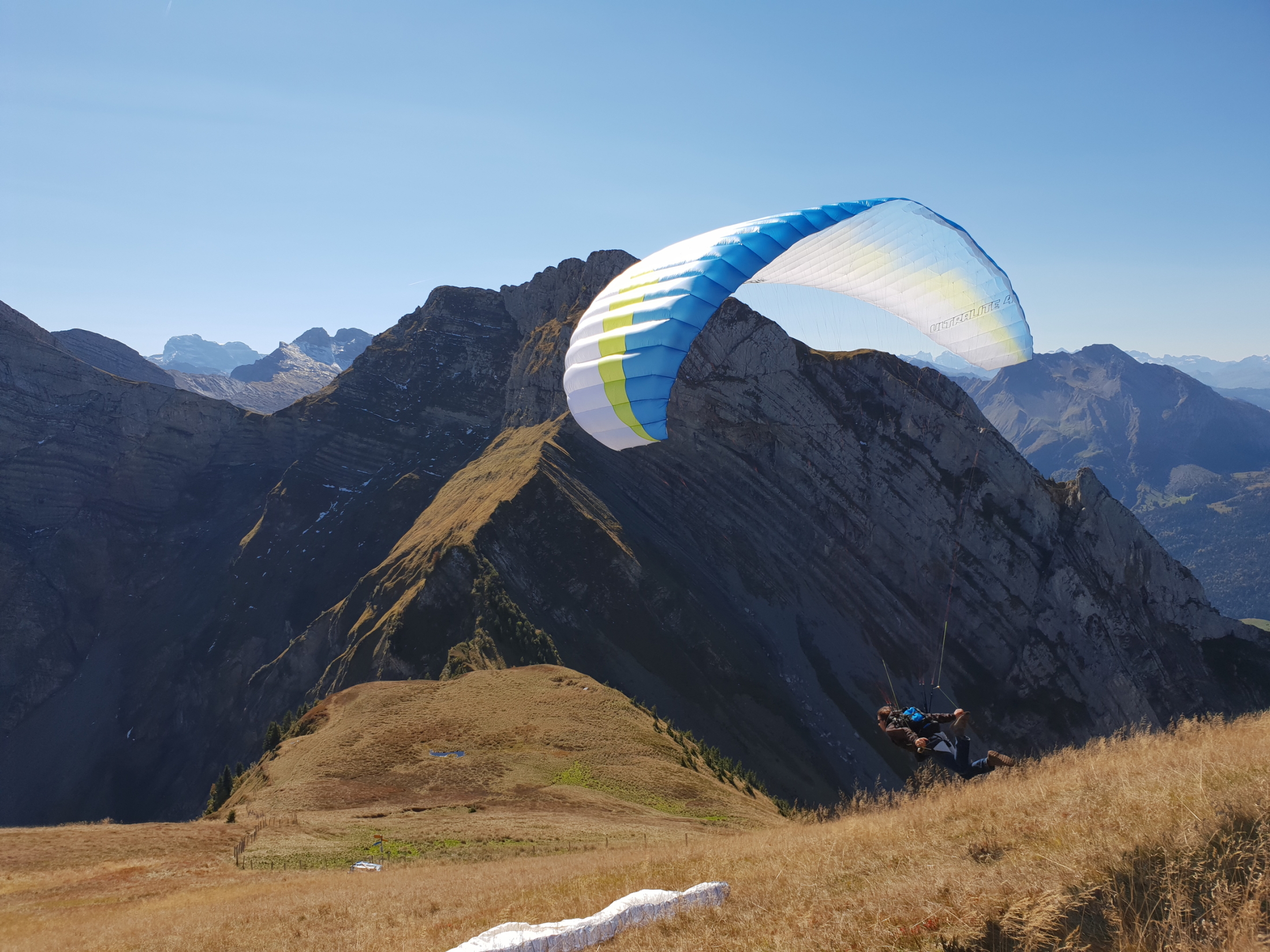 Direkt auf und neben dem Gipfel gibt es Startmöglichkeiten in Richtung S, SW (ideal) und W (etwas anspruchsvoller). Die Neigung ist ideal, die Startfläche eher kleinräumig und wie immer im Gebirge nicht ganz anspruchslos. Schwierigkeitsgrad: mittel.
