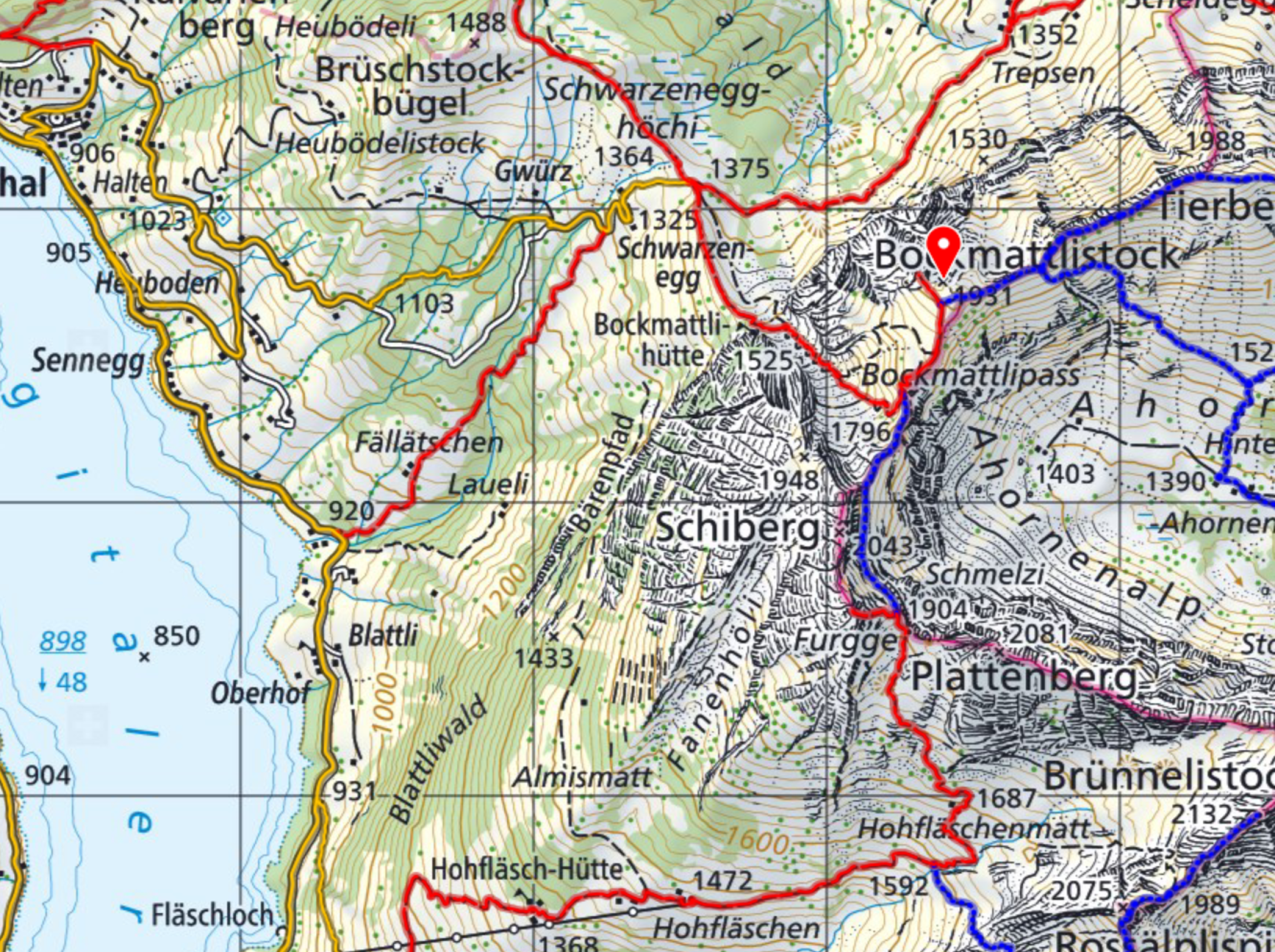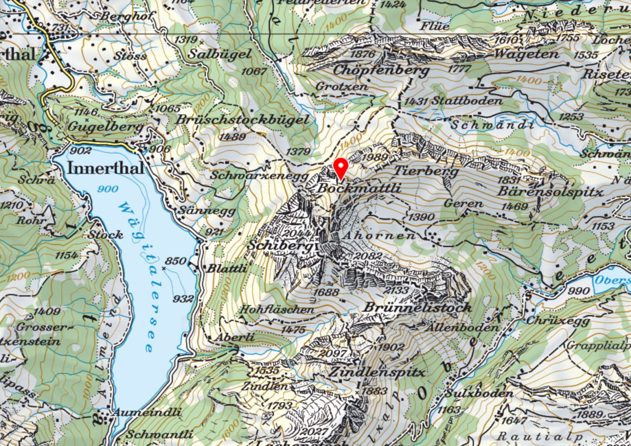 Der Ausgangspunkt (920 m) liegt ca. 1,5 km südlich von Innerthal nahe dem Restaurant Oberhof (47.093042, 8.931690) am Wägitalersee. Von hier führt ein gut markierter Wanderweg über Fällätschen und Alp Schwarzenegg (1325 m) zur Bockmattlihütte (1525 m), wo man sich den schwindelerregenden Nordwänden des Bockmattlis gegenübersieht – beliebt bei Kletterern. Dann wird es auch wegmässig steil: Eine zackige Serpentine führt den Chälen hoch zum Bockmattlipass (1796 m), welcher die Kantone Schwyz und Glarus verbindet. Auf Schwyzer Boden erreicht man kurz danach den Bockmattlistock (1931 m), der, etwas lieblicher, DAS Bockmattli genannt.