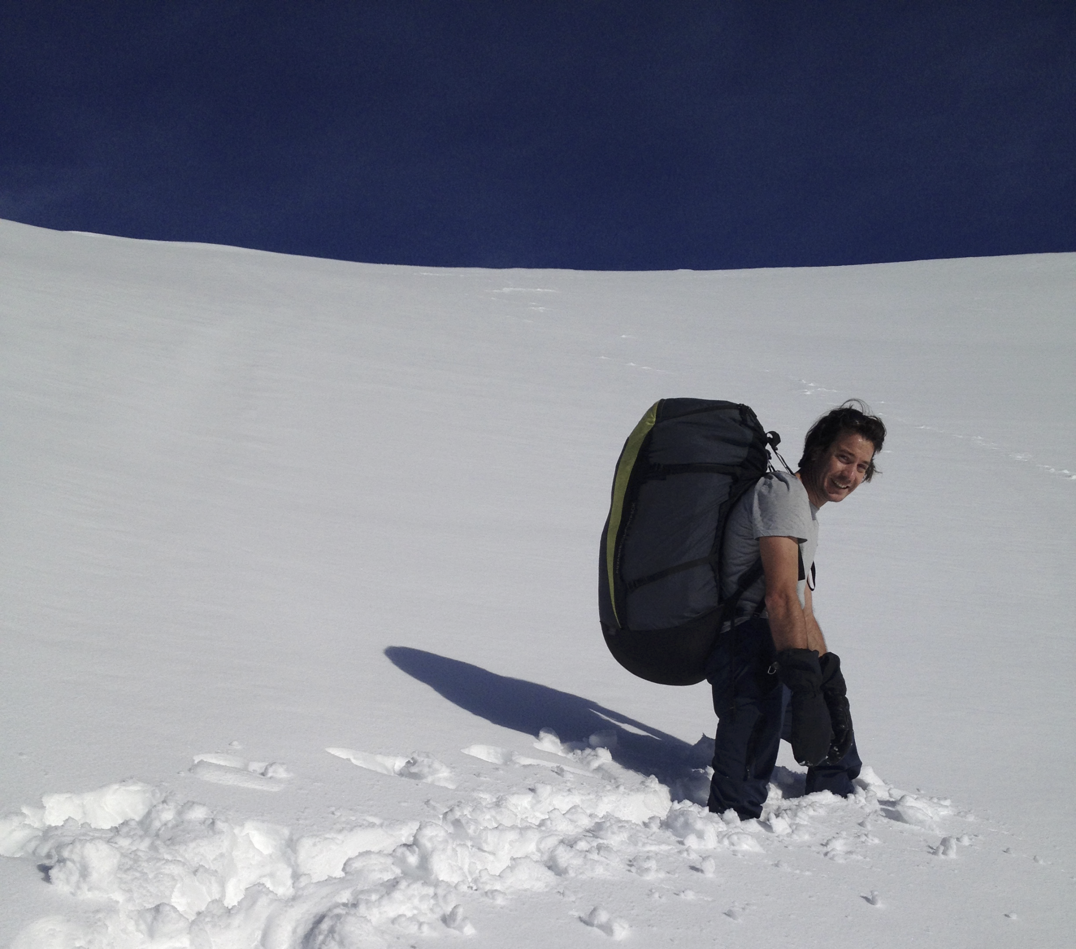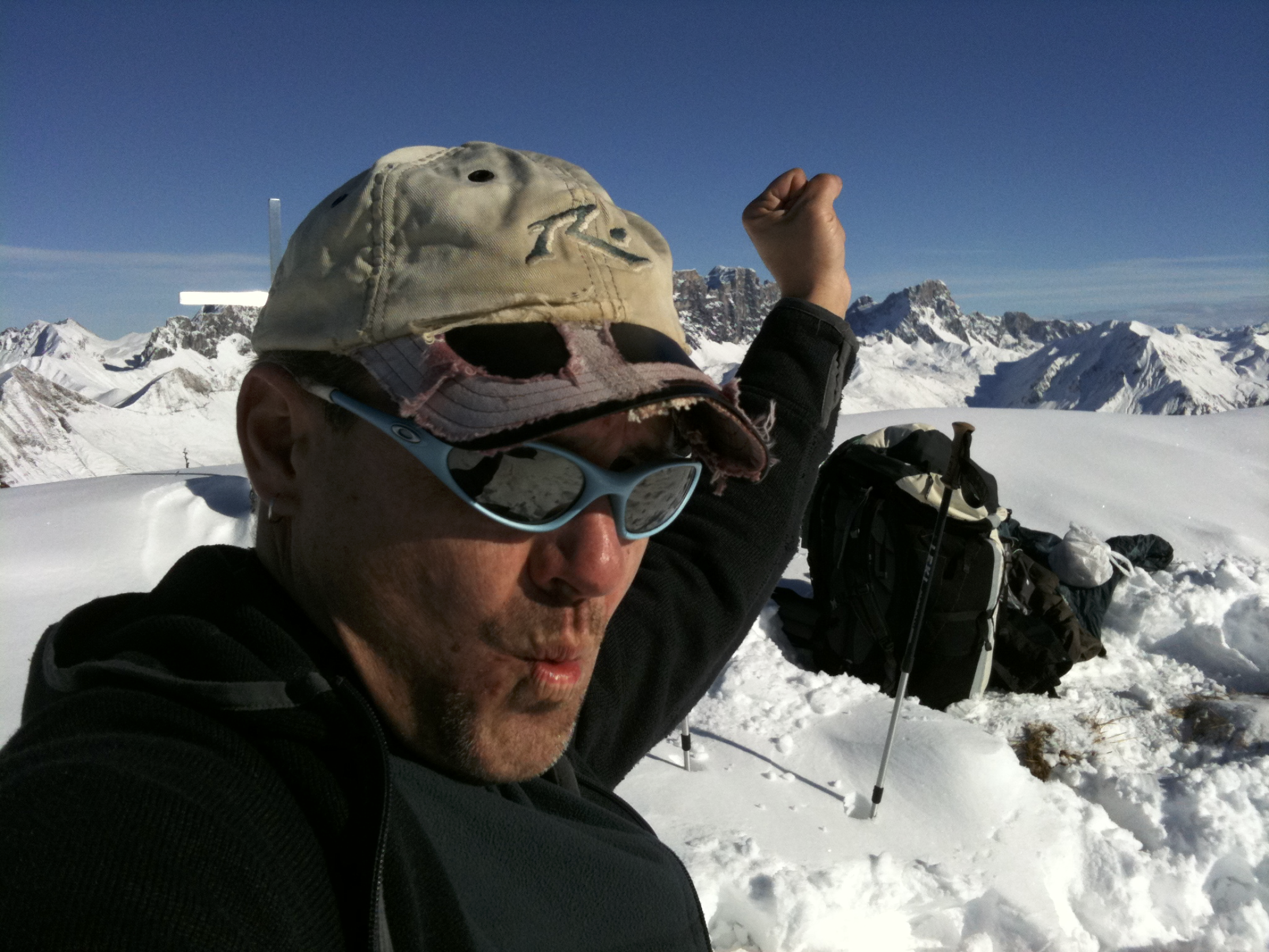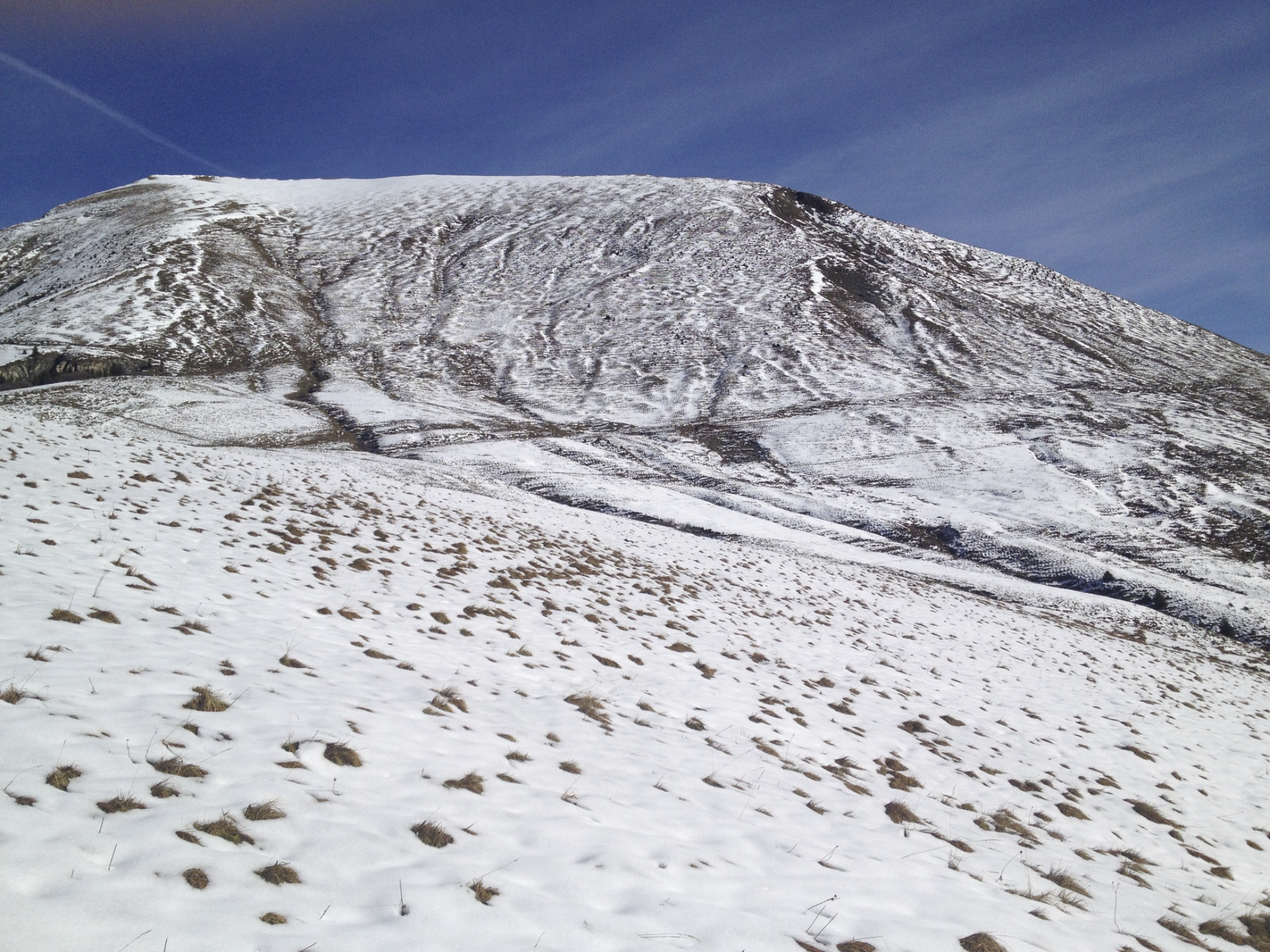 Gleich vom Gipfelkreuz weg: eine wunderbare, grosszügige Flanke in Richtung SW! Einfach.