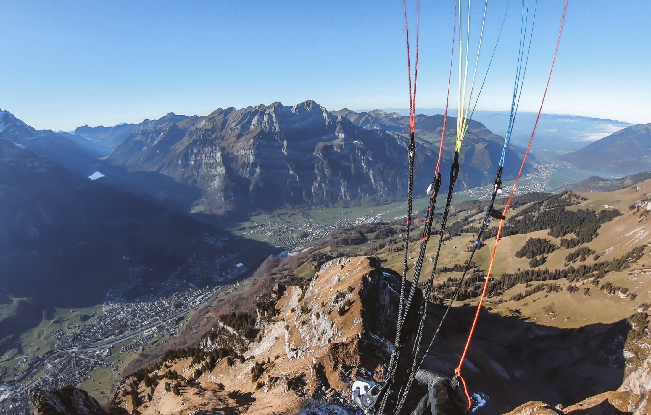 Der Wind im Glarnerland kann sich schnell ändern, die Talwinde und thermischen Bedingungen können stark sein. Checke den Wind an der Messstation des Flughafen Mollis bevor Du startest. Die Startplätze sind zwar nicht riesig, aber ein Abbruch ist jederzeit möglich. Achte sehr gut auf die Windverhältnisse. (Lee) Versuche nie die Abkürzung mit der Bahn von Ennenda durch das Naturschutzgebiet zu nehmen, denn dies ist verboten und wird kontrolliert.