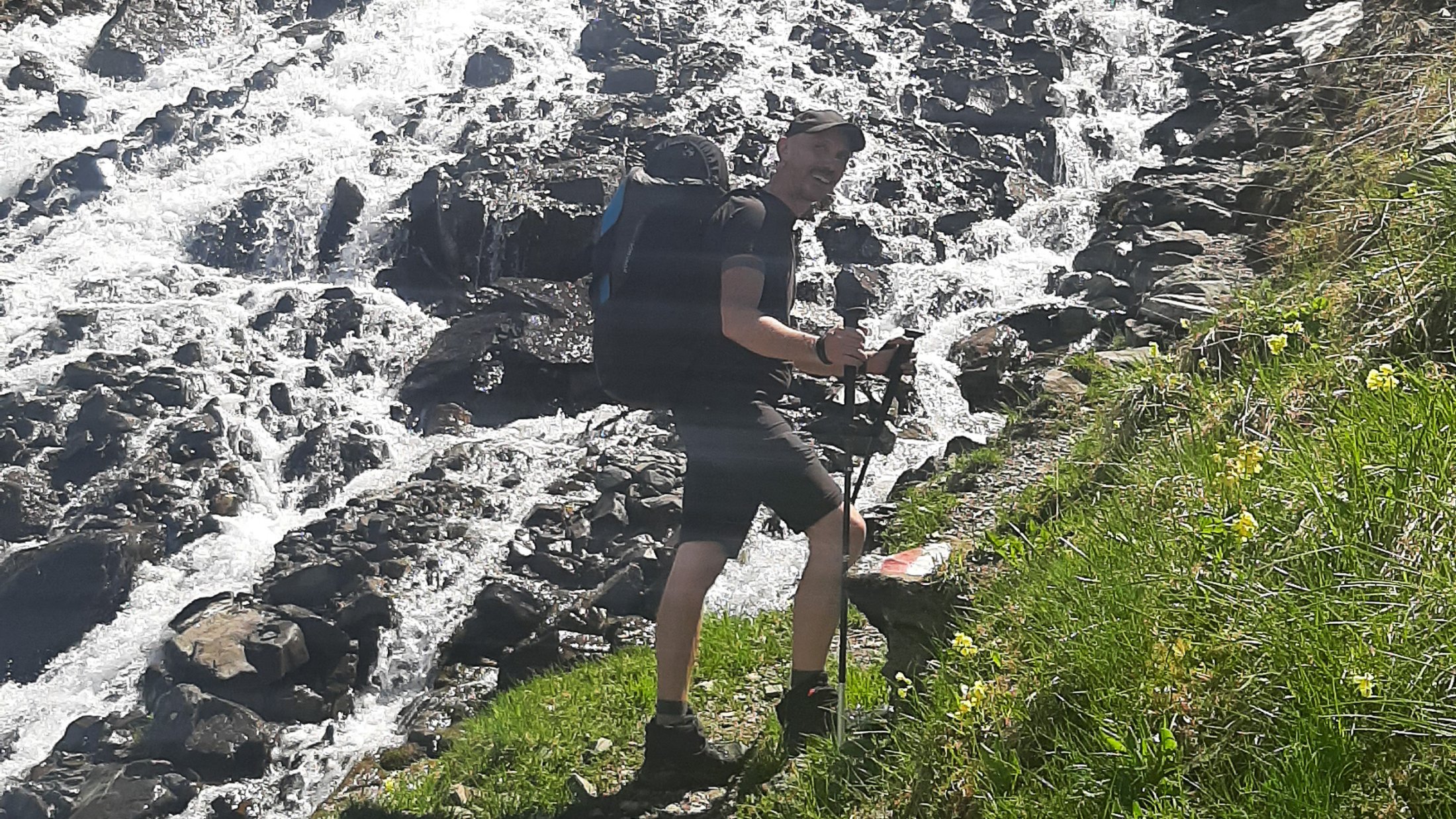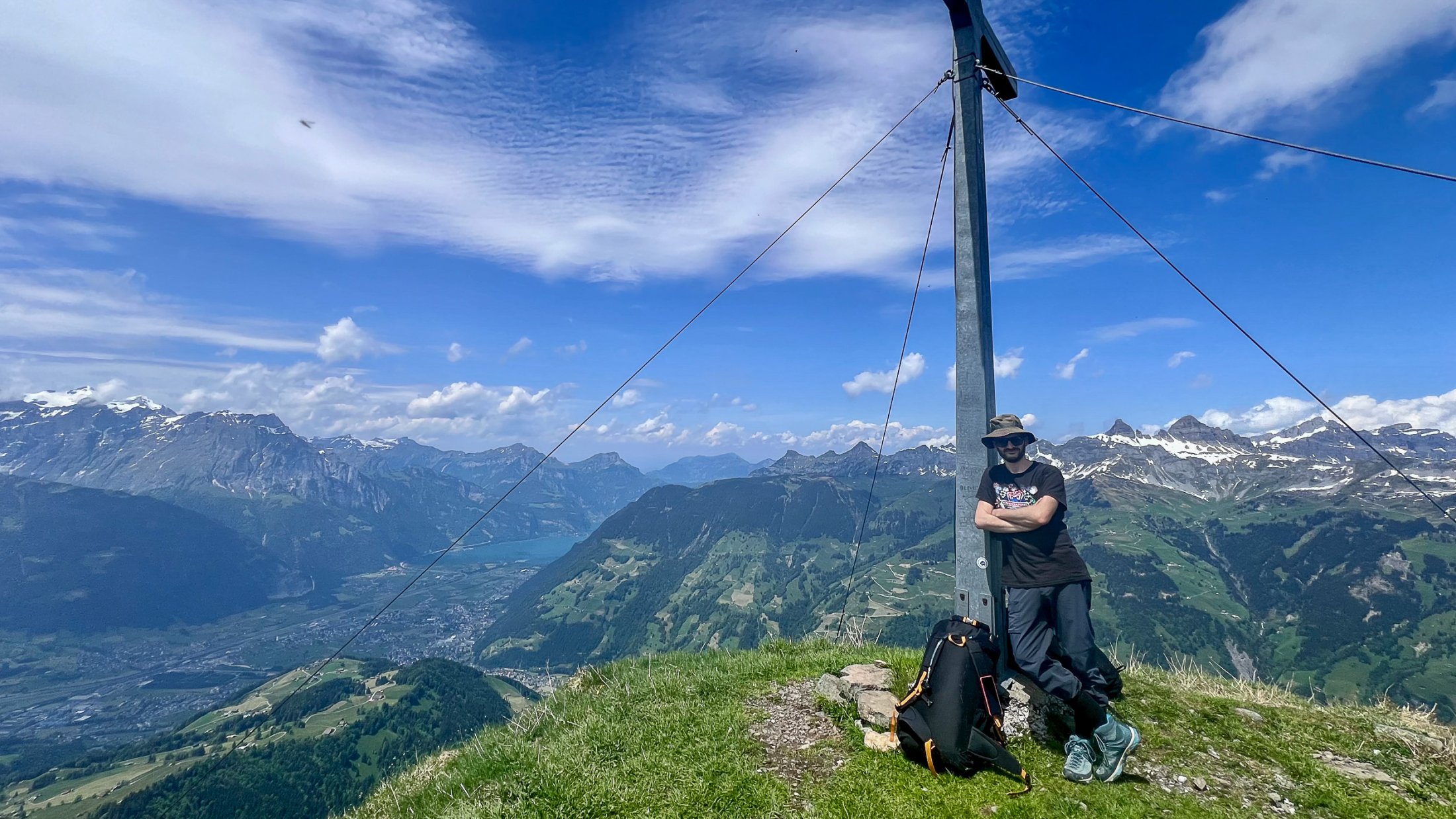 Auf 1800 Metern Höhe begegnet uns ein reissender Bach, der uns vor eine kleine Herausforderung stellt. Die heftigen Regenfälle der letzten Tage und das schmelzende Schneefeld oberhalb von uns (es ist Anfang Juni) sorgen dafür, dass wir nach der Bach-Querung mit nassen Socken dastehen. Bei einer kurzen Rast versuchen wir, unsere Füsse wieder etwas zu trocknen. Der letzte Abschnitt des Aufstiegs bleibt steil und hat stellenweise einen alpinen Charakter. Hier ist etwas Trittsicherheit gefragt. Der Aufstieg mag anstrengend sein, doch die Mühe wird mit einer atemberaubenden Aussicht über die urner Bergwelt belohnt. Nur wenige Meter unterhalb des Startplatzes erwartet uns eine perfekte Wiese, die bei Westwind ideal zum Starten einlädt.
