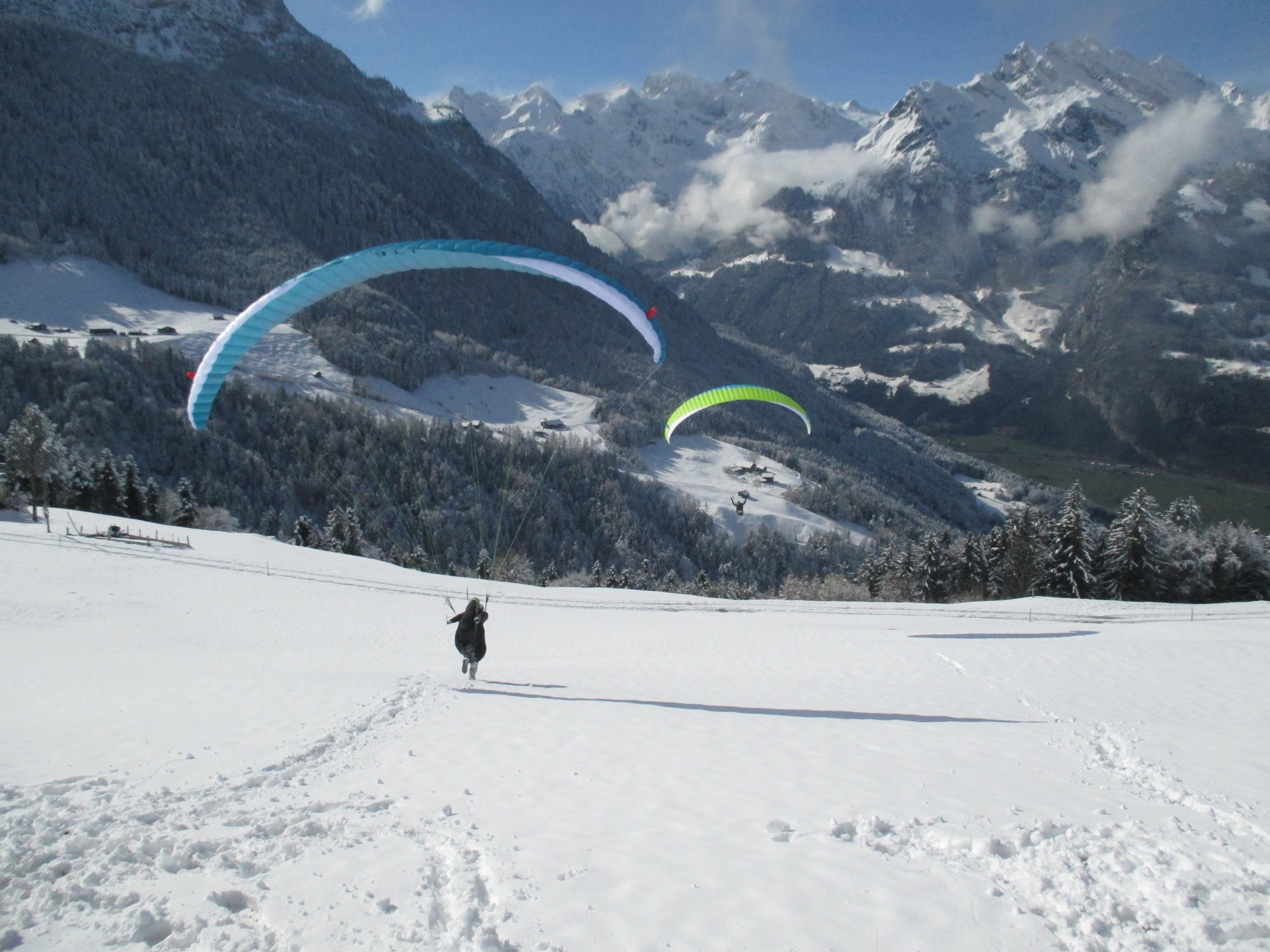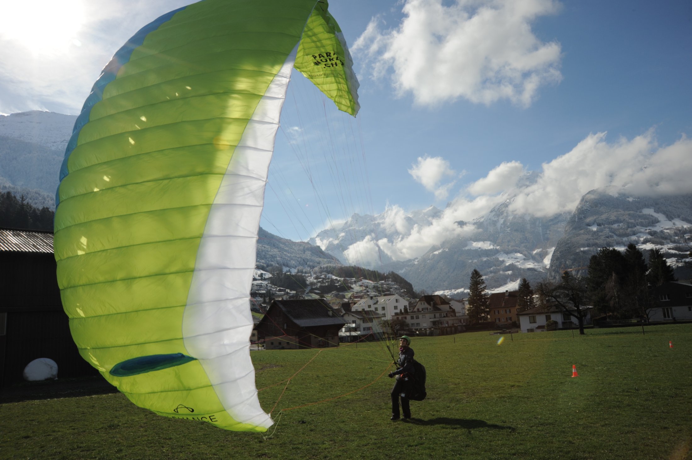 Am Händlermeeting von Advance in Mürren flog ich, Timo, den EPSILON 8. Der kurze Flug vom Schiltgrat nach Stechelberg hinterliess lauter Glücksgefühle. Der Start bei sehr starkem und turbulentem Wind gelang mit dem EPSILON 8 problemlos und ohne grossen Input von mir. Der Flug in turbulenten Bedingungen war zwar unruhig, aber die Kappe blieb immer offen und stabil über meinem Kopf. Über dem Lauterbrunnental konnte ich den neuen Advance-Schirm auf Herz und Nieren prüfen.