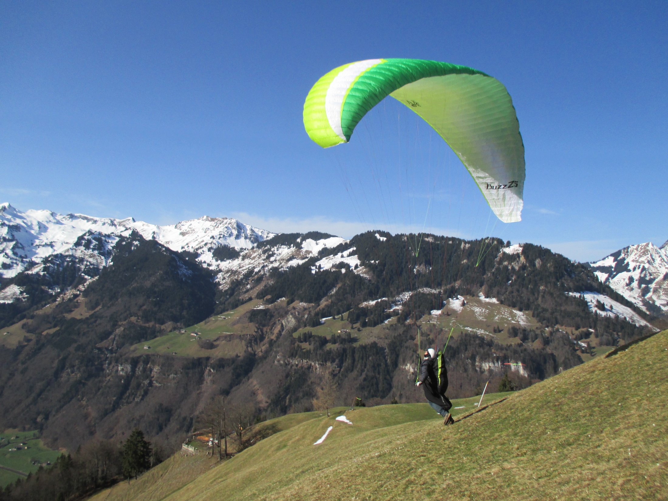 Die Traggurten sind solid und die drei Ebenen überschaubar. Der BUZZ Z5 startet einfach und die Kalotte steigt in gut kontrollierbarem Tempo und stoppt da, wo man will. Beim Start und später im Flug profitiert man von der sehr stabilen Kappe, die viele Störungen aufnimmt und schluckt, was ein ruhiges Fluggefühl zur Folge hat. Die Trimmgeschwindikeit ist durchschnittlich, ebenso das Tempo im einfach zu beschleunigenden Flug. Dass der Flügel die Quer- und Längsachsen nicht so gern verlässt, widerspiegelt sich bei der Wendigkeit; der BUZZ Z5 ist sicherlich nicht der agilste Flügel seiner Kategorie. Hohe Wingover und SATs lassen sich damit aber allemal fliegen.
