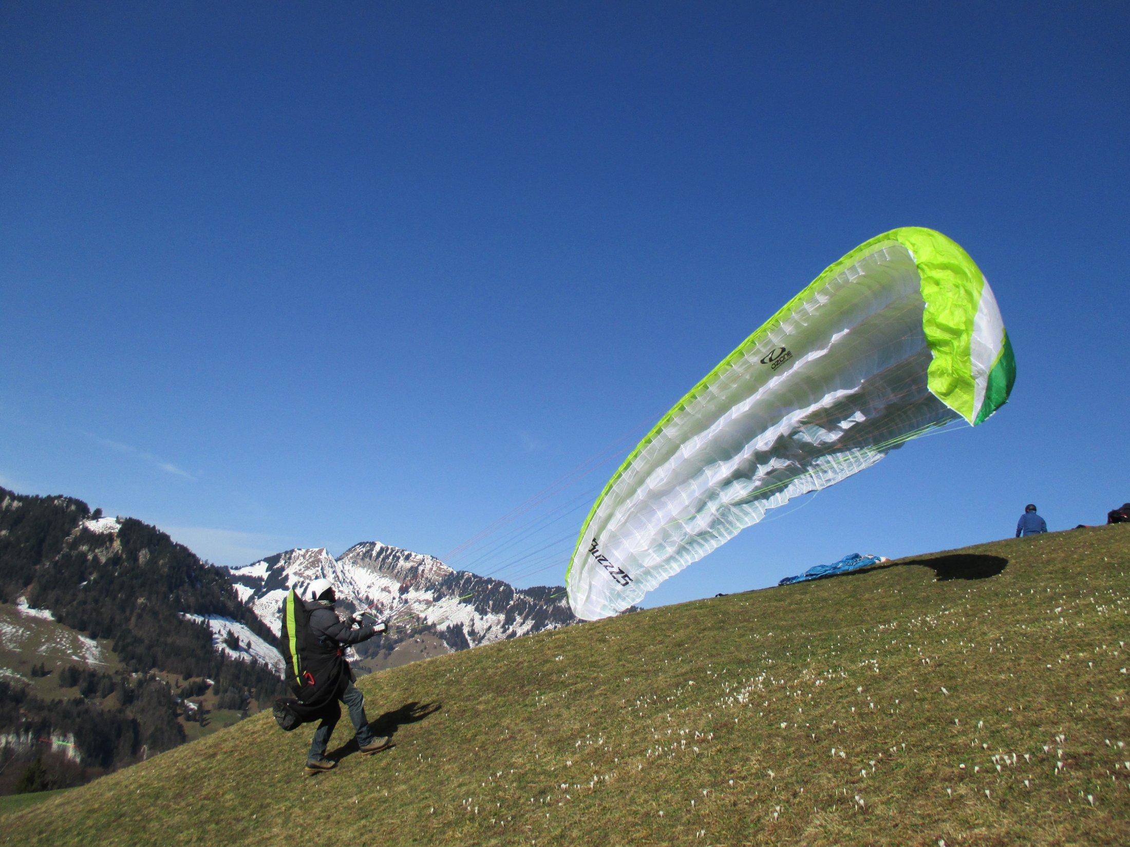 Im Steigen kommt die eigentliche Stärke des Z5 zur Geltung. Der Schirm zeigt die Thermik verlässlich an und beisst sich rein. Er steigt ruhig und stabil und kann sehr sehr flach gedreht werden ohne an Leistung einzubüssen. Was will man mehr?! Wir waren davon hell begeistert.