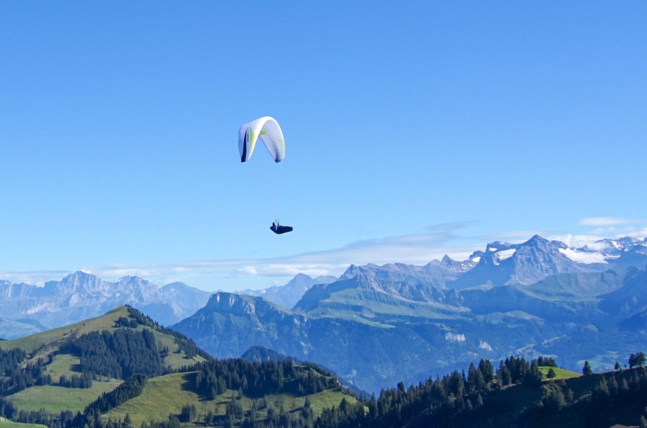 Seit einigen Wochen fliege ich - Ueli - den neuen Hochleister der Deutschen Firma Skywalk. Ein echter D Schirm mit viel Leistung und schönem Handling.