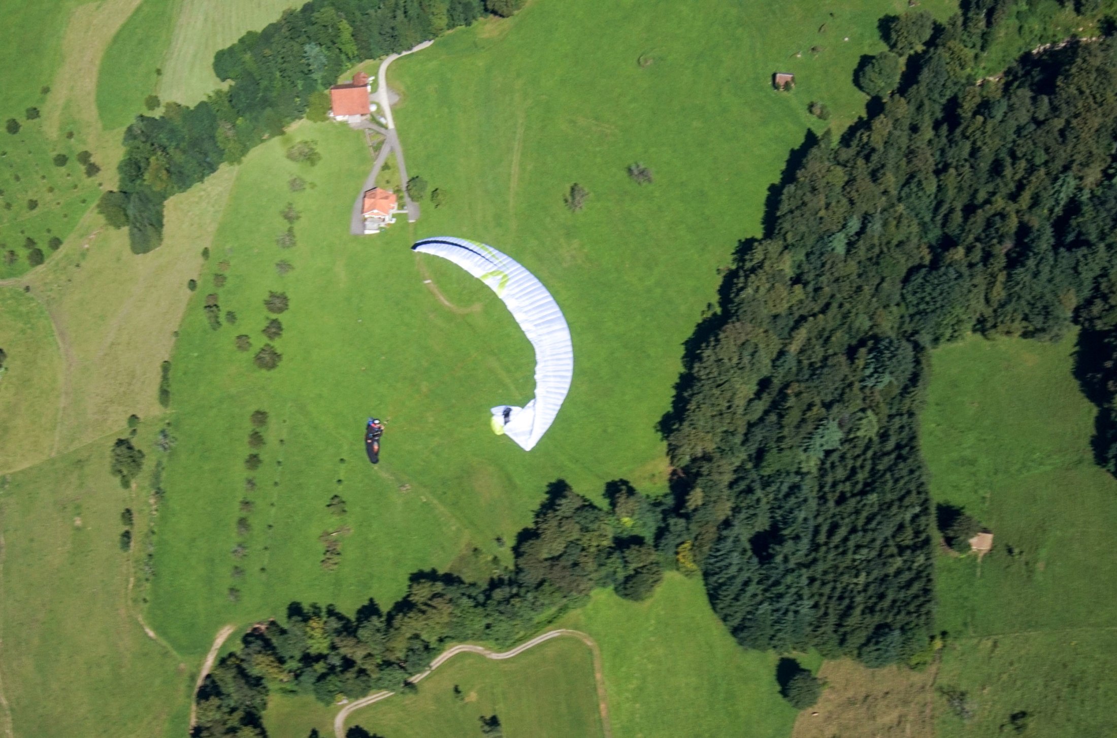 Im Langsamflug werden die Steuerdrücke immer härter und der Flügel zeigt den kommenden Strömungsabriss schön über den Aussenflügel an. Der einseitige Strömungabriss ist überschaubar, der Schirm fährt nach leichtem Vorschiessen sofort wieder an. Sackflug ist ebenfalls gut fliegbar, der Flügel bleibt sauber in der Luft und "verwindet" sich nicht. Nach leichtem Vornicken fährt die Kappe sofort wieder an. Fullstall habe ich nicht geflogen.