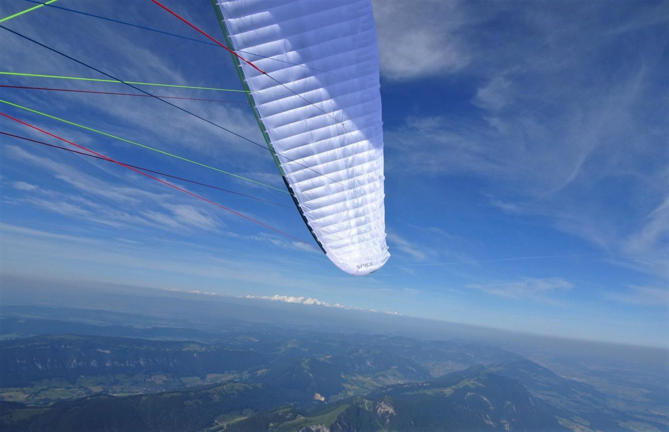 Es fliegt sich gut unter dem SPICE 2. Ein leises Schwirrgeräusch, wie es auch dem Vorgänger eigen war, begleitet den Flug. Das ist aber keineswegs störend, im Gegenteil, viel eher vermittelt es den Eindruck, mit hoher Geschwindigkeit dahinzugleiten. Nach kurzem Vorlauf reagieren die Bremsen sehr direkt und präzise. Das fliegt sich geschmeidig und macht Spass, vor allem bei hoher Beladung.