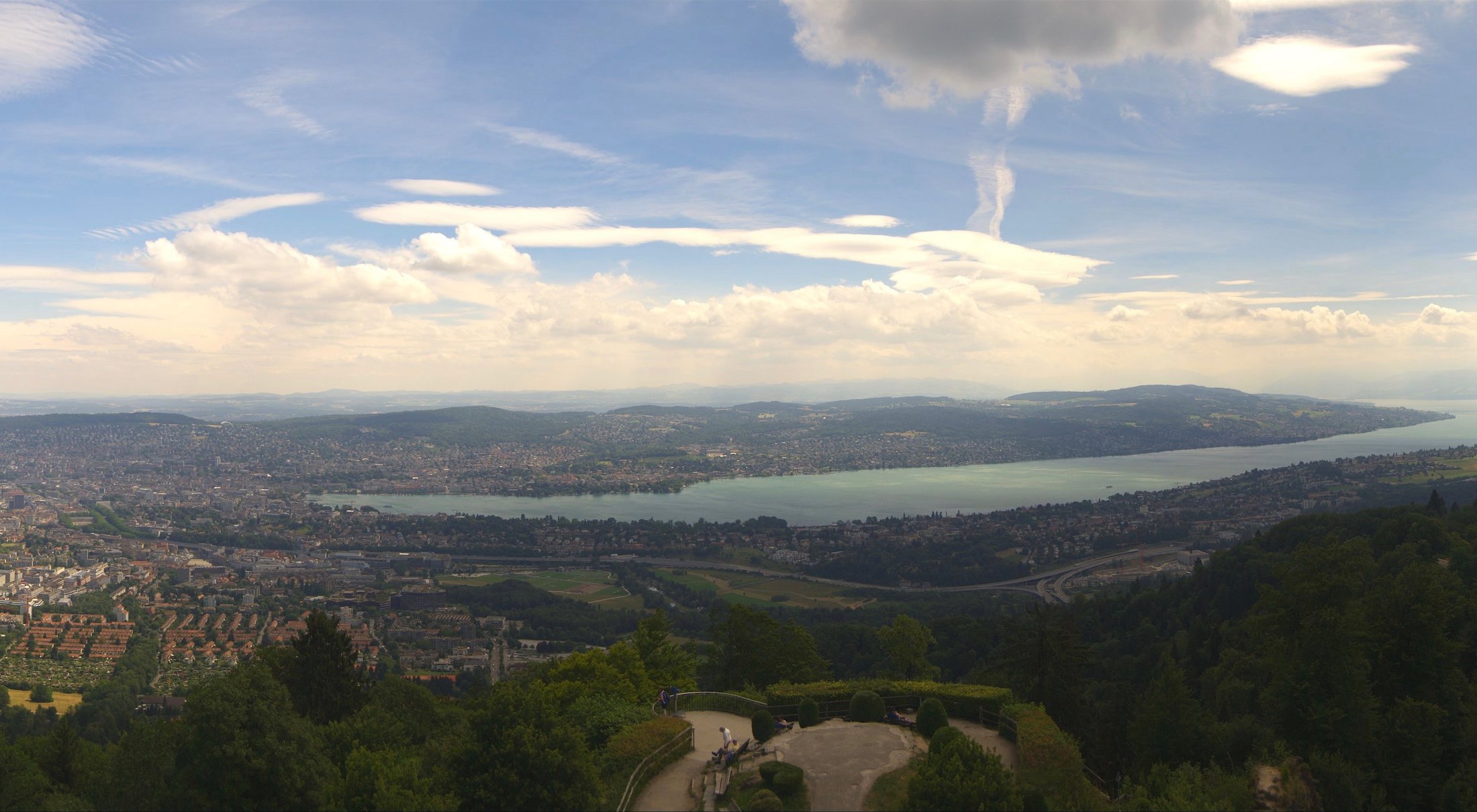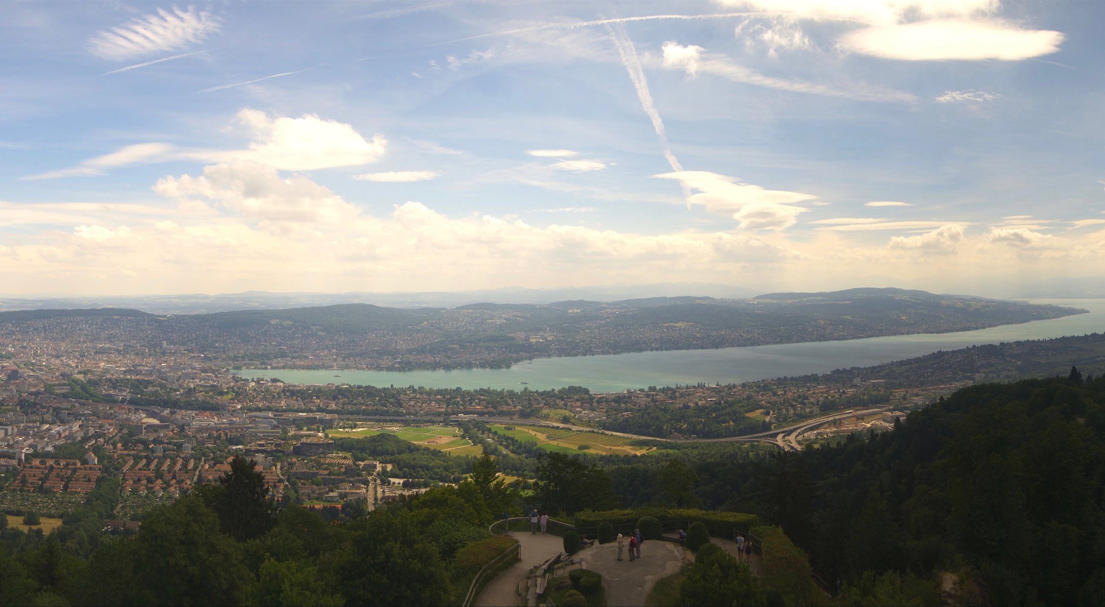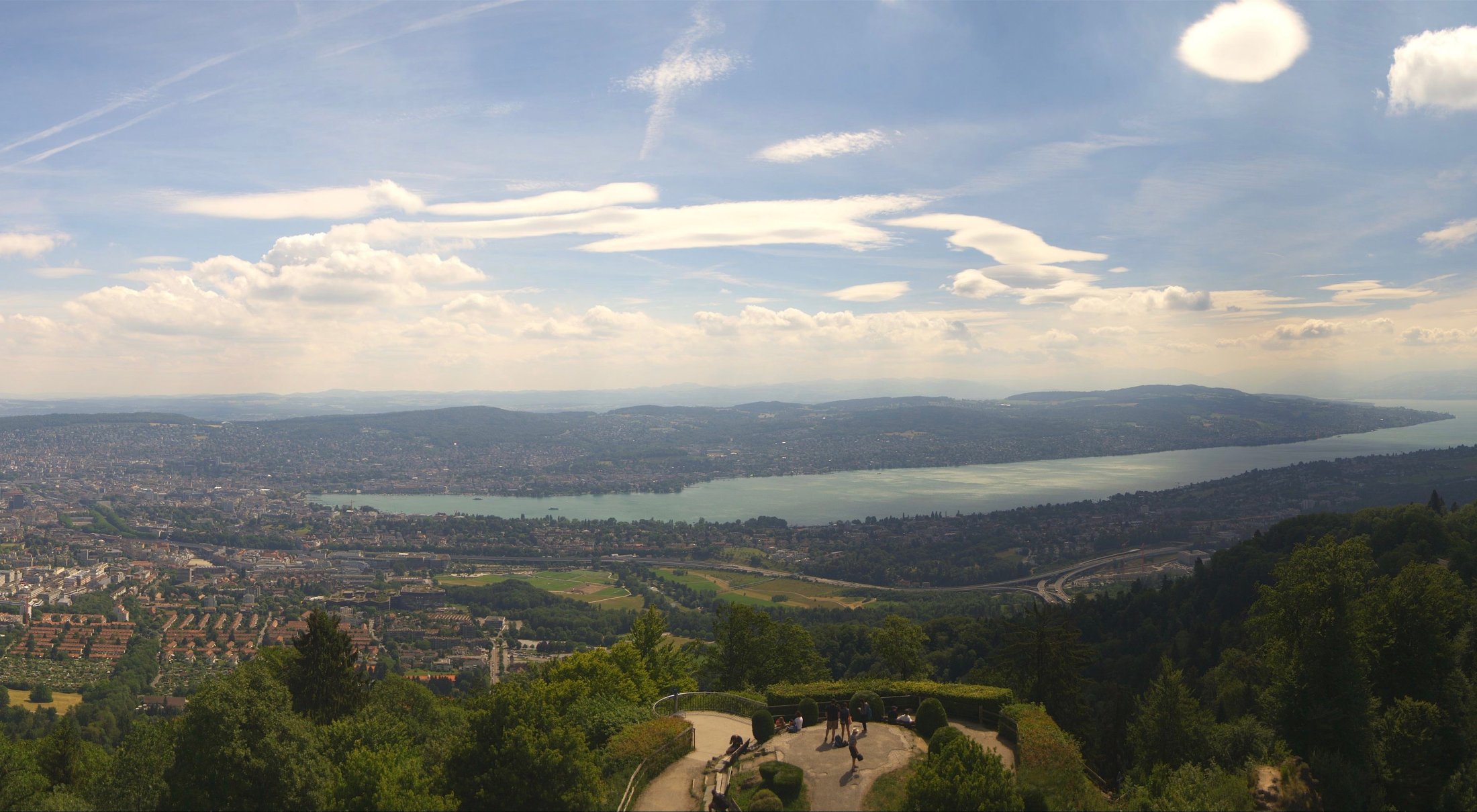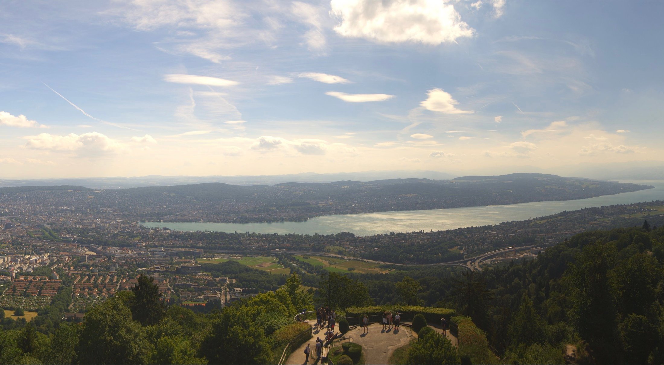 Die Bilder der nachfolgenden Fotostrecke wurden von der Roundshotkamera Üetliberg Kulm zwischen 10:10 und 14:50 Uhr im Takt von 10 Minuten aufgenommen. Wir blicken ziemlich genau in Richtung Ost.