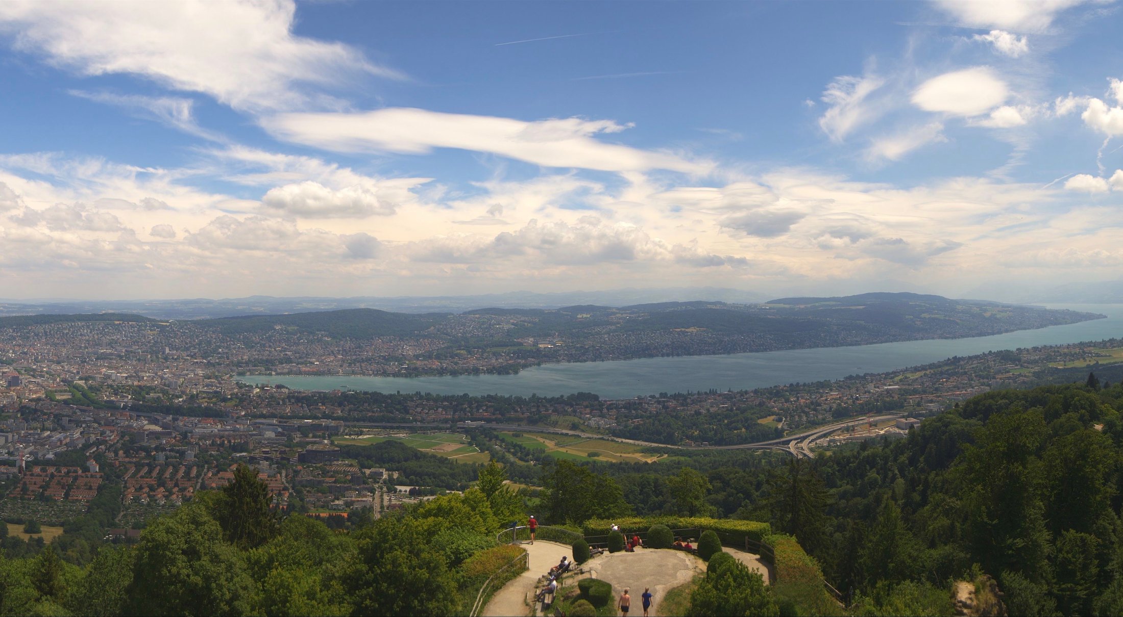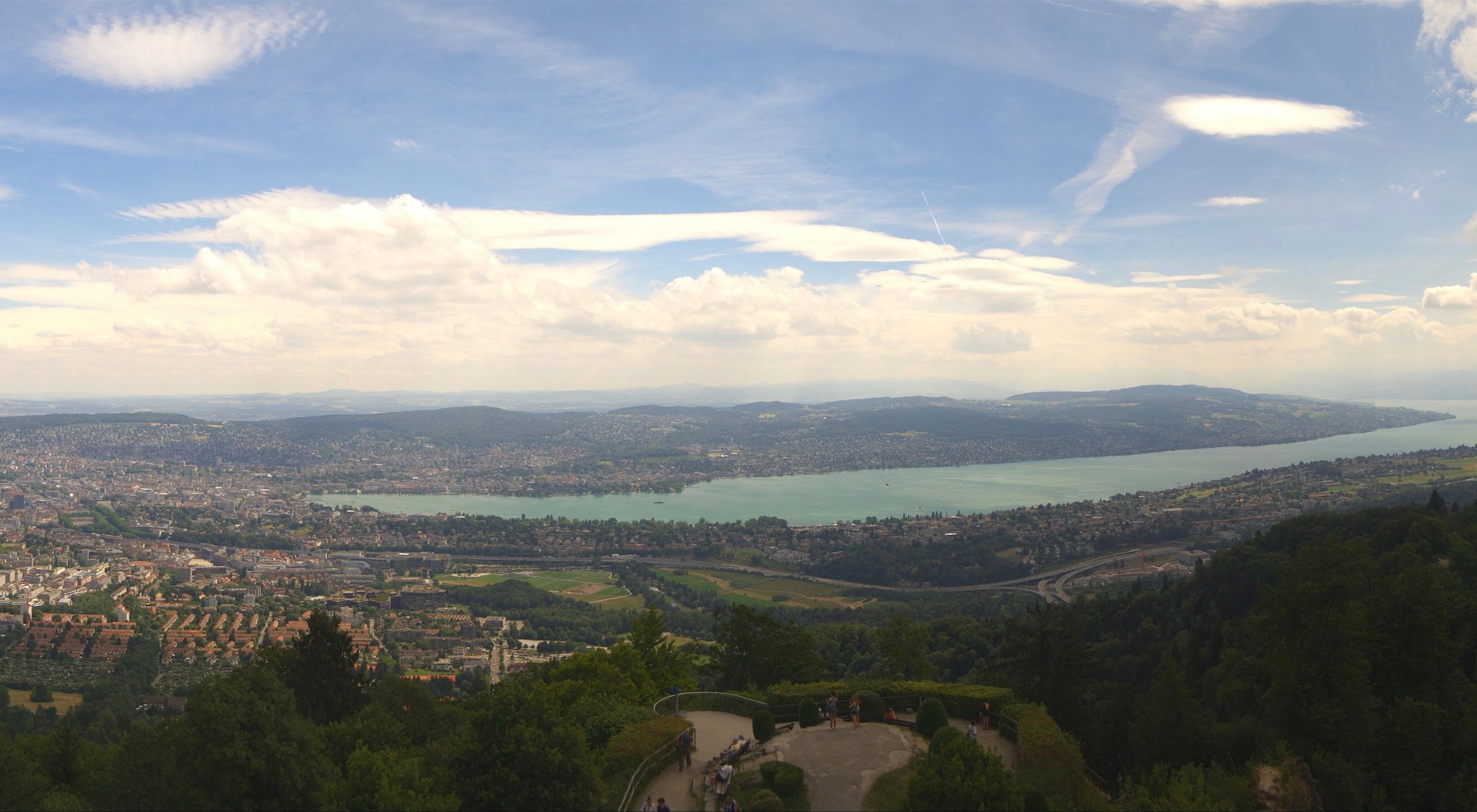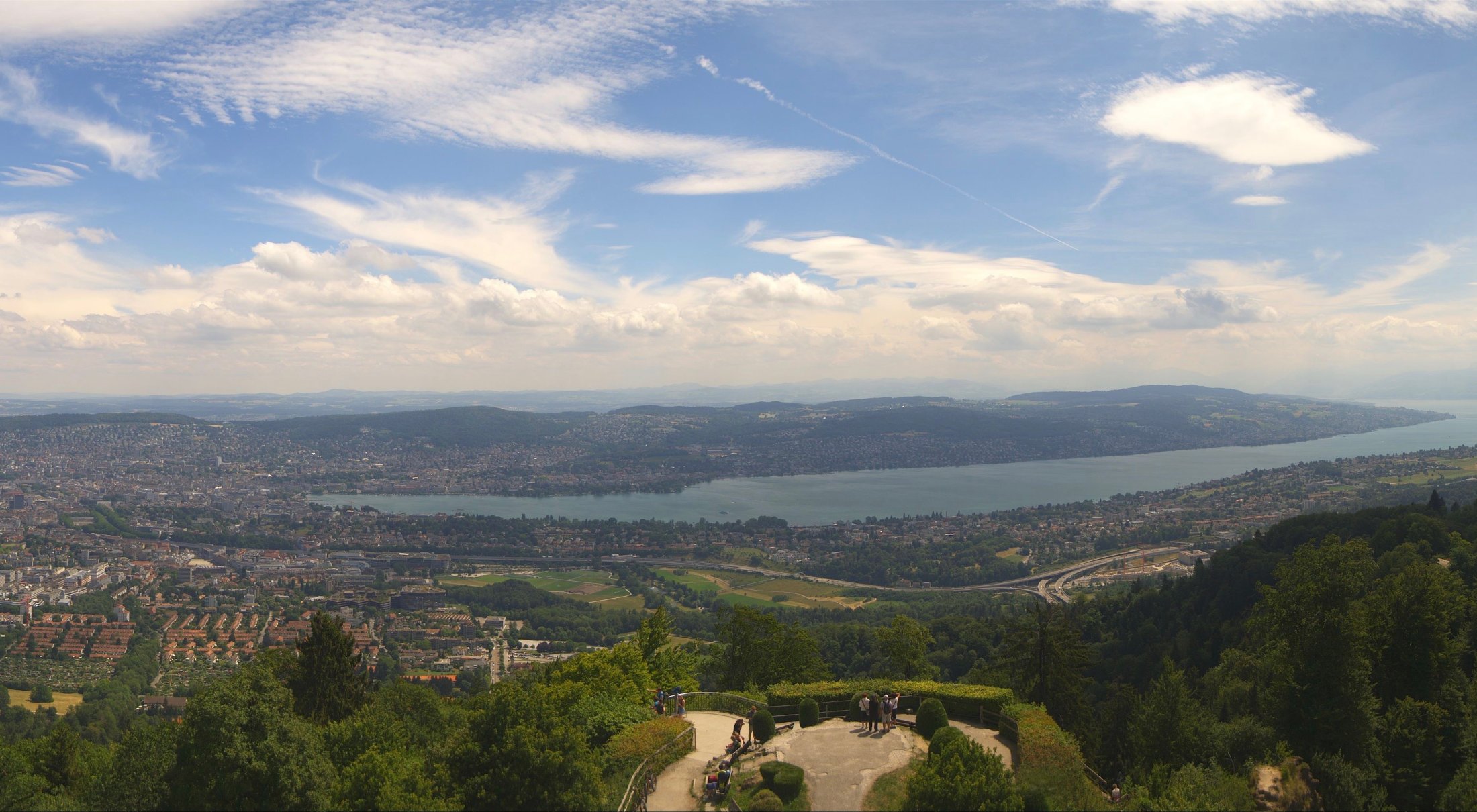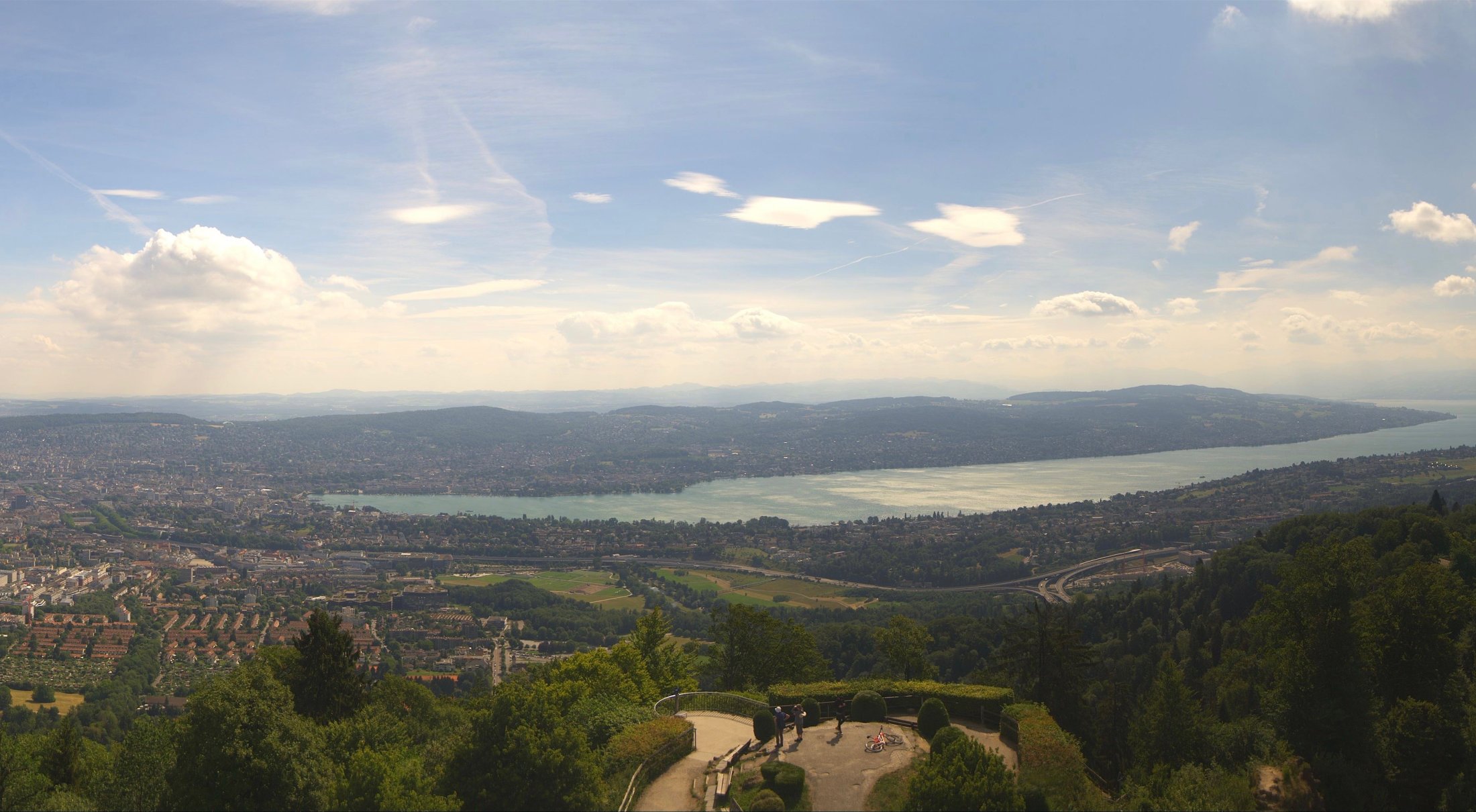 Die Bilder der nachfolgenden Fotostrecke wurden von der Roundshotkamera Üetliberg Kulm zwischen 10:10 und 14:50 Uhr im Takt von 10 Minuten aufgenommen. Wir blicken ziemlich genau in Richtung Ost.
