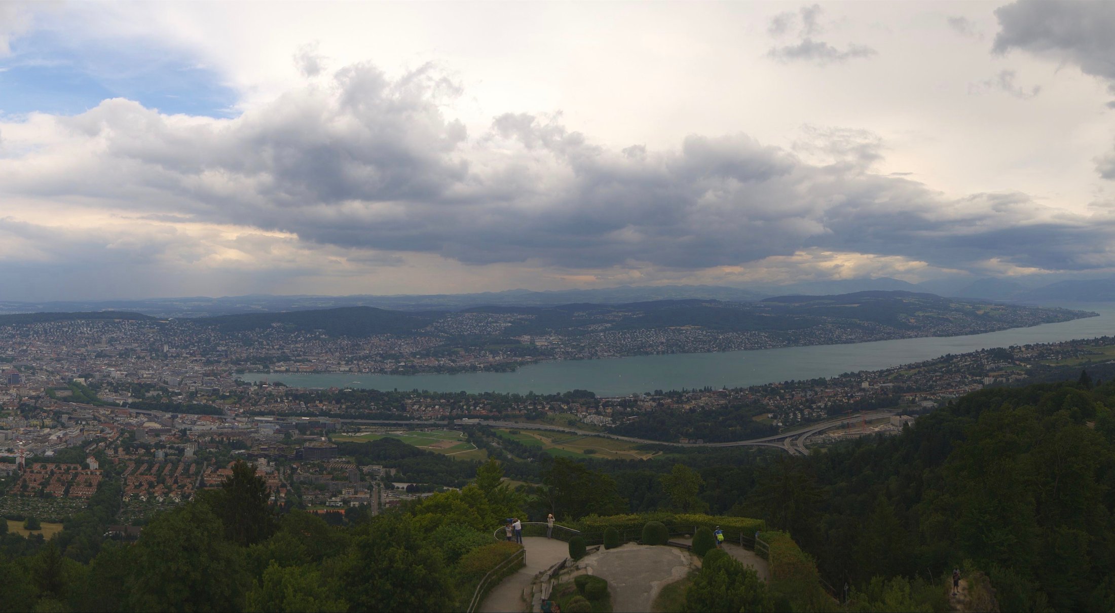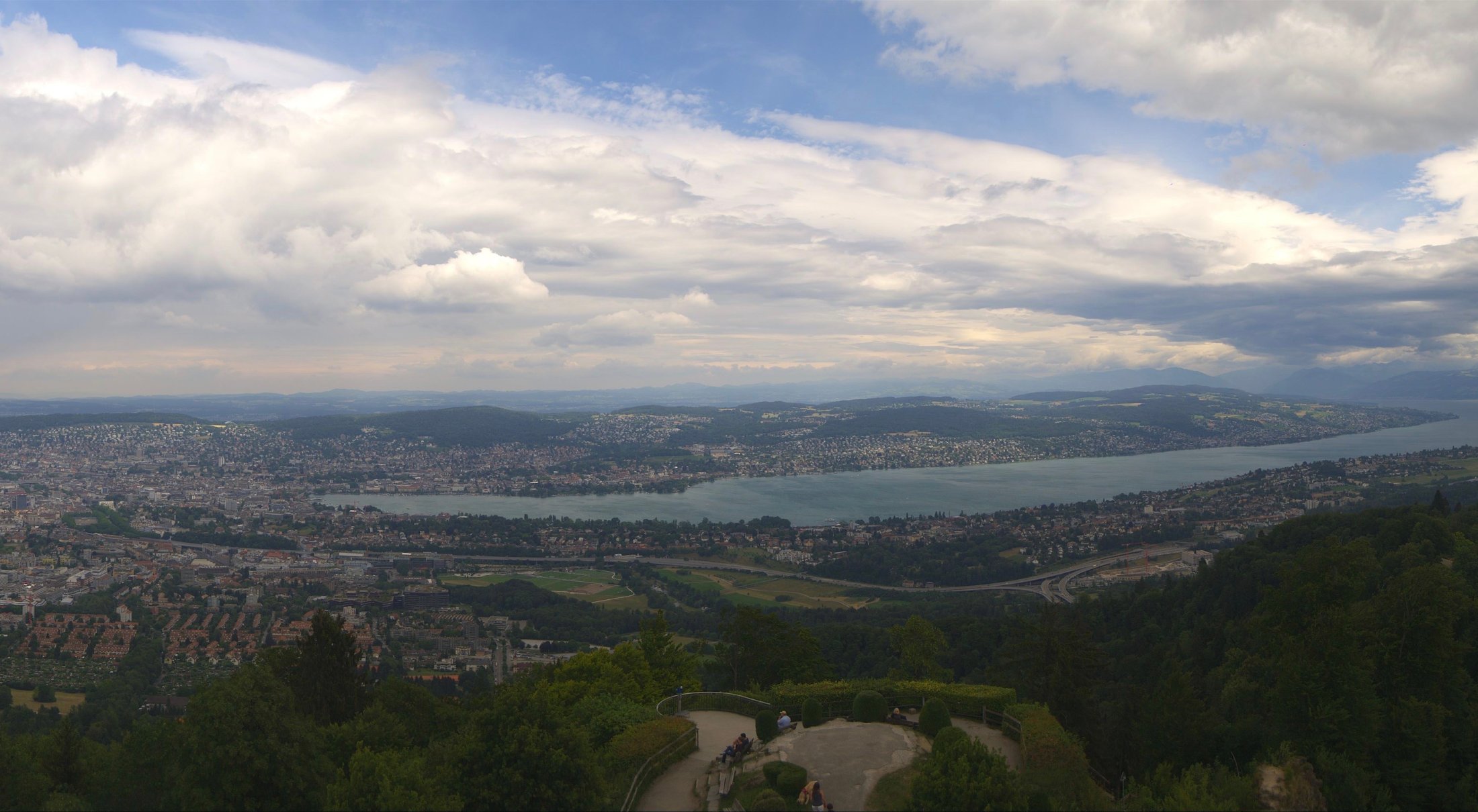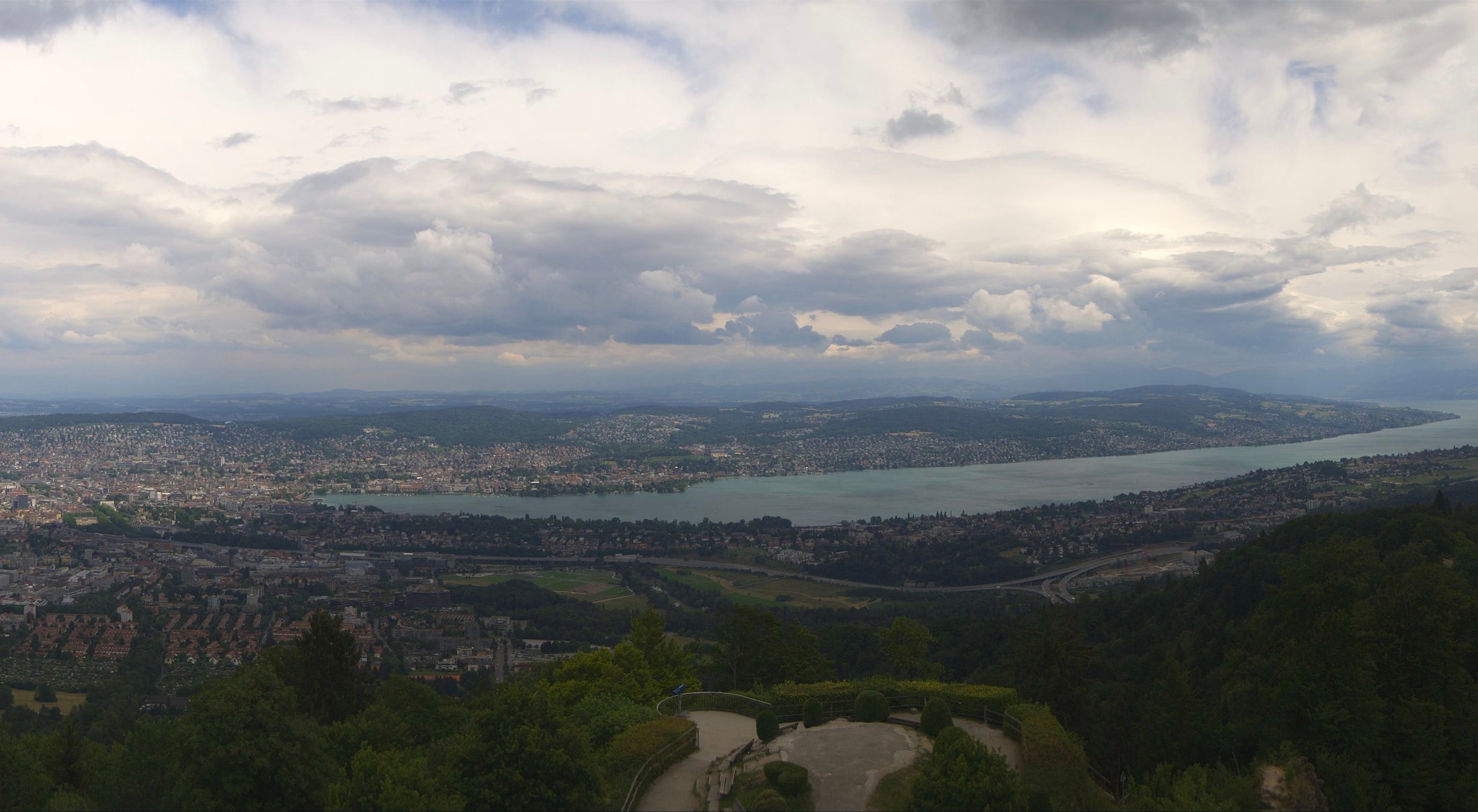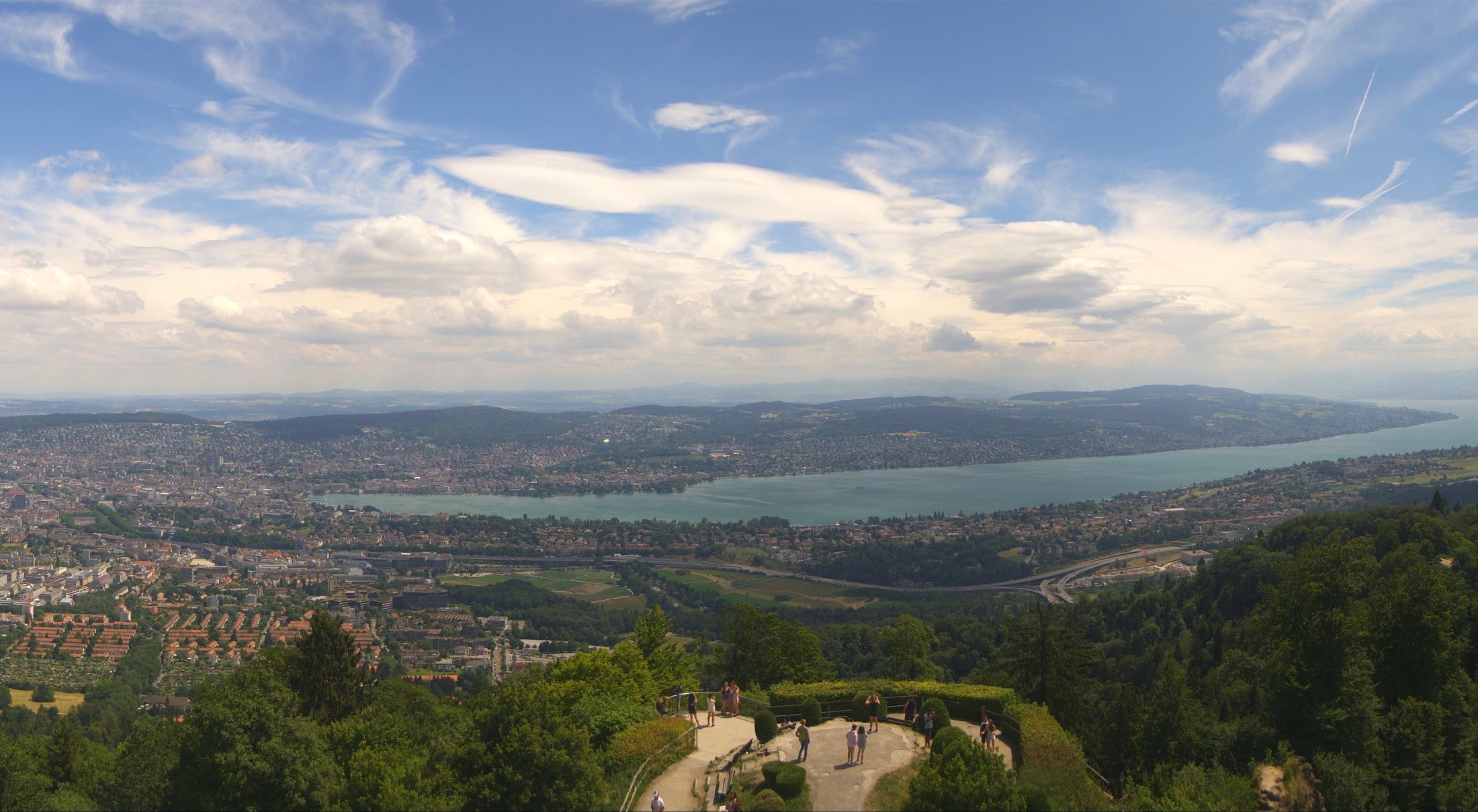 Die Bilder der nachfolgenden Fotostrecke wurden von der Roundshotkamera Üetliberg Kulm zwischen 10:10 und 14:50 Uhr im Takt von 10 Minuten aufgenommen. Wir blicken ziemlich genau in Richtung Ost.