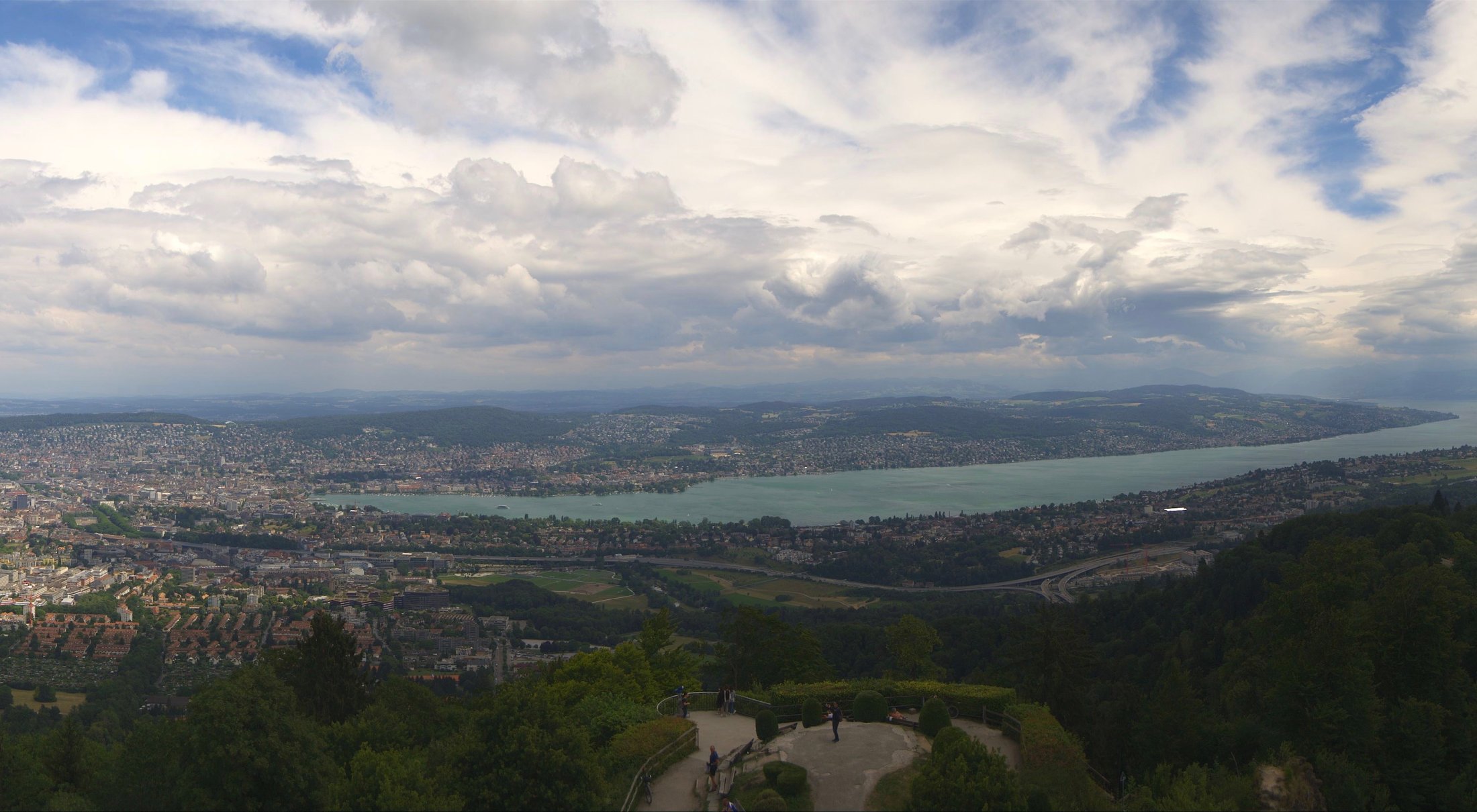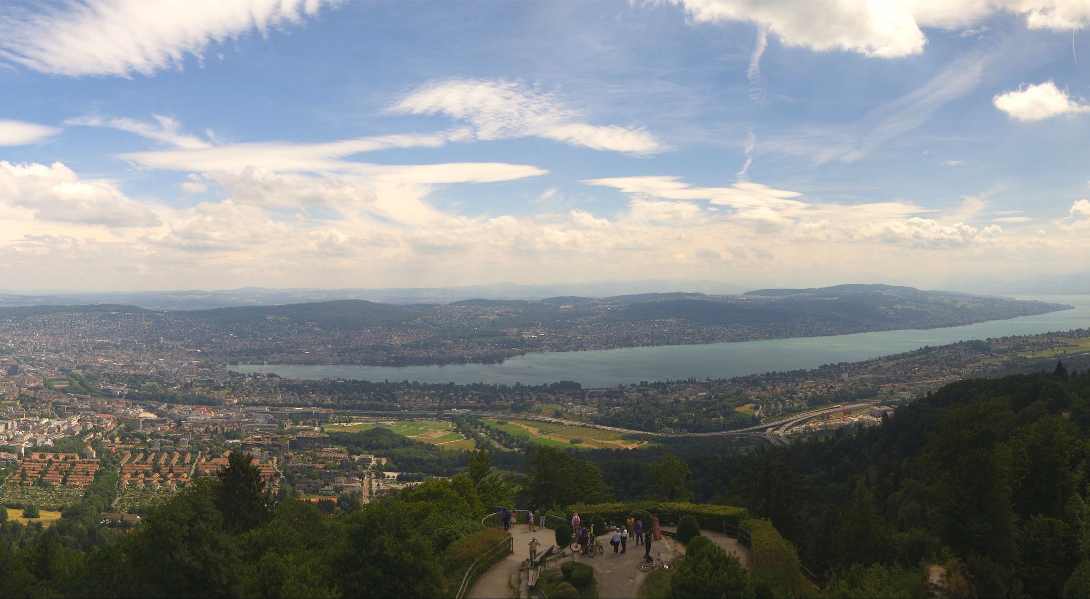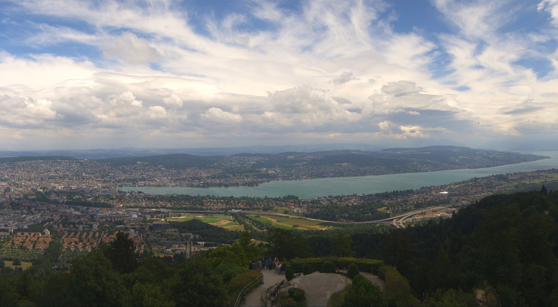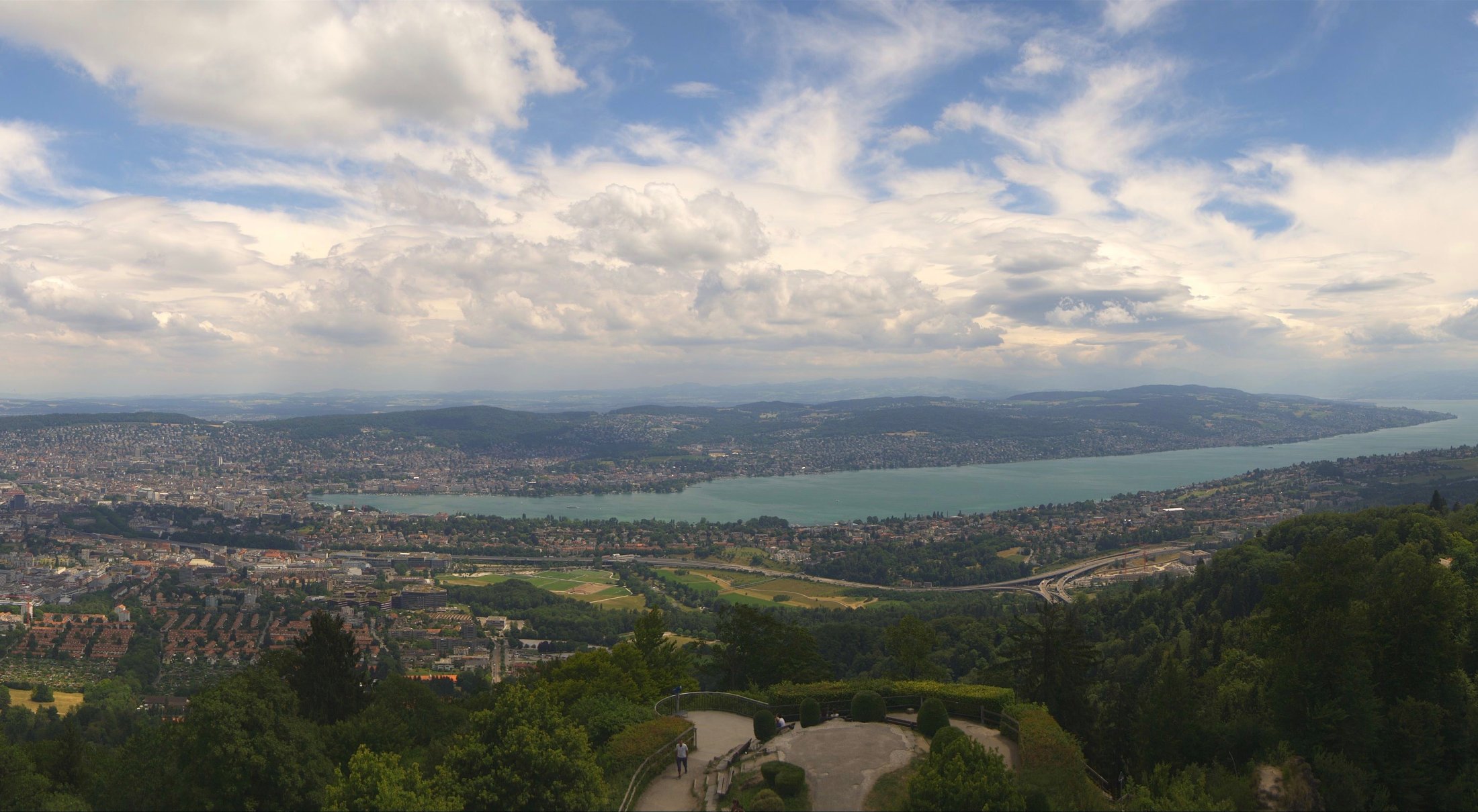 Die Bilder der nachfolgenden Fotostrecke wurden von der Roundshotkamera Üetliberg Kulm zwischen 10:10 und 14:50 Uhr im Takt von 10 Minuten aufgenommen. Wir blicken ziemlich genau in Richtung Ost.