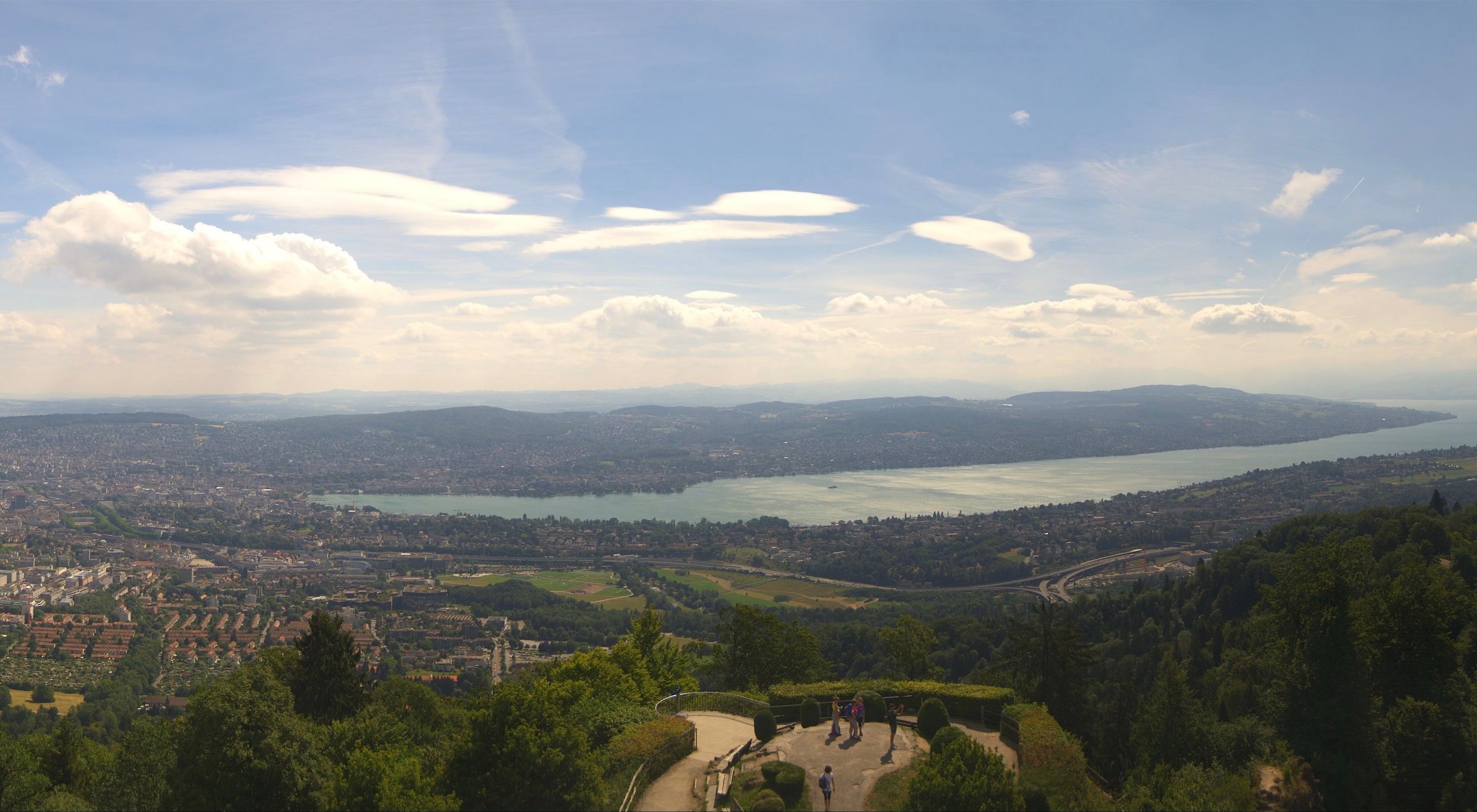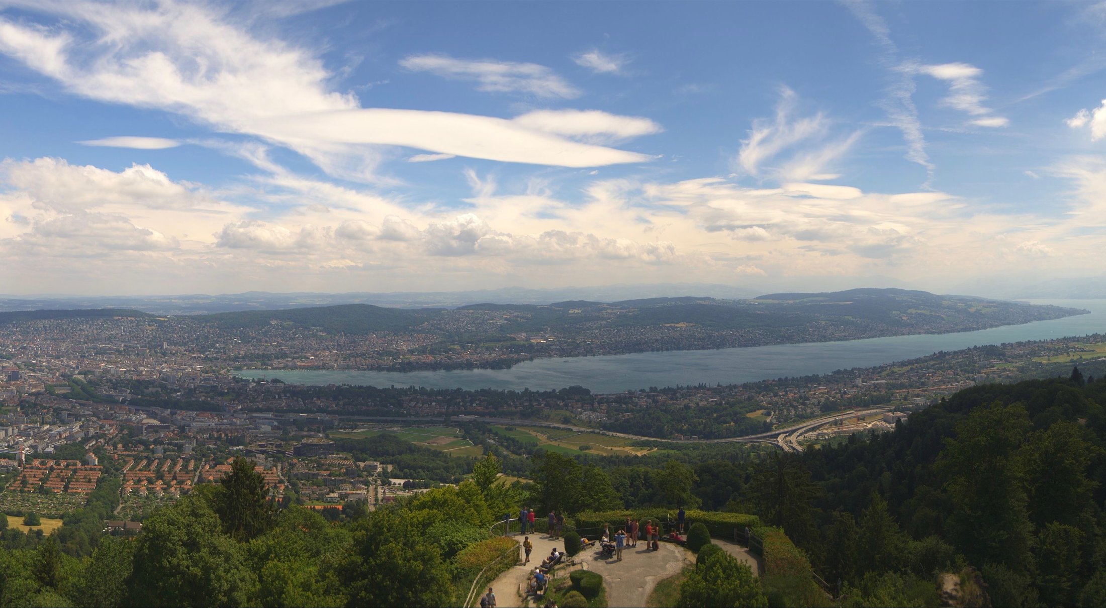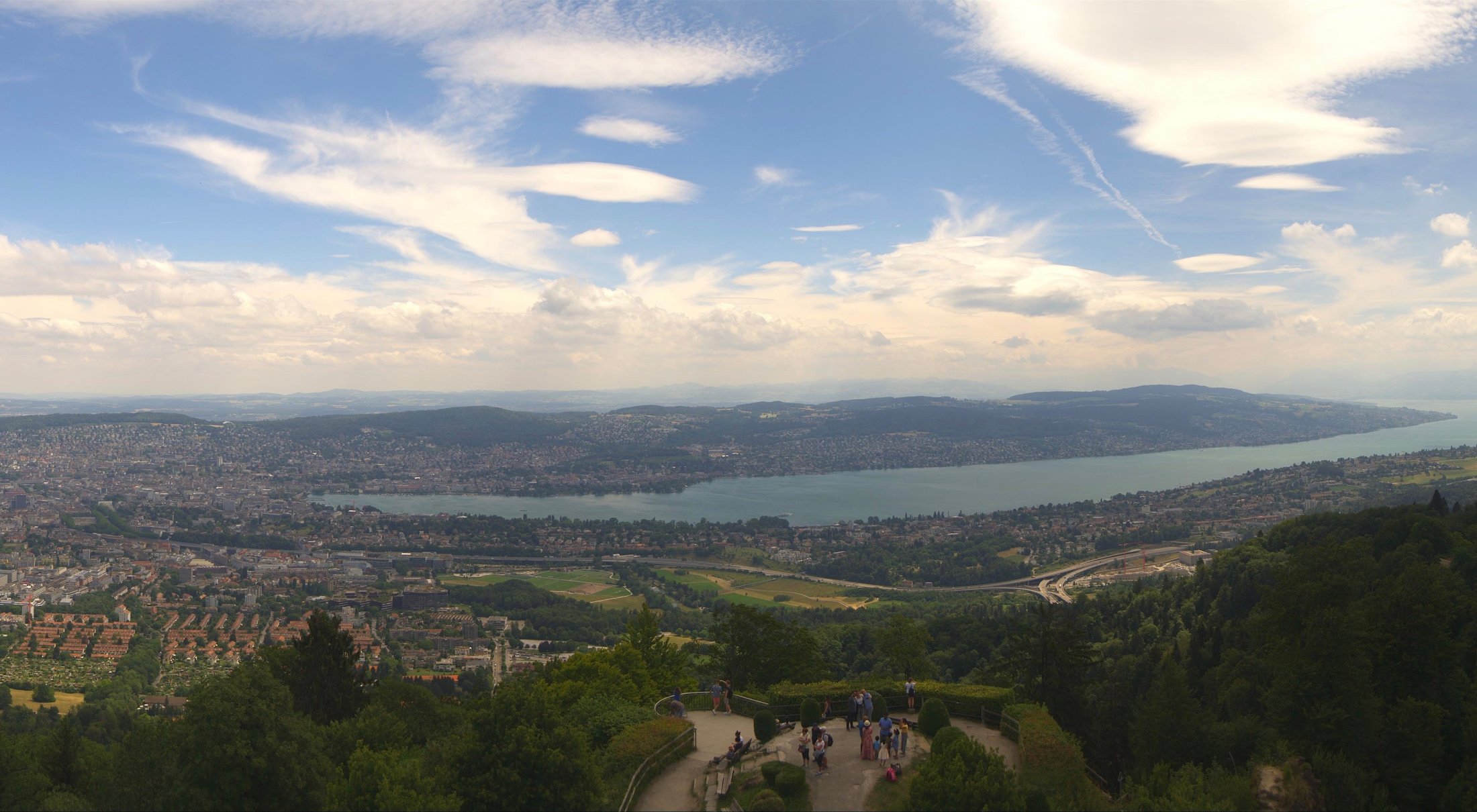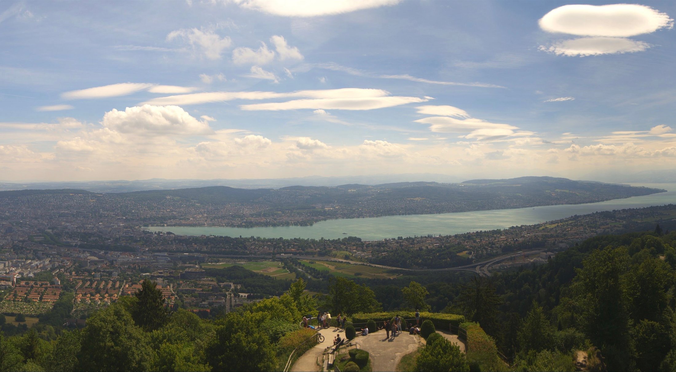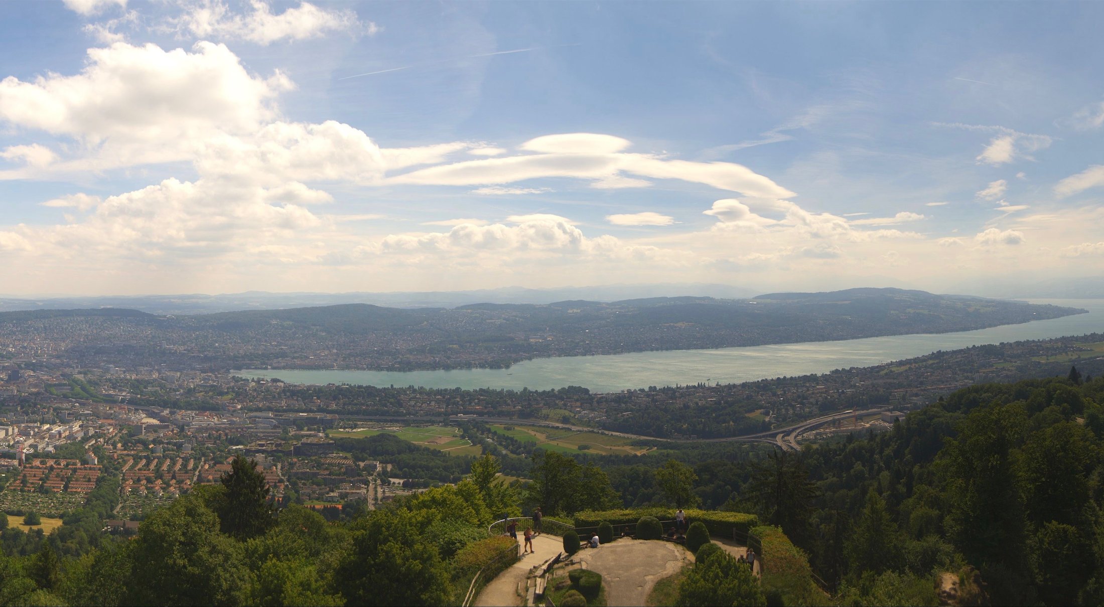 ...das zeigte sich am Donnertag 28. Juni 2018, bei einer ausgeprägten Bisenlage im Mittelland und viel NOO-Wind in den höheren Schichten. Ab 9:00 Uhr morgens nahm der Mittelwind innerhalb einer Stunde um ca. 15 km/h zu und erreichte ca. 45 km/h mit Böenspitzen von ca. 65 km/h (Messstation Üetliberg). Stark genug, damit die Bise über dem Züriberg zu Schwingen begann und sich stationäre Lenits bildeten. Mit der ab Mittag in der Höhe einfliessenden Feuchtluft entstanden imposante Wolkenbilder.