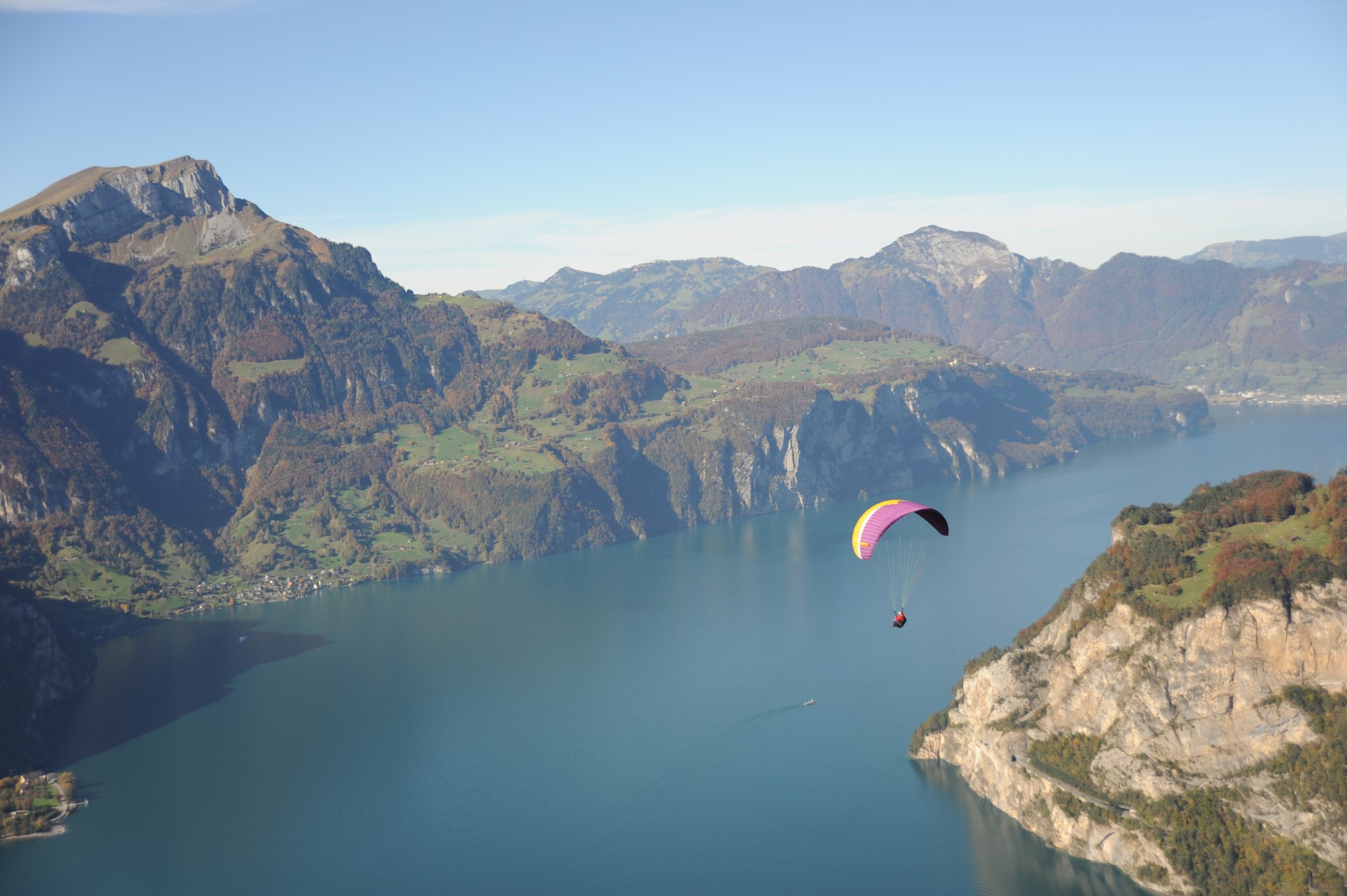 Am Gestade des Urnersees oberhalb Flüelen liegen die Eggberge. Hier wartet Thermik auch im Herbst und Winter und eine grosse Höhendifferenz zum Manövrieren und Motoren.