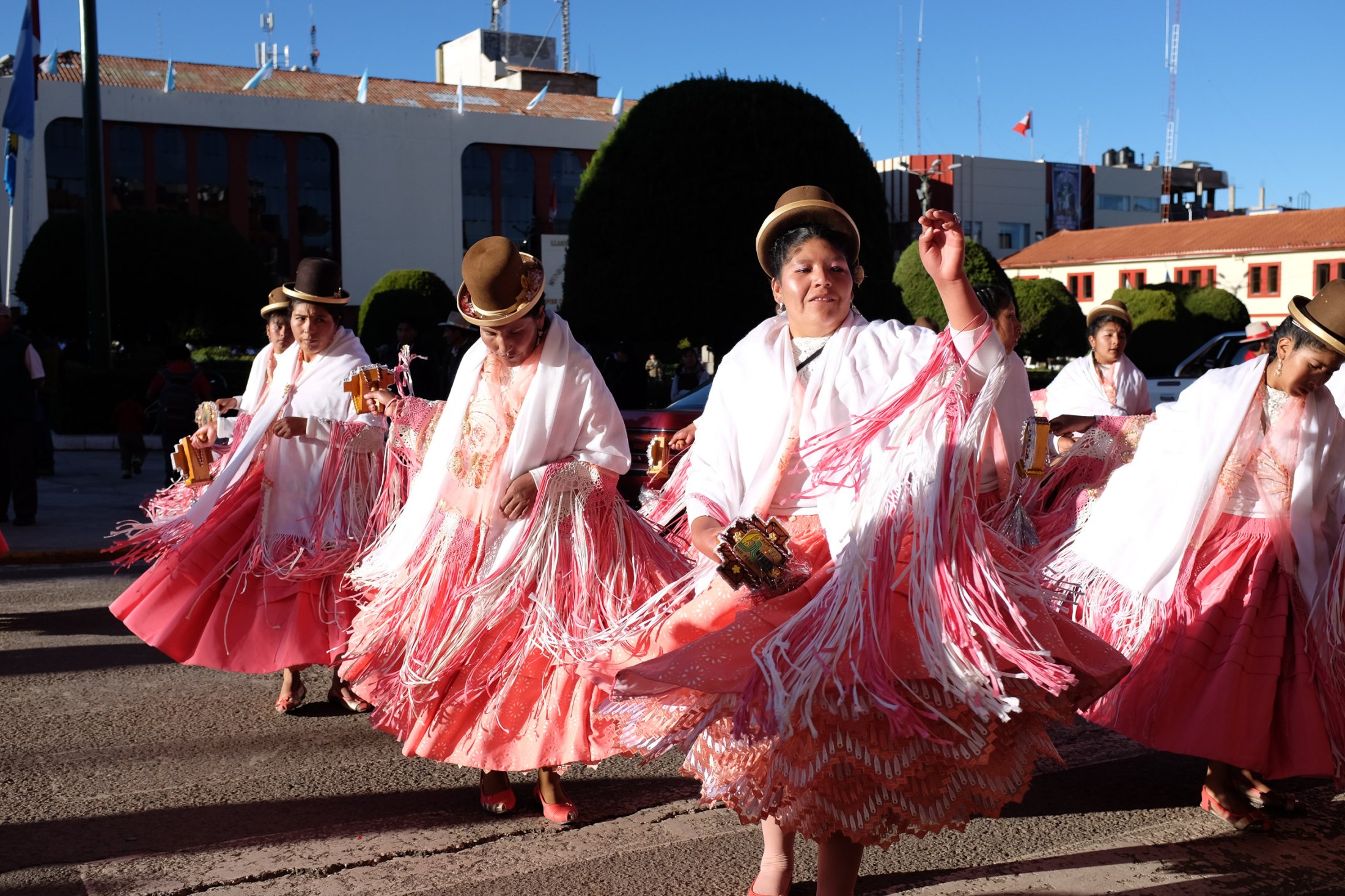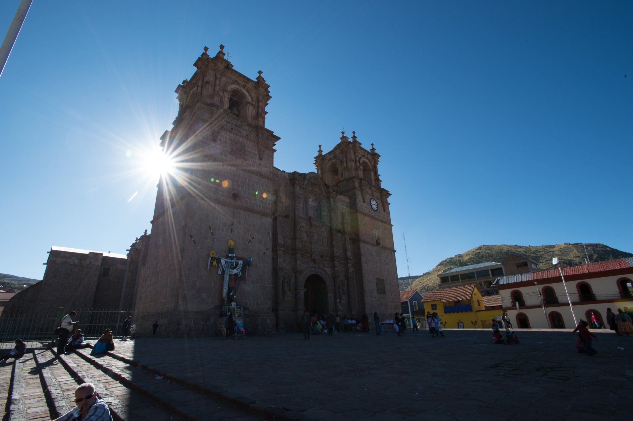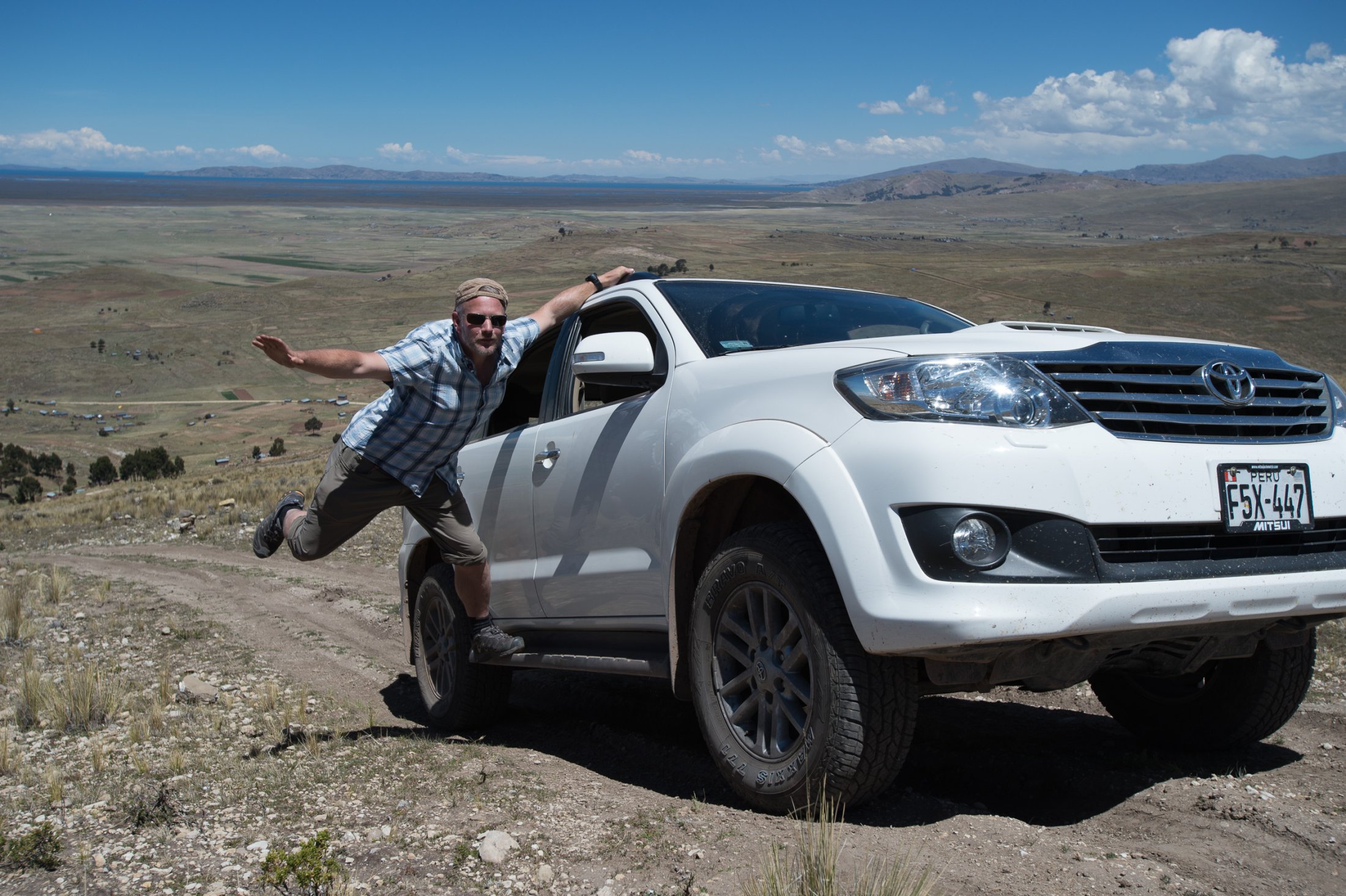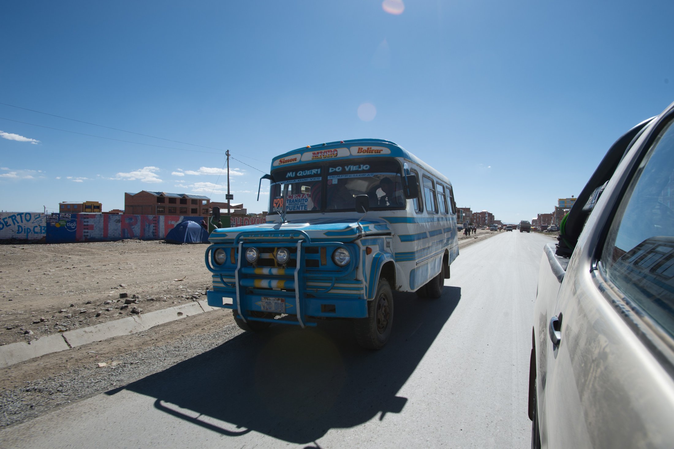 Die Reise geht weiter südwärts mit dem Etappenziel Lago Titicaca, dem grössten und höchstgelegenen Süsswassersee der Erde. Keine fünf Minuten nach der bolivianischen Grenze führt eine steile Strasse hoch zu den Antennenmasten über dem Städtchen Copacabana. Dort hinauf müssen wir. Kaum oben angelangt, heben wir ab. Die Szenerie, welche sich uns bei dieser Abendsoaring-Session bietet, ist einmalig: Im Westen sinkt die Sonne immer tiefer und schaut zwischen weit entfernten, peruanischen Gewitterwolken zu uns herüber. Nordwärts zeigt sich der Lago Titicaca in seiner ganzen, unfassbaren Grösse und bildet mit dem Horizont eine Linie. Im Osten stehen die verschneiten Sechseinhalbtausender Boliviens in der Abendsonne. Und mittendrin, hoch über Copacabana, "Los Suizos" unter ihren farbigen Tüchern. Wir überfliegen das Städtchen und setzen uns über den Cerro Calvario, den lokalen Aussichtspunkt, wo auch andere Touristen den Sonnenuntergang geniessen. In der Abenddämmerung landen wir schliesslich stilgerecht an der Copacabana Beach und sind damit definitiv in Bolivien angekommen.