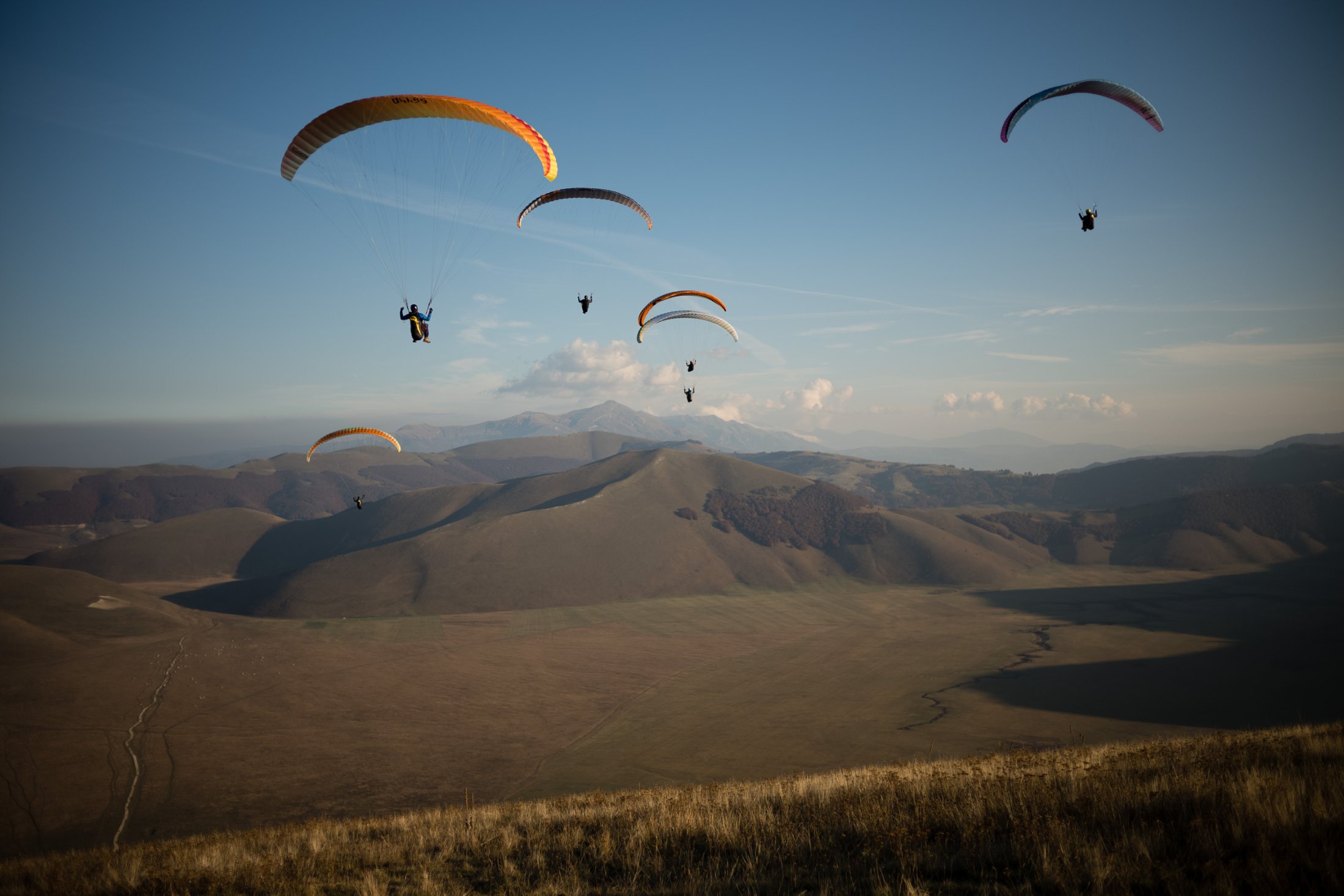 Castelluccio, im Apennin auf 1450 M.ü.M.gelegen, zeigte sich uns diesen Herbst von seiner schönsten Seite. Mit viel Wetterglück konnten wir jeden Tag die riesigen Grasflächen entlangmähen, unsere Gleitschirme bis ins kleinste Detail kennenlernen und die eigenen Start- und Groundhandlingskills perfektionieren.