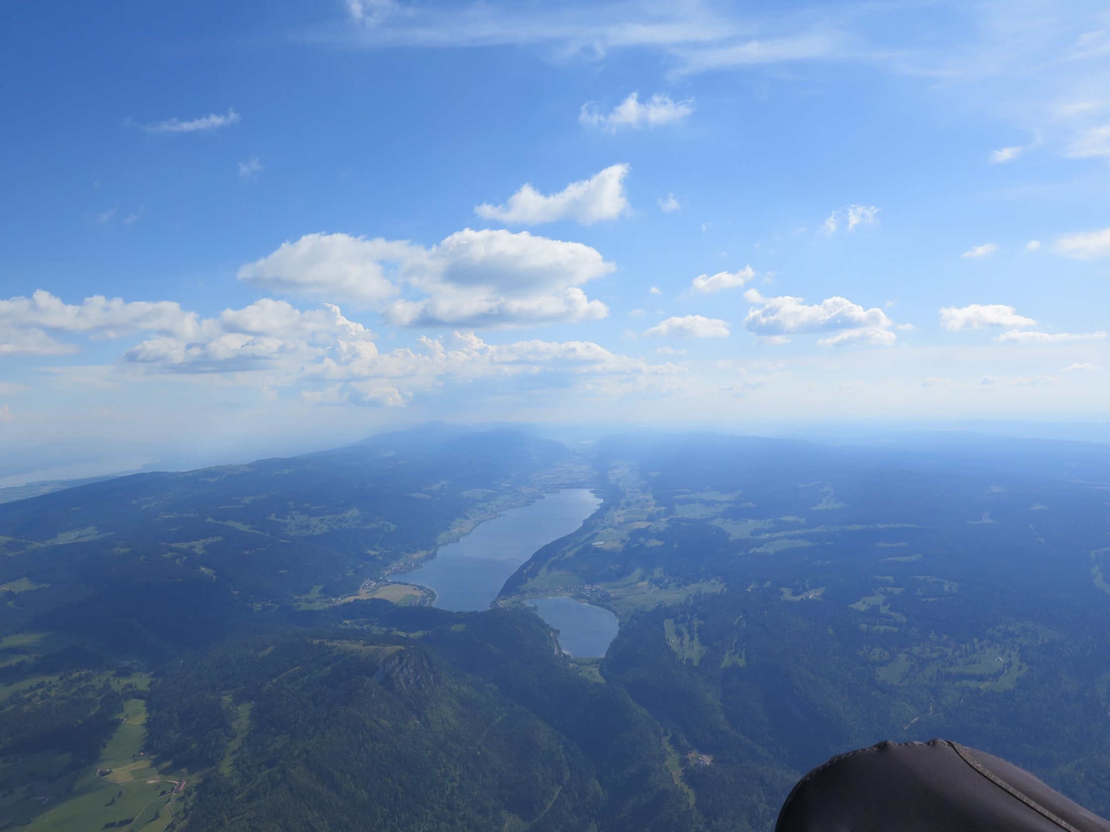 Zuversichtlich und Lufträume studierend gleite ich auf den See zu. Anstelle von Steigen finde ich viel Sinken auf dem Weg. Die Wolken, die soeben noch gigantisch ausgesehen haben, scheinen rapide ihrem Zerfall entgegenzusteuern. Solche Zyklen gibt es manchmal. Von Top zu Flop. Ich hoffe, dass ich noch früh genug ein paar Gänge zurückgeschaltet habe. Ist manchmal gar nicht so einfach zu erkennen, wenn man nach Stunden im Vollgasmodus innerhalb Minuten in Überlebensmodus umschalten muss.