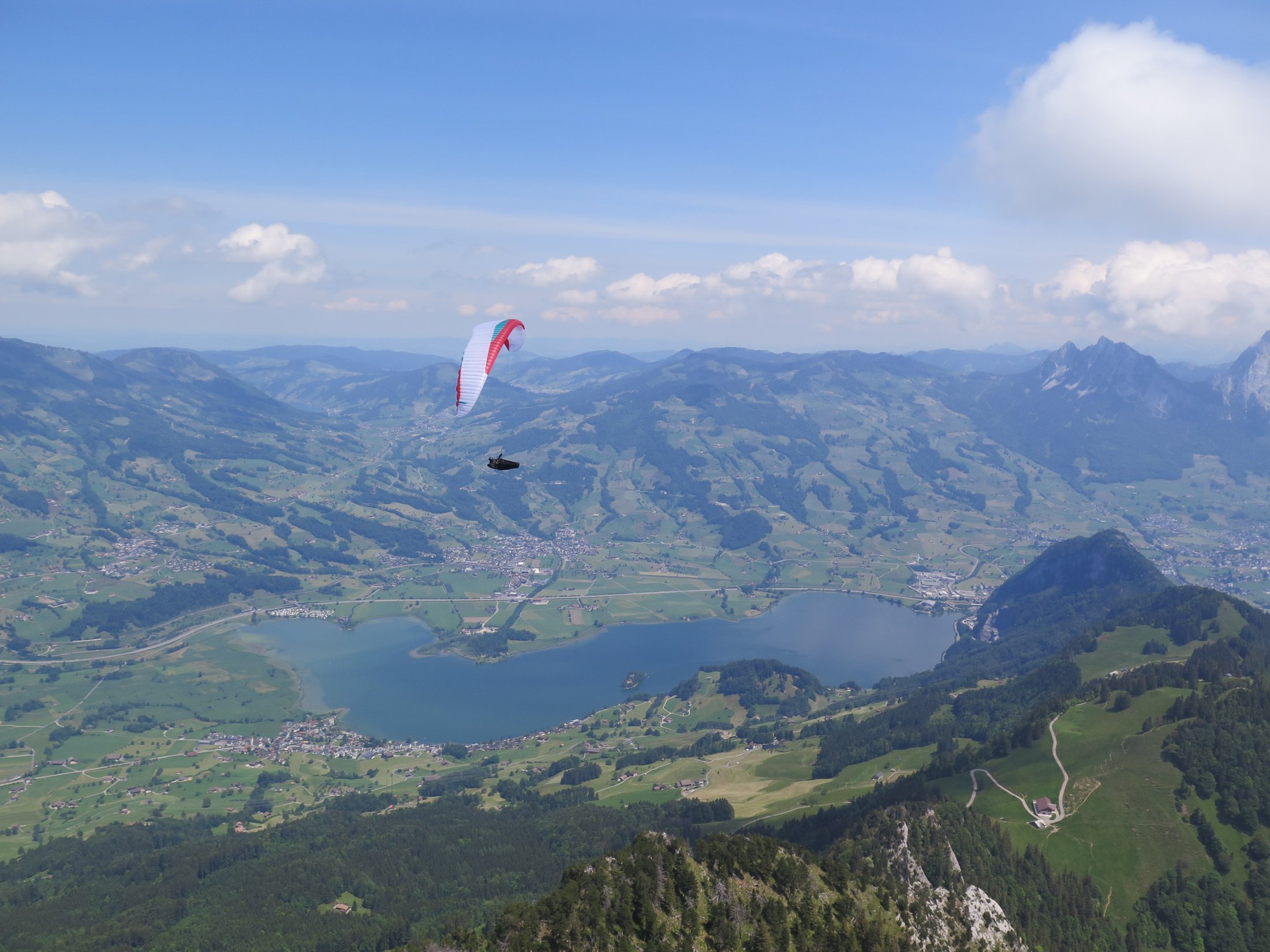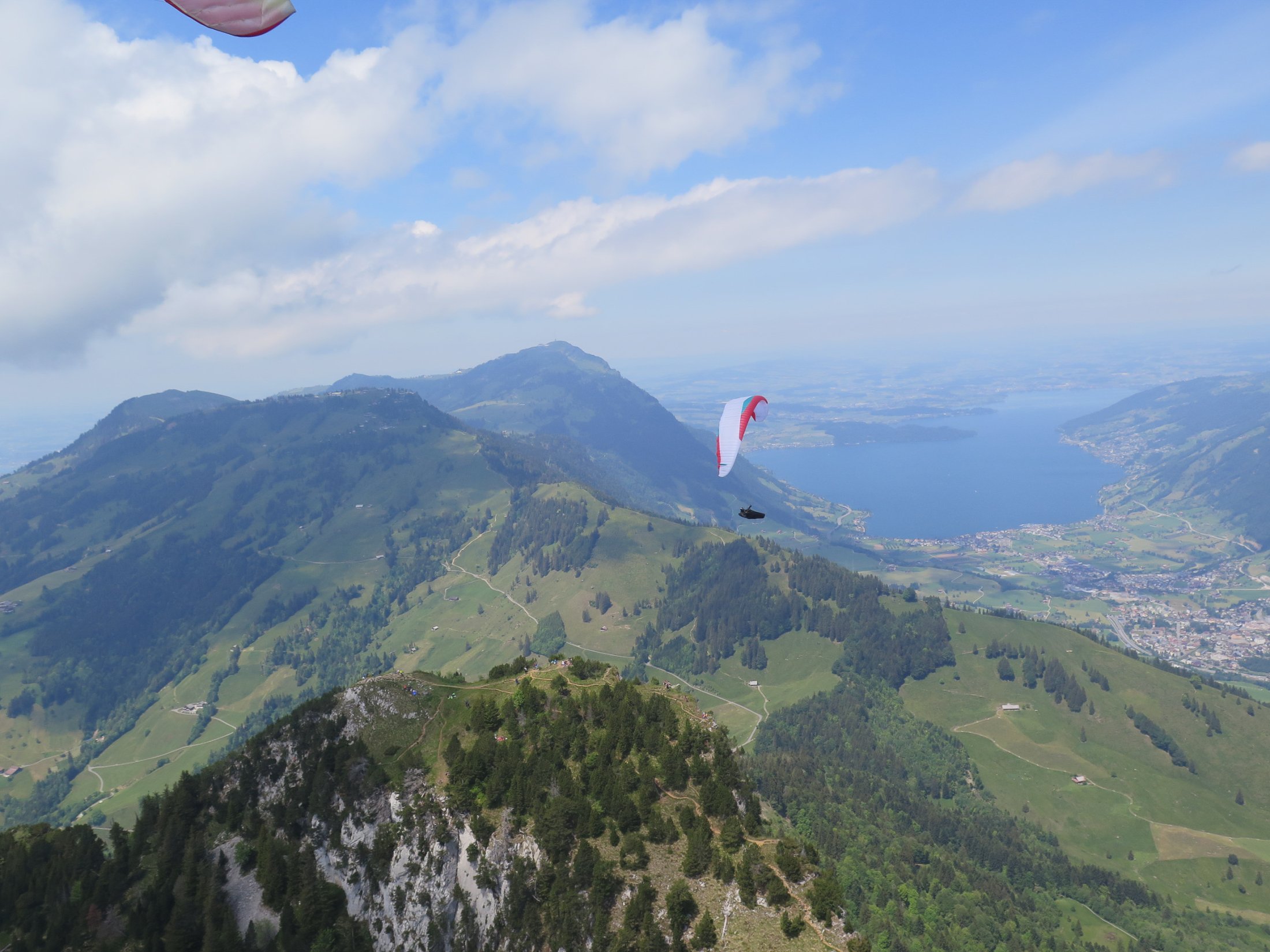 Über der Rigi Hochflue, in der Bildmitte der Lauerzersee.