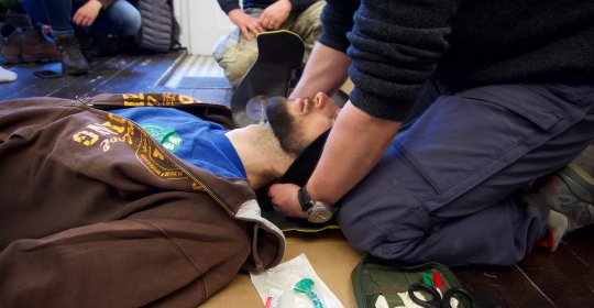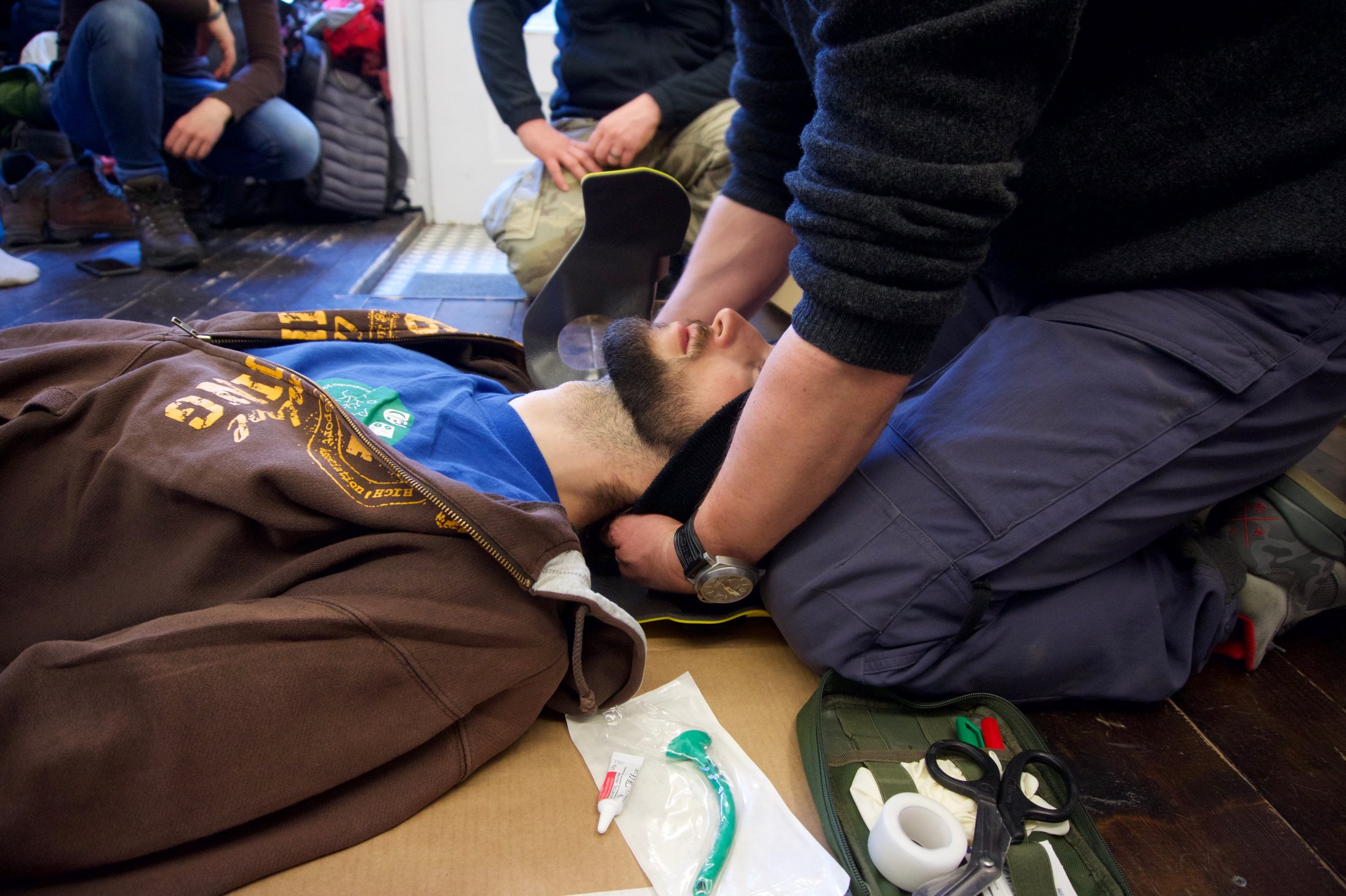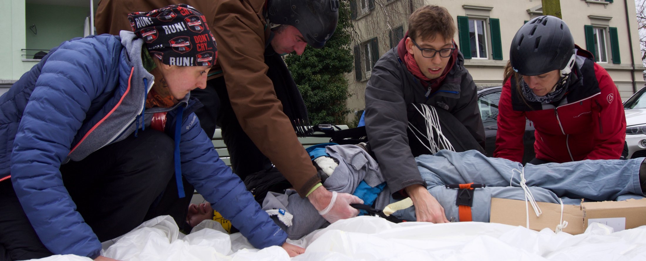 Nicht nur für die Figuranten sondern auch für die Helfer war es ziemlich kalt am letzten Samstag Ende Februar 2018. Trotzdem sank die Motivation keineswegs, als wir am Nachmittag nach draussen gingen und das komplette Schema der Erweiterten Lebensrettung immer wieder durchspielten. Anfangs noch unsicher, sassen die Handgriffe am Abend und wir konnten ein überaus positives und konstruktives Feedback vergeben und entgegennehmen. Insgesamt eine gelungene Premiere; wir freuen uns auf mehr!