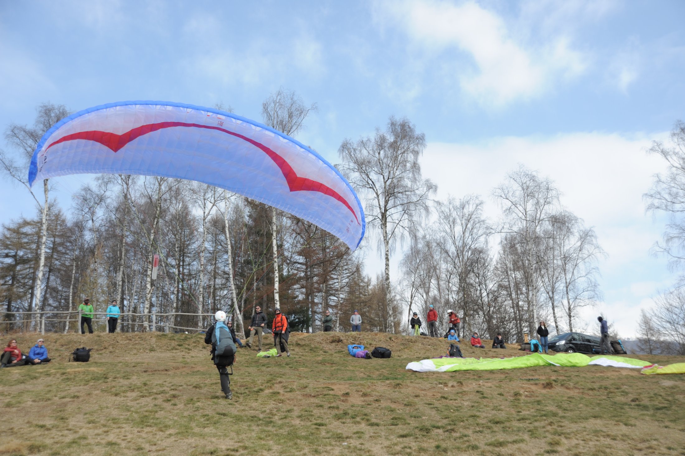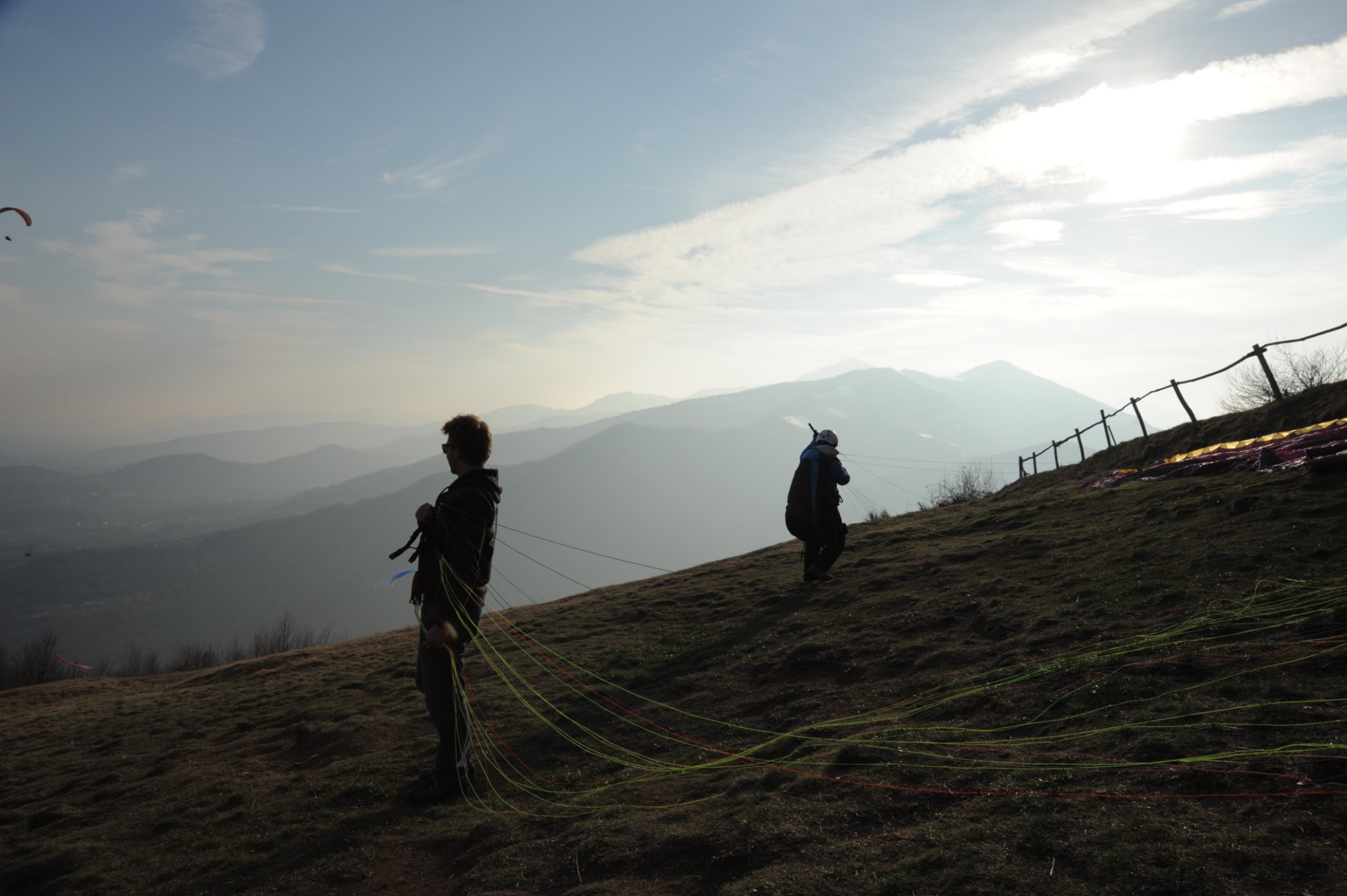 Wie die Natur – die Forsythien und Magnolien blüten bereits nach der Gottharddurchfahrt um die Wette – so war auch die Thermikentwicklung um diese Jahreszeit südseits der Alpen etwas satter und fortgeschrittener. Ab 11 Uhr setzte das erste Steigen ein und hob uns von Santa Elisabetta und der Cima Cavallaria zuverlässig gen oben, Tag für Tag. Viele Flugstunden, gesunde Farbe, einen demolierten Kofferraumdeckel und Bilder für die Daheimgebliebenen brachten wir mit nach Hause.