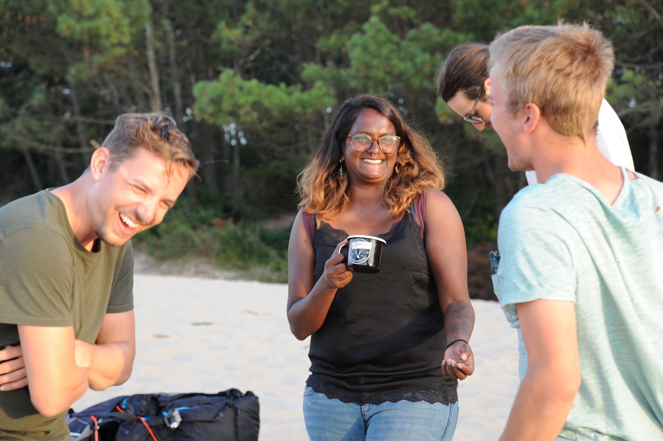 Ungewohnt kühl und feucht empfing uns die Düne im Herbst 2019, unverändert bleiben Zauber, Ruhe und Erhabenheit, die von Ihrer Majestät ausgehen. Man geht in die Knie, robbt und wischt sich Sand aus dem Gesicht; sie dankt es einem mit noch stärkerem Wind. Blaue Flecken, rote Leisten, man geht auf dem Zahnfleisch und hat doch Biss jeden Morgen aufs Neue. Überall Sand, trotzdem läuft es plötzlich wie geschmiert: Ihre Majestät, die Königin, sie adelt einem mit Können und einem Lachen über beide Ohren. Friede herrscht, doch kriegt man nicht genug: doppelte Portionen, Anninas Kochkünste lassen Diätträume platzen, und man hofft insgeheim, dass diese Woche länger dauert, als den Rest des Jahres. Letztlich muss man dahin zurückkehren, wo der Sand nur im Stundenglas rieselt und die Schirme quadratisch sind, ohne zu rascheln. Fragt sich, wer nun wen an die Leine nimmt...