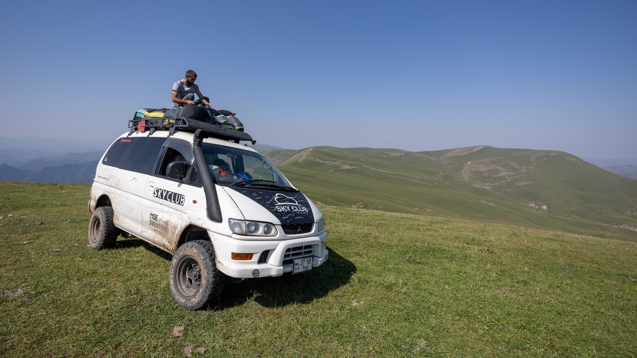 Weitere fliegerische und landschaftliche Highlights unserer Reise waren Flüge nördlich vom Sewansee. Die Landschaft hier wechselt von der staubigen und ockerfarbigen Vulkanregion in ein uns bekannteres Bild. Kalksteingebirge, endlose grüne Grashänge und schweizerisch grüne Vegetation inklusive Alpwirtschaft prägen diesen Landesteil. Der Unterschied zu unseren Fluggebieten ist die wilde Anfahrt in Hamo`s Geländefahrzeug über steilste Bergwege und Geröllfelder. Die Flüge hier im wilden Niemandsland sind sehr eindrücklich, die unbegrenzte Weite, freilebende Pferdeherden und die riesige unbewohnte Gegend prägen sich uns ein.