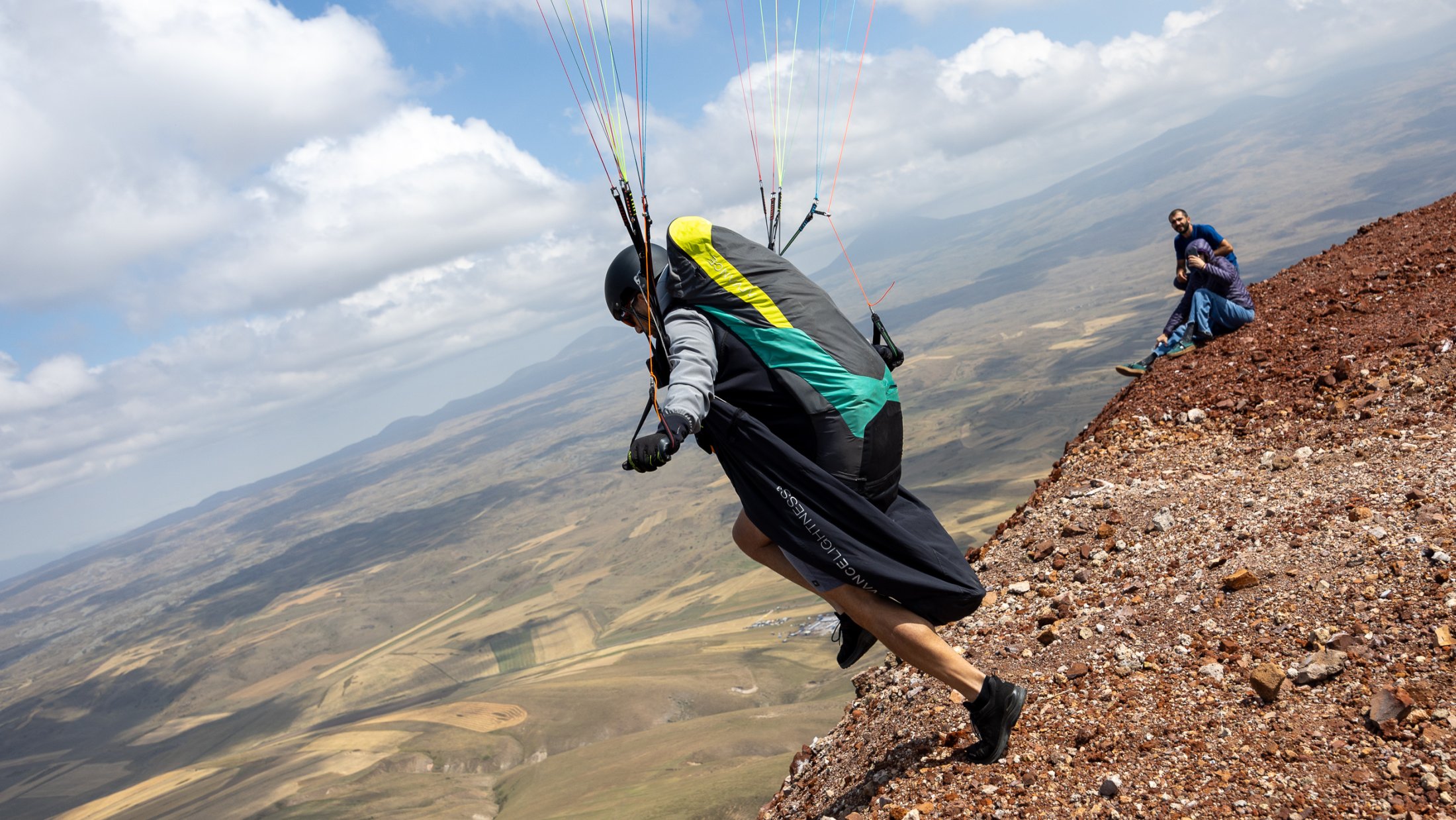 Die ersten Tage unserer Rundreise erkunden wir die Fluggebiete rund um die Hauptstadt, mit Ausflügen an den zweitgrößten Bergsee der Welt. Der Sewansee ist doppelt so gross wie der Bodensee und liegt auf 1800 meter Höhe. An seinem westlichen Ende entsteht fast täglich ein lokales Wetterphänomen. Verursacht durch kältere Luft im Norden, die über die Berge ins südlich gelegene warme Tiefland strömt, entsteht eine kleine Föhnwelle, in welcher wir stundenlang soaren und dem eindrücklichen Schauspiel der absinkenden und sich auflösenden Staubewölkung zuschauen können. Der Flug vom Hausvulkan bei Yerevan bleibt uns sicher auch allen in Erinnerung, die Aussicht hier ist grandios und der Start auf dem Kraterrand spektakulär.