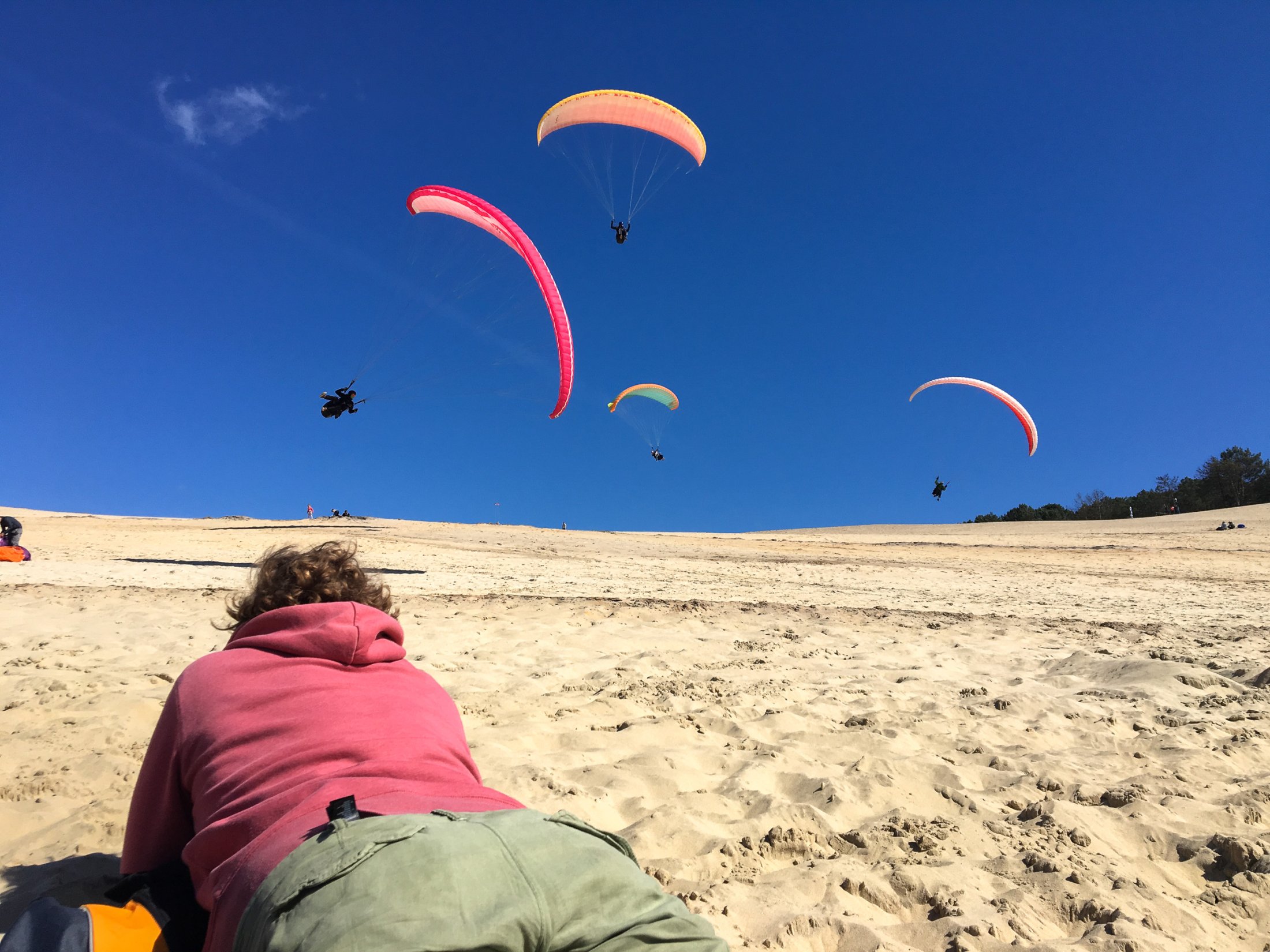 Die folgenden Tage widmeten wir uns der grossartigen Kunst des Dünenfluges. Bodennahes schweben, kiten mit dem Schirm und sogar ein paar Wingtouches wurden gesichtet.
