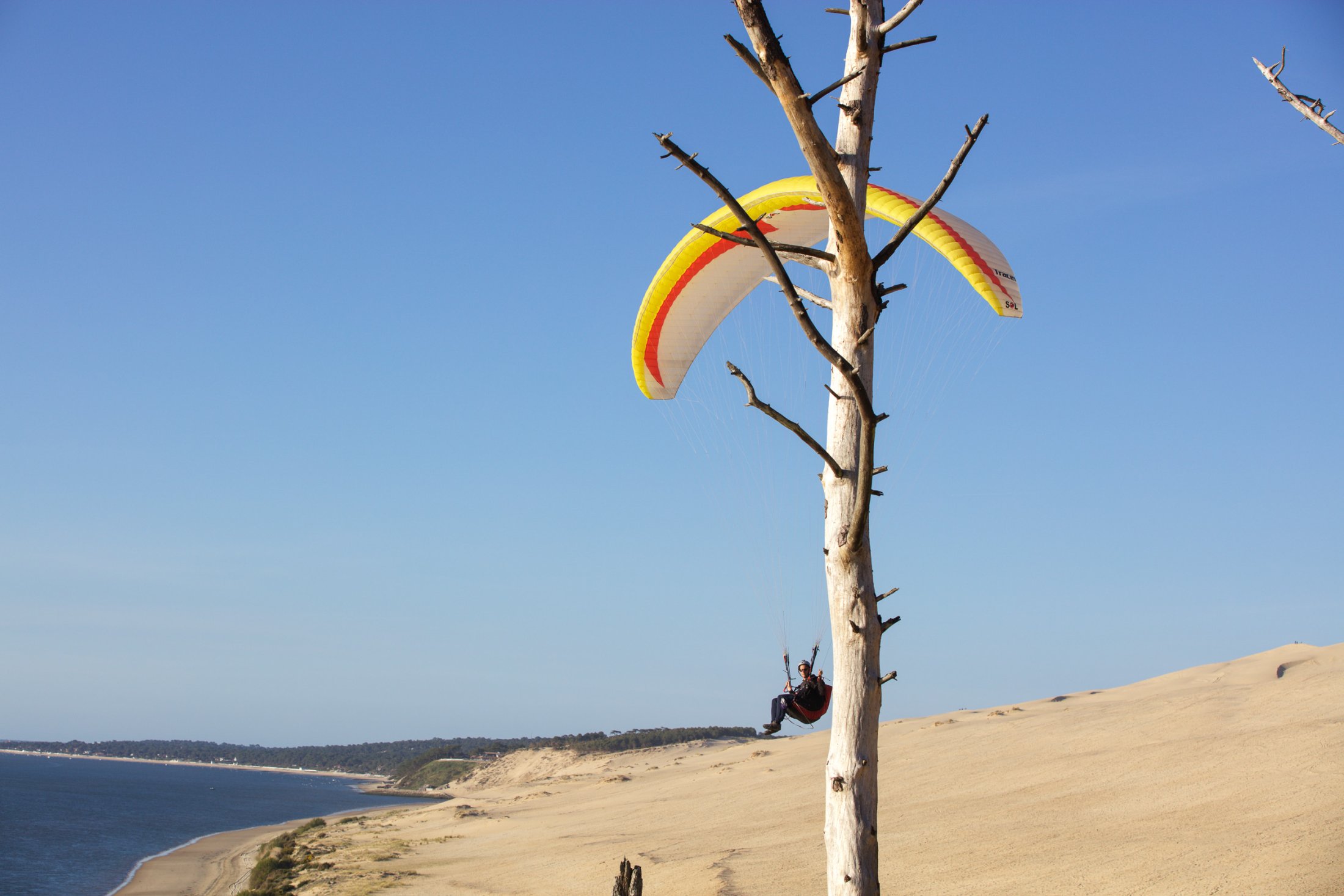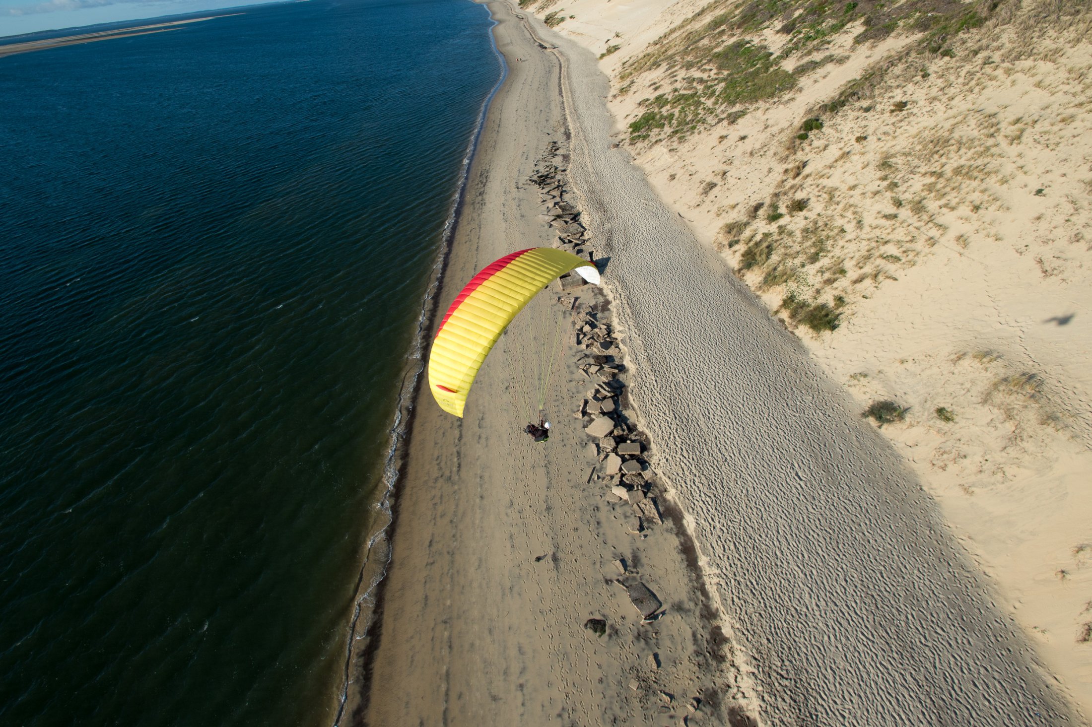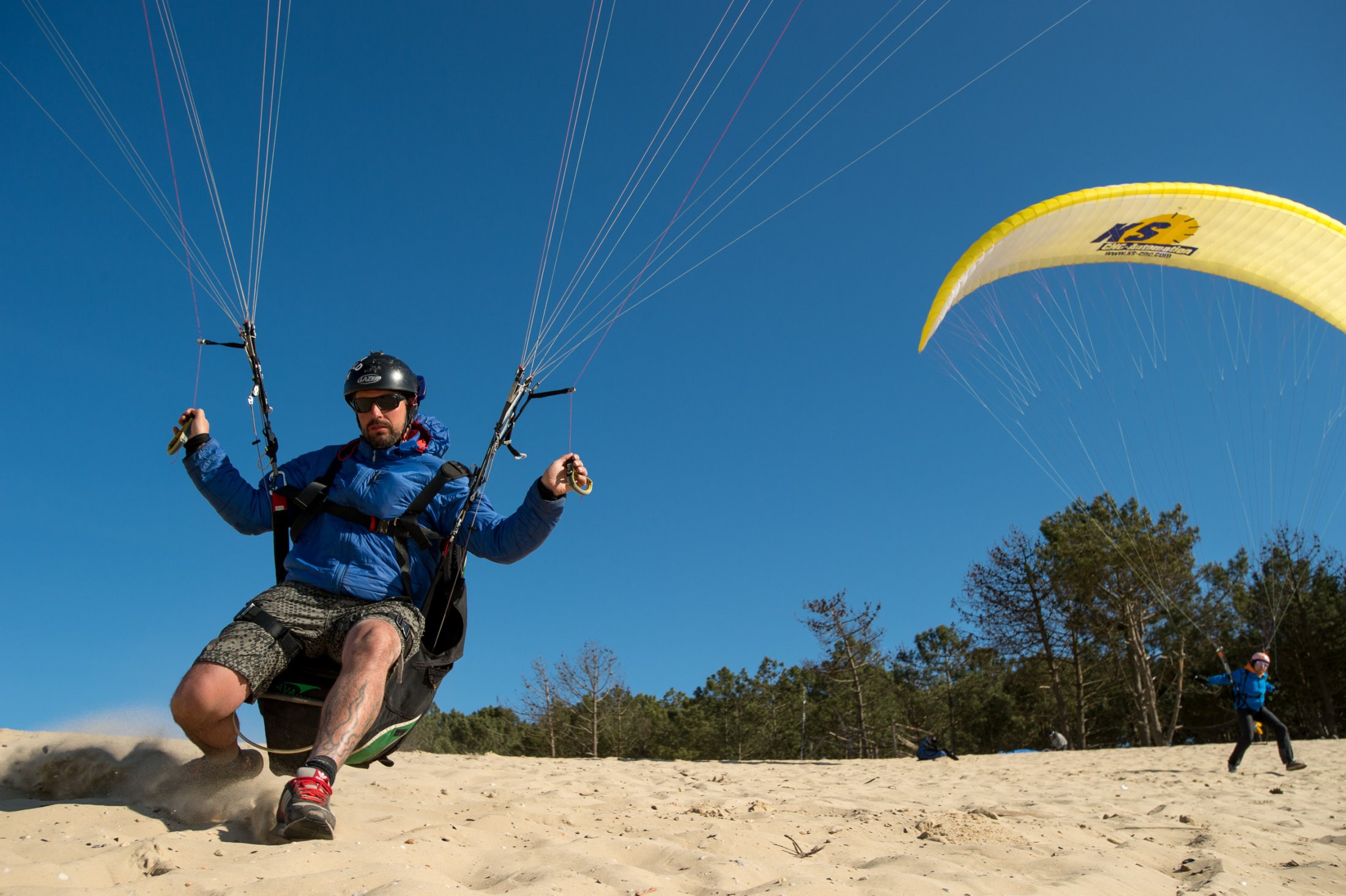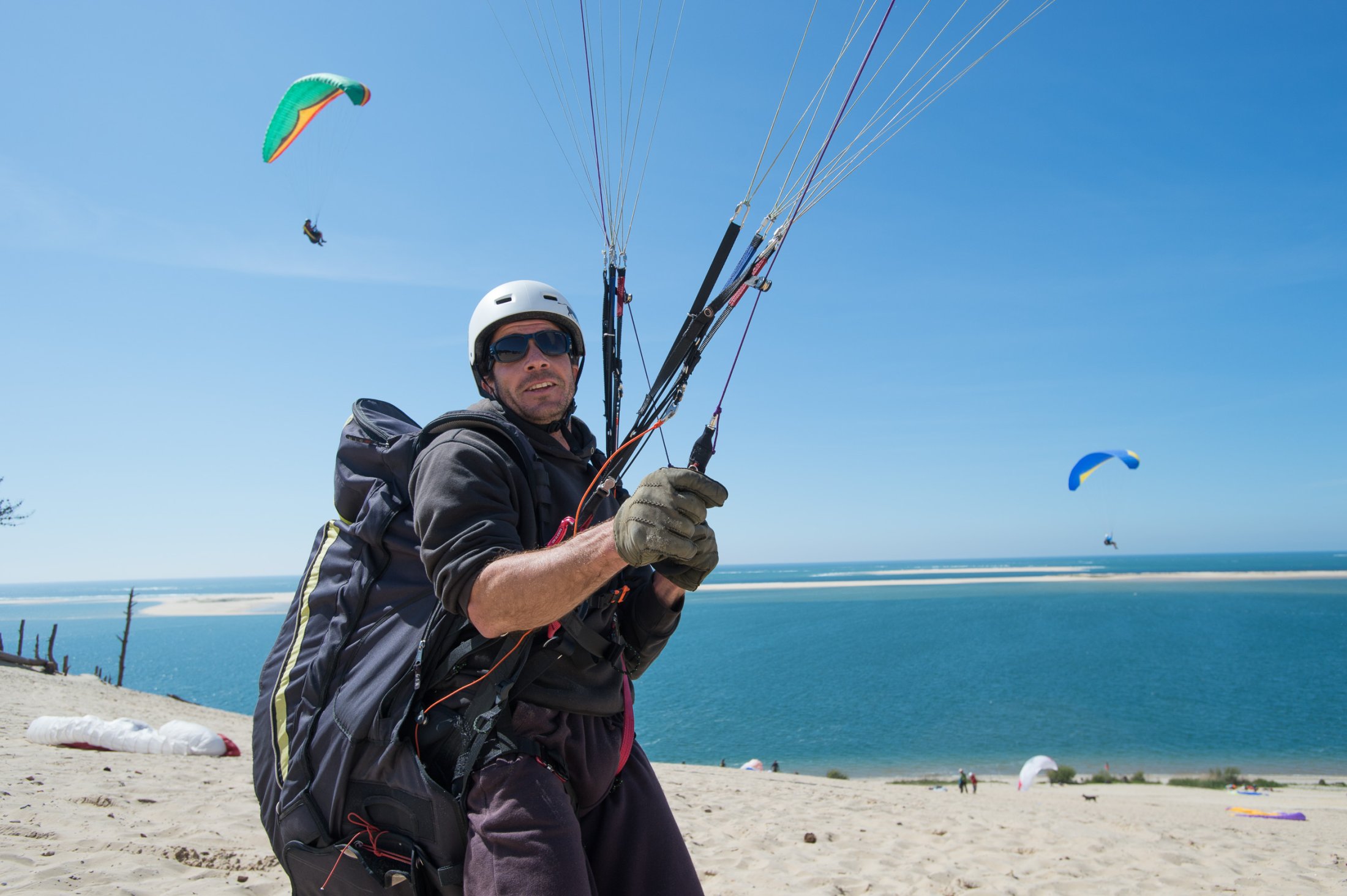 Auf der Düne lernten wir schon vom ersten Tag an, den Schirm in stärksten Bedingungen zu bändigen. Nach ein paar grossen Bissen Sand und viel vergossenem Schweiss, handelten alle, auch in Starkwind, ihren Schirm wie die Profis.
