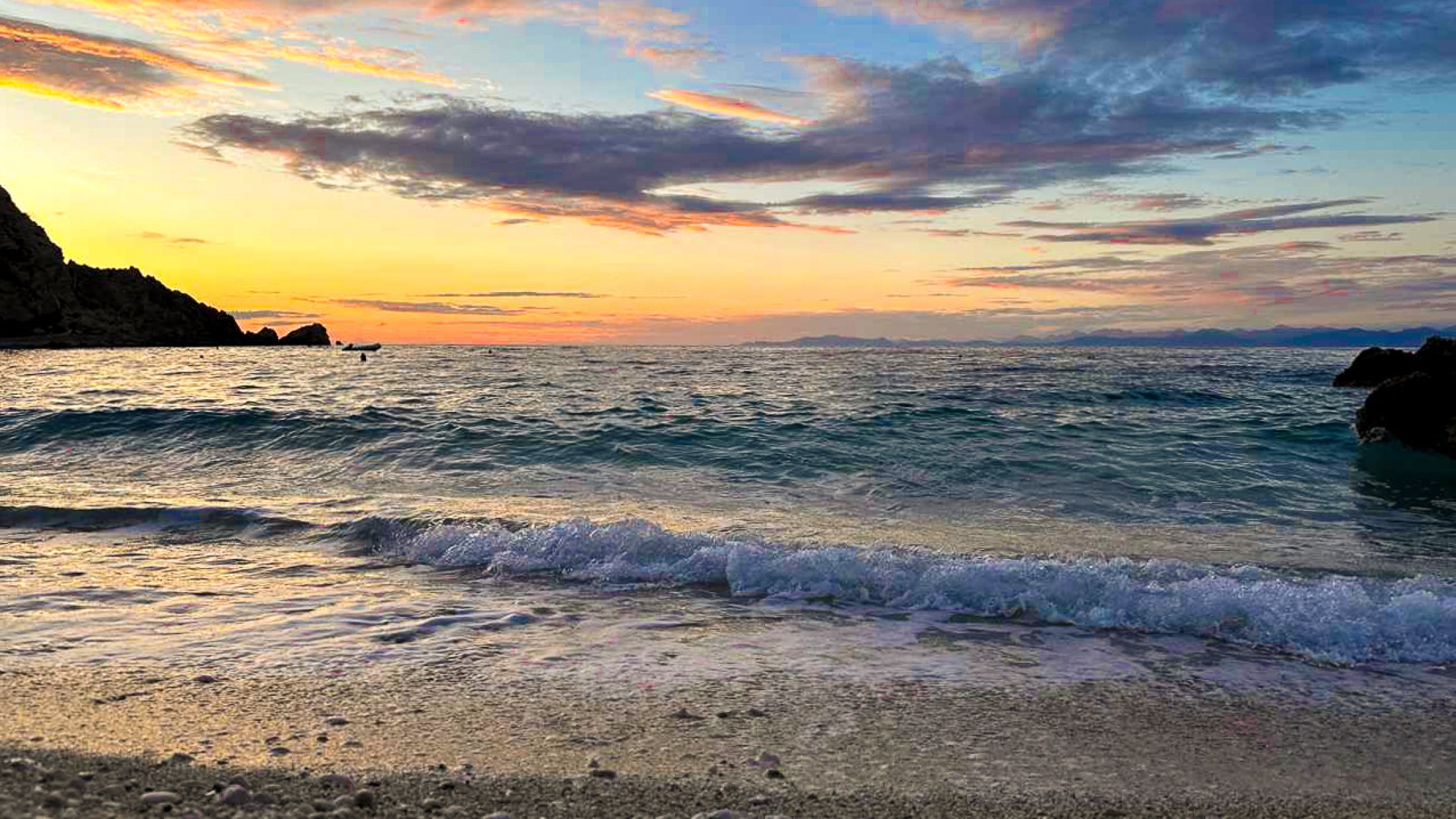 Vom abenteuerlichen Startplatz über Platanos starten wir in die Griechenland Rundreise. Super schön über das weite Meer, die Landung dann direkt am Strand inmitten stillgelegter Segelyachten und neben der Strandbar!