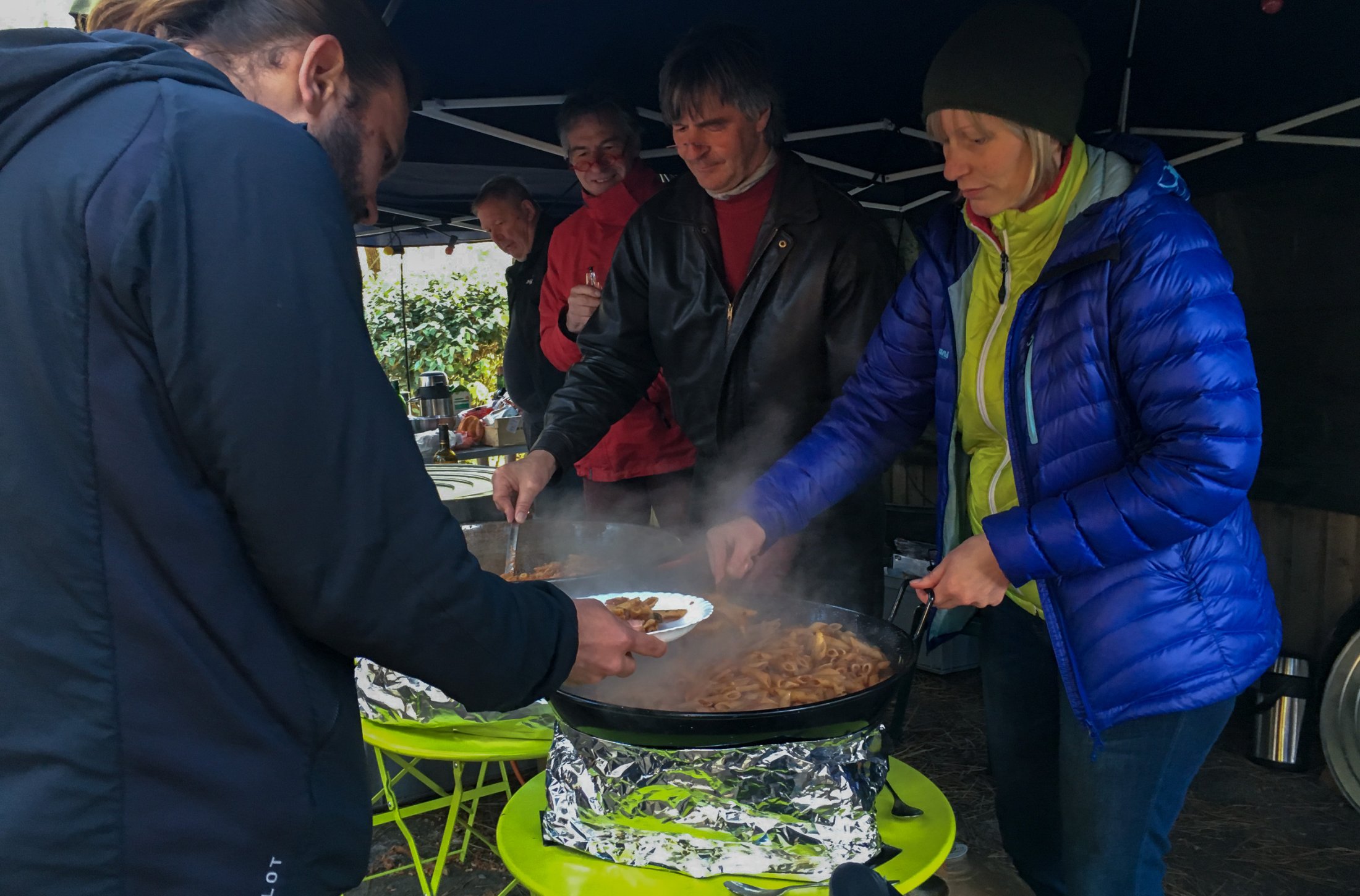Die kühle Witterung und der starke Wind machten unsere diesjährige Dünenwoche zu einem Erlebnis für Liebhaber nordischer Temperaturen. Dem unbeständigen Aprilwetter zum Trotz, rockten wir die Düne jeden Tag bis in die Nacht hinein und versuchten Wind und Gleitschirm zu bezähmen. Für die nötigen Kalorien, um uns bei Kräften zu halten, sorgte das gut eingespielte Küchenteam mit viel Elan und kulinarischem Wissen. Vielen Dank an dieser Stelle für die abwechslungsreiche und hervorragende Kost!