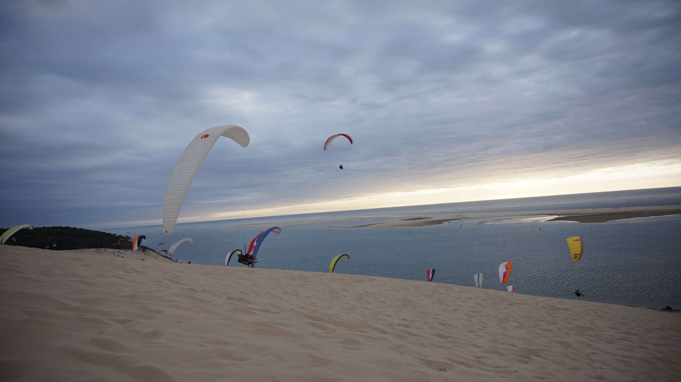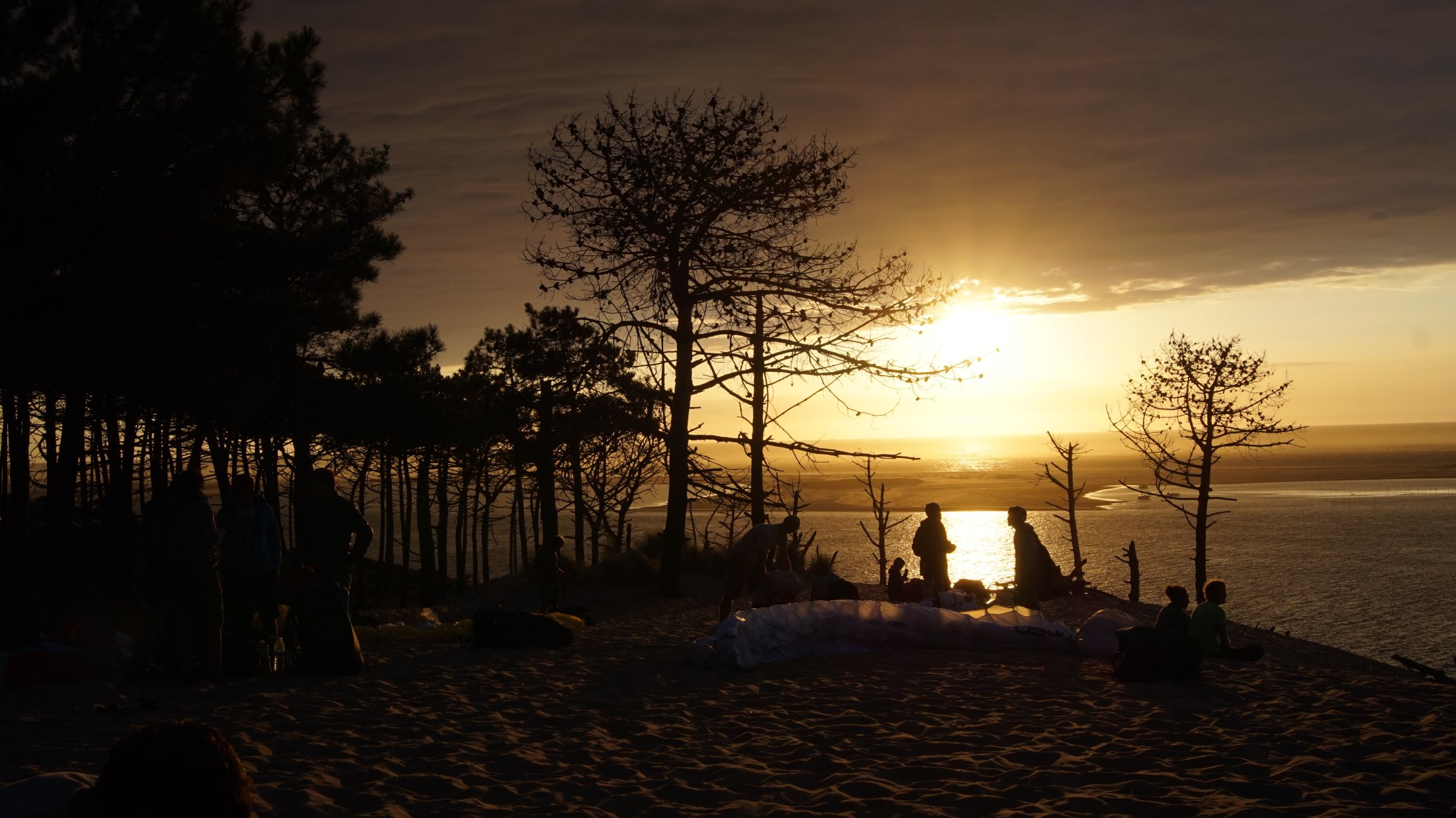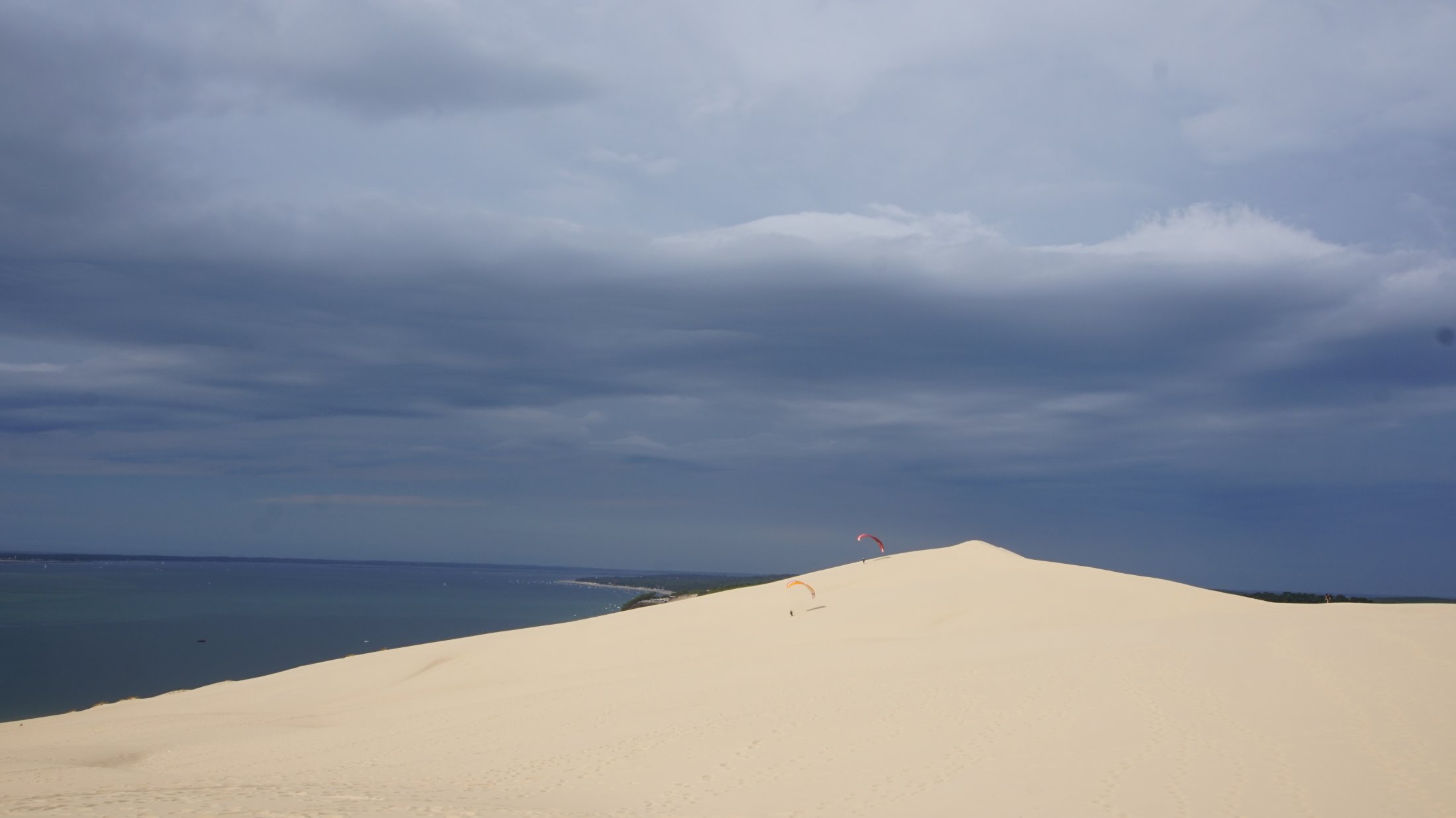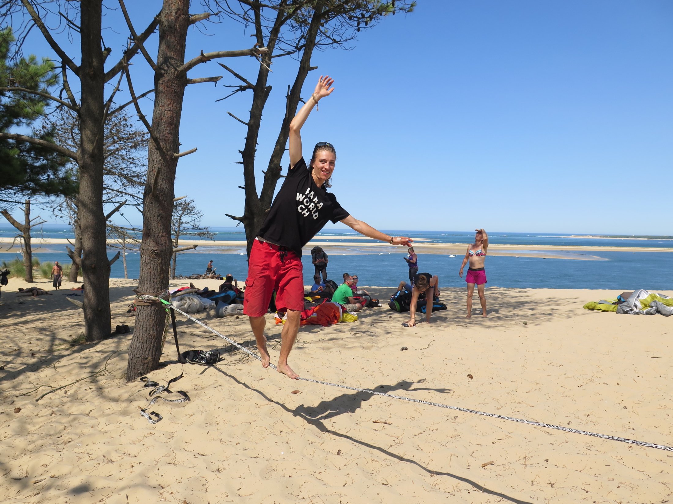 Pyla, eine Woche keine Socken tragen, unter Girlanden Roten trinken, sich durch den Sand ziehen lassen, Indisch essen, durch den Sand gezogen werden, warten auf Wind, hoffen dass er nicht noch stärker wird, Ziggis paffen zum Löcher brennen, Agrum aus Gütterli trinken, zittern auf der Slackline, Sand im Sandwich, übermüdet nicht aufhören können, Sonnenuntergang zum Apéro, Filterkaffee und Pain au Chocolat, Leinensalat und Sand in allen Zellen, blaue Flecken überall, Kobrastarts und Waggas, strahlen übers ganze Gesicht und Sternenhimmel, Austern und Champus, beduselt Kumbaya "singen", Sand im Bett, Meerduft und gesalzene Butter und die Hoffnung, es möge nie enden...