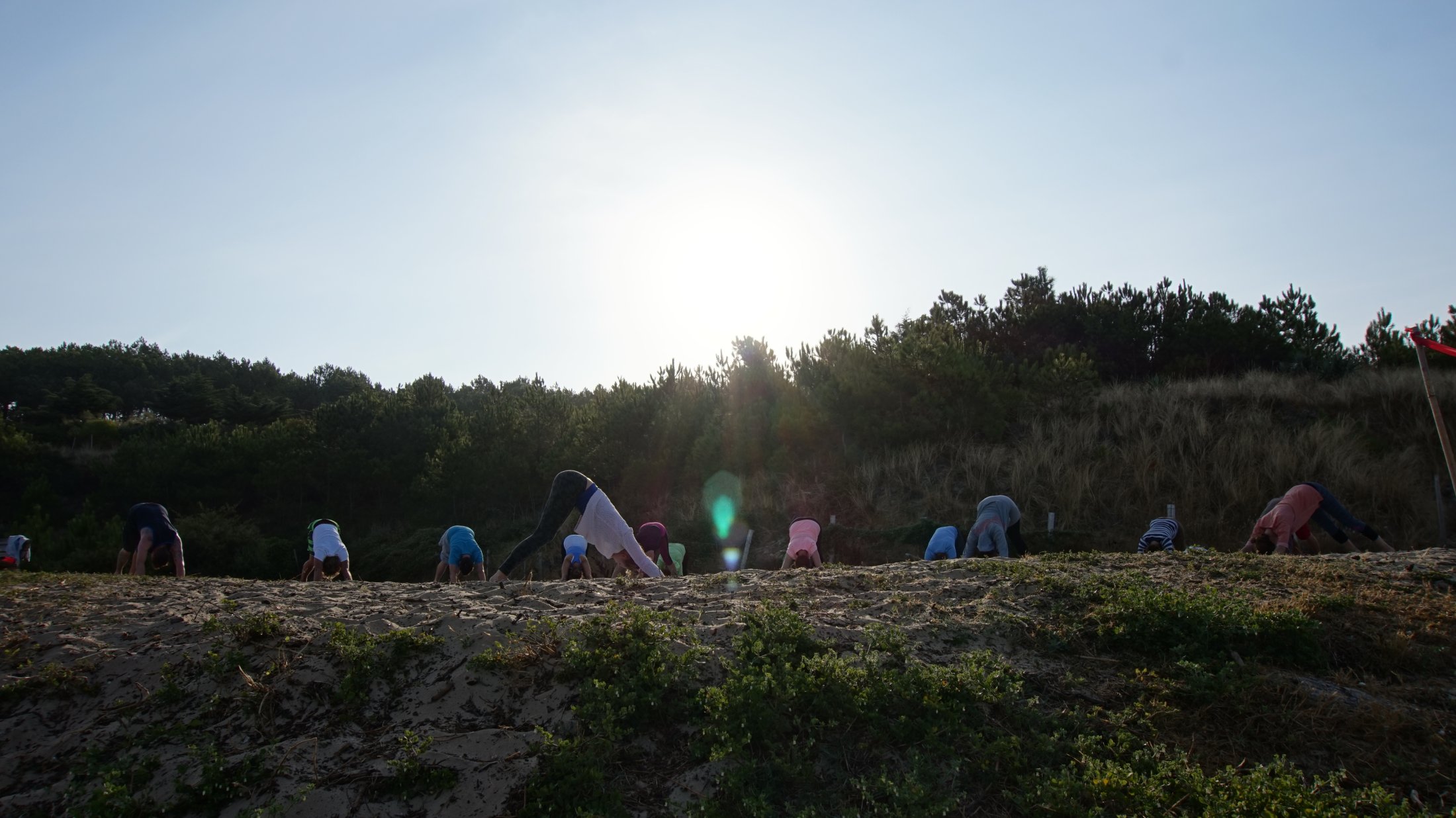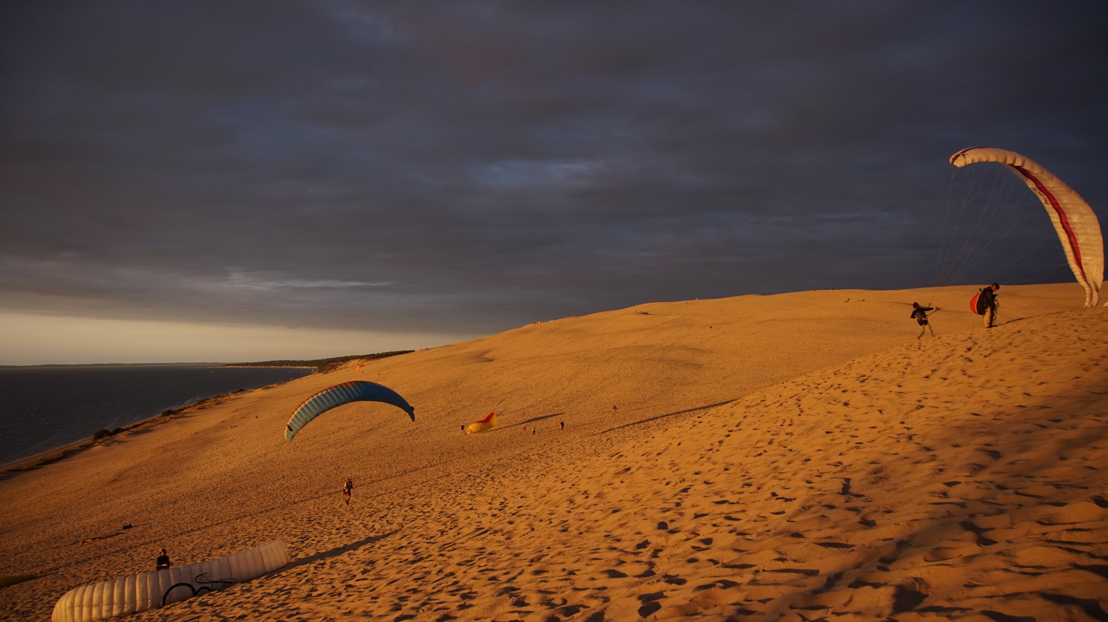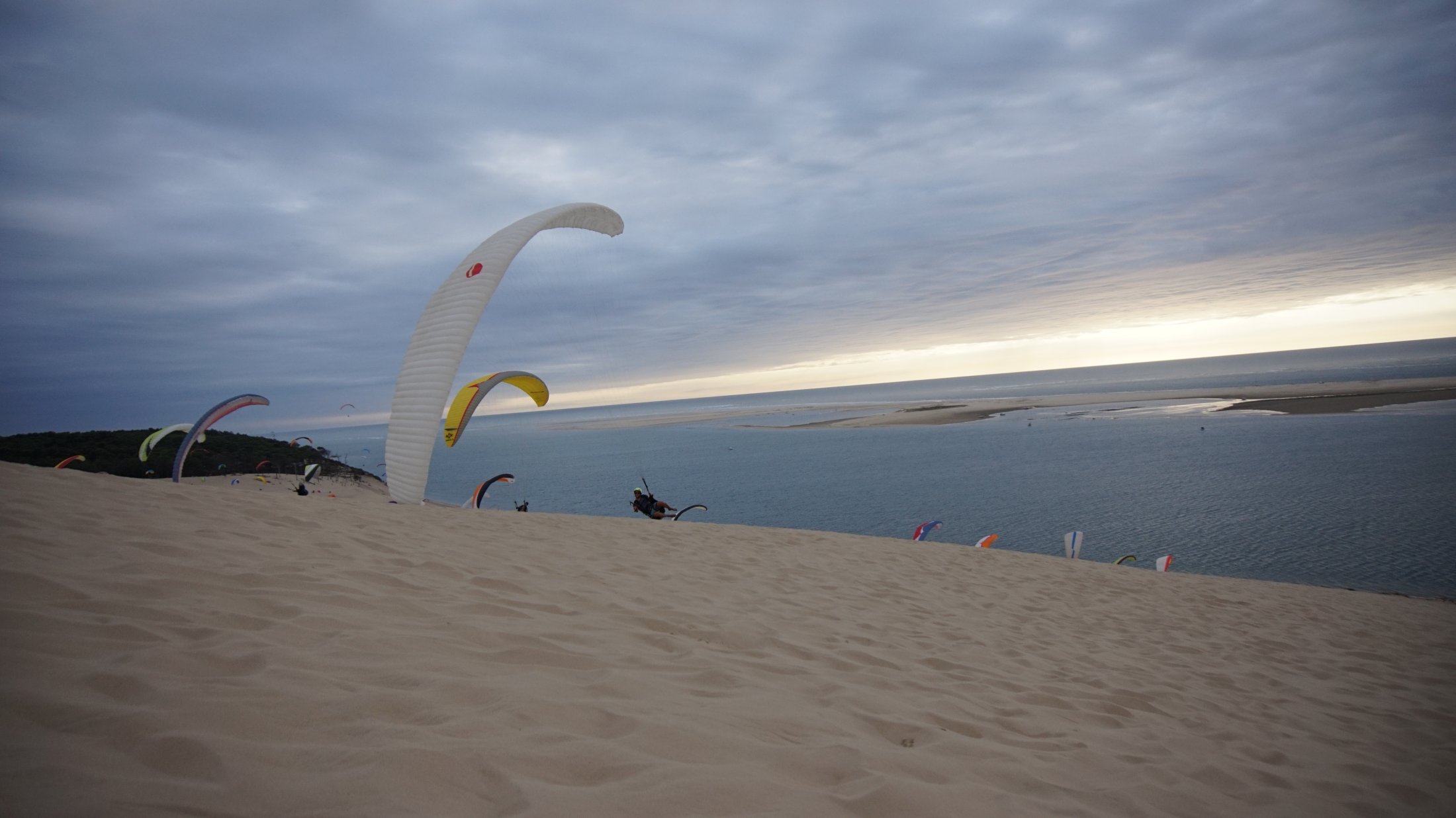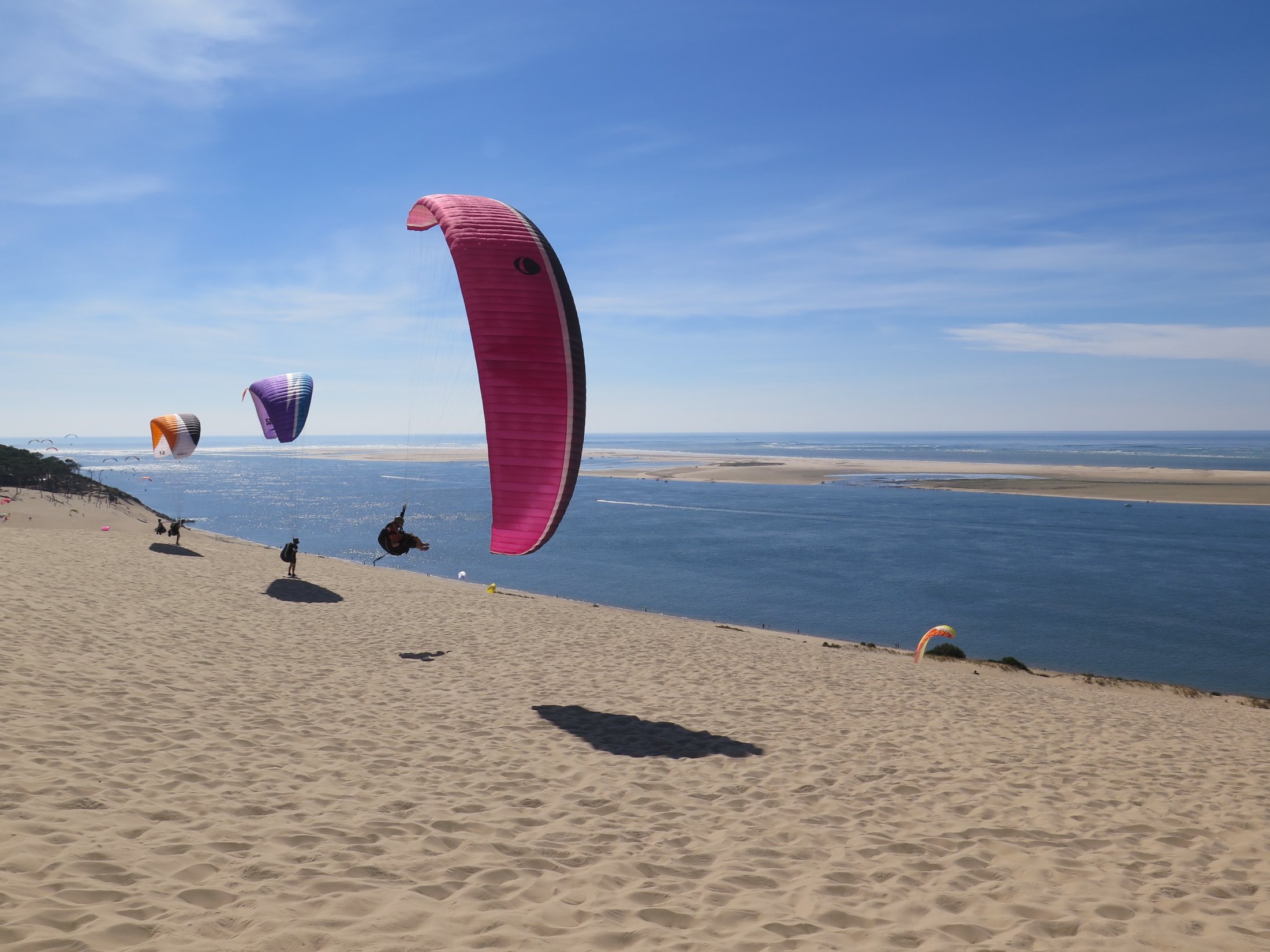 Pyla, eine Woche keine Socken tragen, unter Girlanden Roten trinken, sich durch den Sand ziehen lassen, Indisch essen, durch den Sand gezogen werden, warten auf Wind, hoffen dass er nicht noch stärker wird, Ziggis paffen zum Löcher brennen, Agrum aus Gütterli trinken, zittern auf der Slackline, Sand im Sandwich, übermüdet nicht aufhören können, Sonnenuntergang zum Apéro, Filterkaffee und Pain au Chocolat, Leinensalat und Sand in allen Zellen, blaue Flecken überall, Kobrastarts und Waggas, strahlen übers ganze Gesicht und Sternenhimmel, Austern und Champus, beduselt Kumbaya "singen", Sand im Bett, Meerduft und gesalzene Butter und die Hoffnung, es möge nie enden...