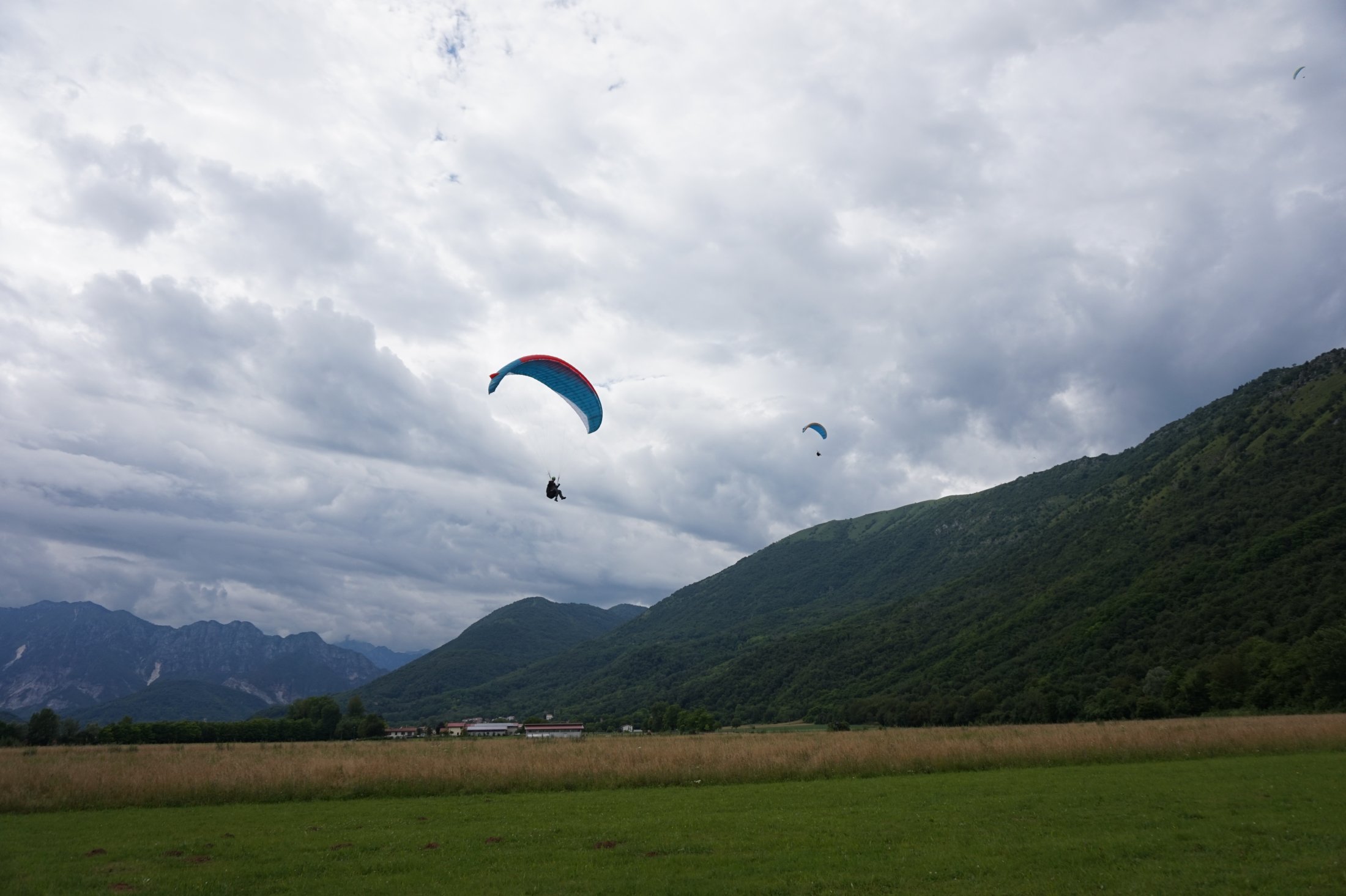 Nach thermischem Flug vom Stol und von der Kobala freuten wir uns jeweils über etwas Schatten am Lande- und Faltplatz, auf das kühle Bier und Flussbad danach und die anschliessende Grillade im Garten unserer Gastgeber Sabine und Wolfgang. Gerne hätten wir das täglich wiederholt. Was uns in Slowenien zeitweise verwehrt blieb, wurde in Italien möglich.