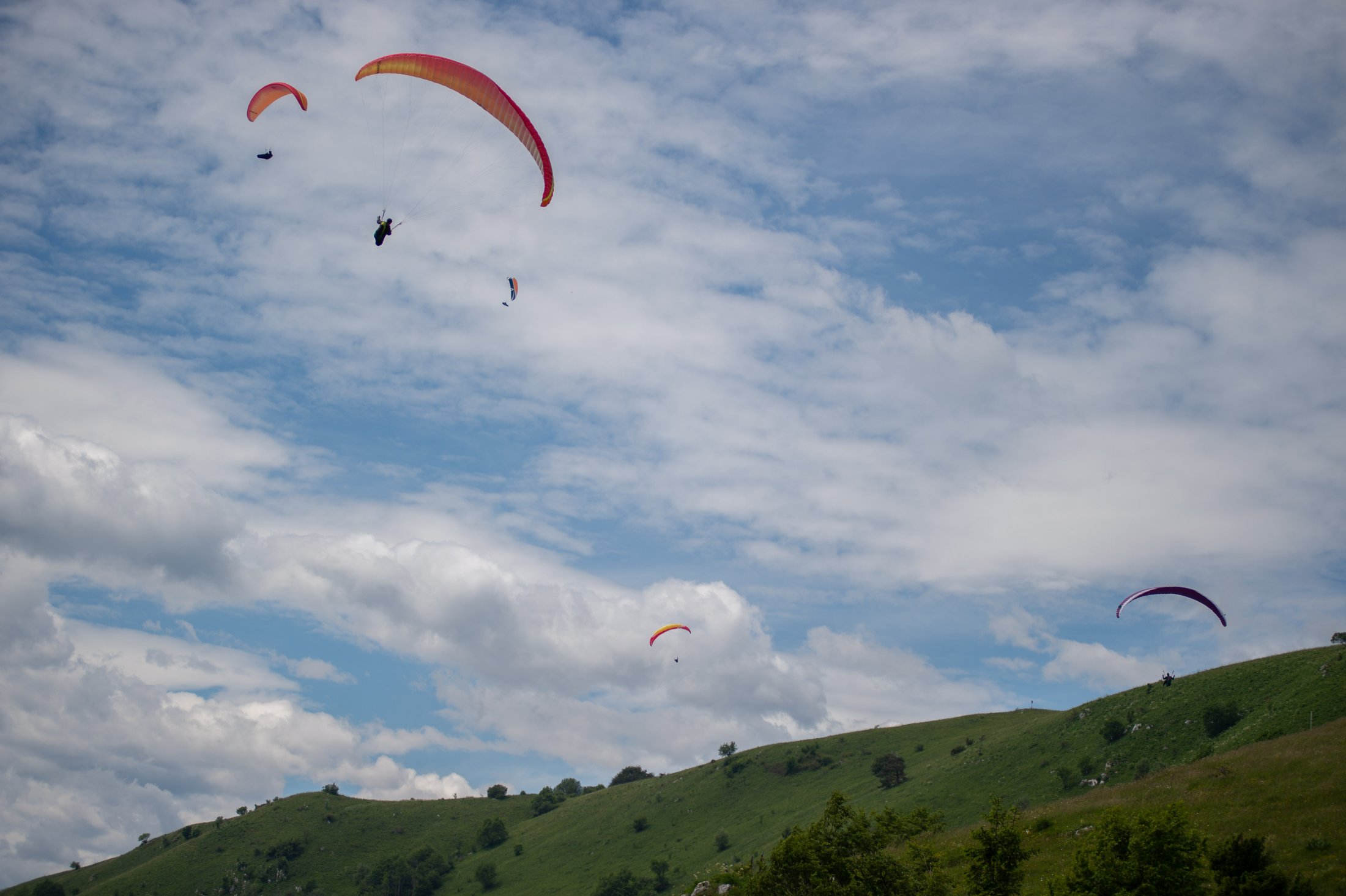 Unsere Reise begann im Drautal mit Nordföhn, weshalb wir gleich am ersten Tag schon nach Meduno flüchteten. Dort waren zwar keine langen Streckenflüge angesagt, dafür genossen wir die Zeit in der Luft und übten fleissig Toplandungen. Einige versuchten als Challenge am Nachmittag nach San Daniele zum Restaurant zu fliegen, wo wir super fein Znacht assen, um danach gestärkt die 2.5h Rückweg anzutreten.