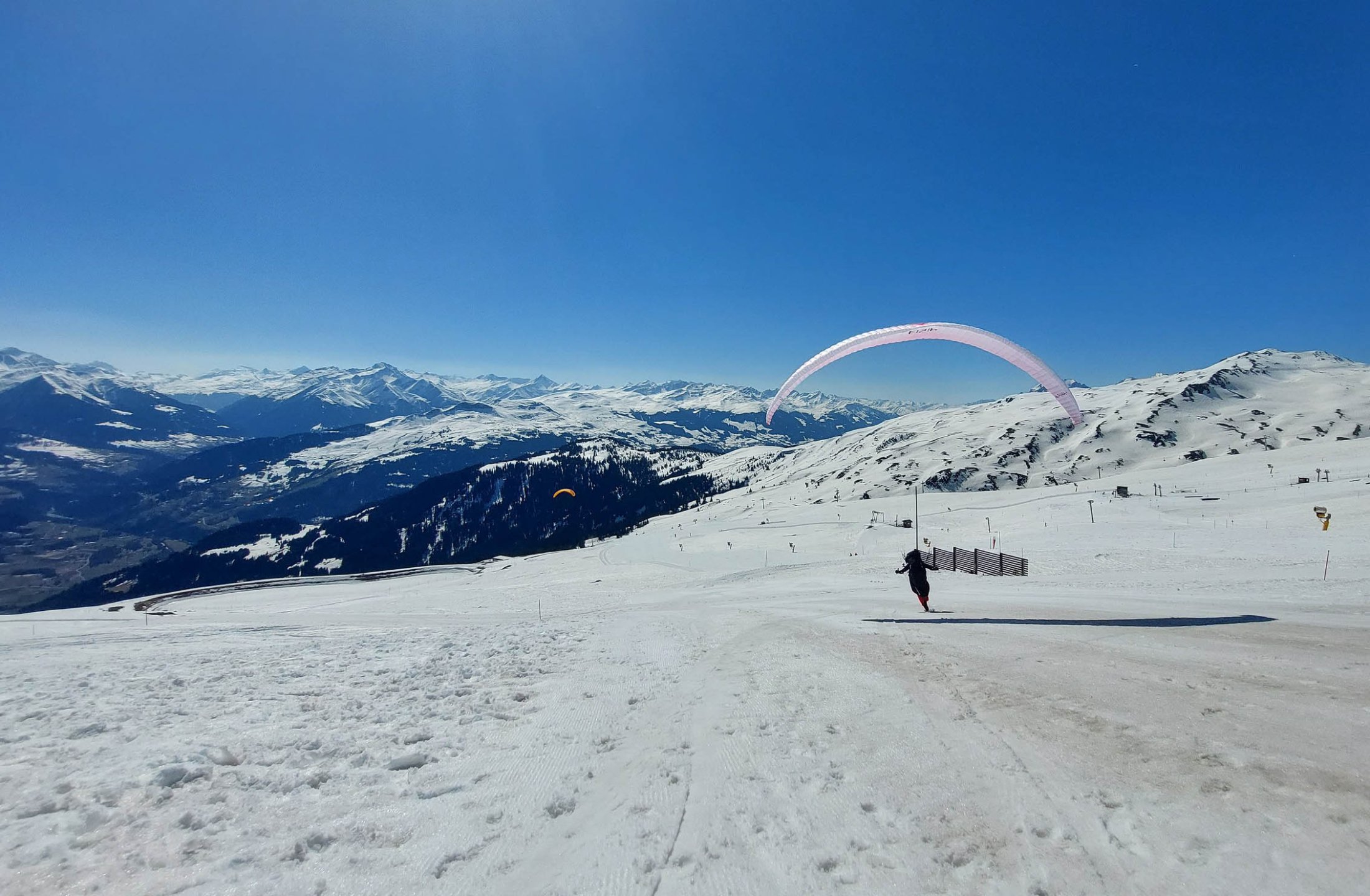 Im Paraworld Meteobriefing fragen wir: "Wo in der Schweiz findest du die besten Thermikbedingungen". Die Antwort der Flugwoche mit Kaspar: Flims. Zuerst zeigte Flims seine Vorteile bei Südüberdruck, bei dem wir in Flims fliegen konnten, während anderswo in der Schweiz seichter Föhn herrschte. Danach stellte sich ein Hammer-Flachdruckhoch ein, mit Traum-Temperaturgradienten in der Surselva. Die Basishöhe stieg auf über 4000m, so dass das permanente MIL ON Limit uns doch tatsächlich deckelte. Und die Reiseteilnehmer:innen wussten die Situation zu nutzen: Alle Schüler:innen landeten am Crap Sogn Gion top, und wir konnten sogar auf ein Strecken-Schulreisli gehen. Die Brevetierten stellten neue persönliche Höhenrekorde auf, wagten sich auf erste Strecken oder legten gar Strecken von über 100km zurück. Wow! Herzliche Gratulation allen Teilnehmern:innen!