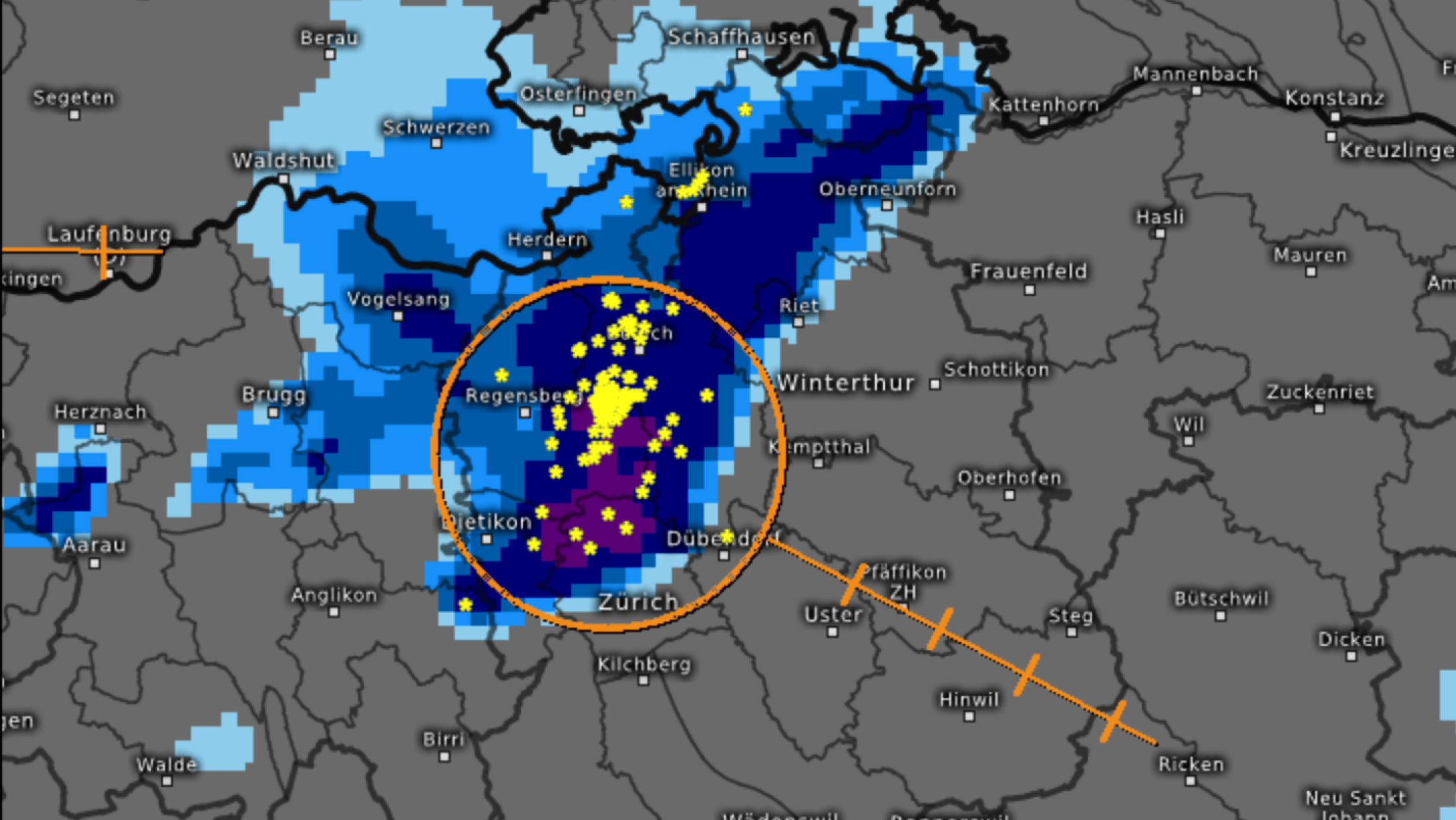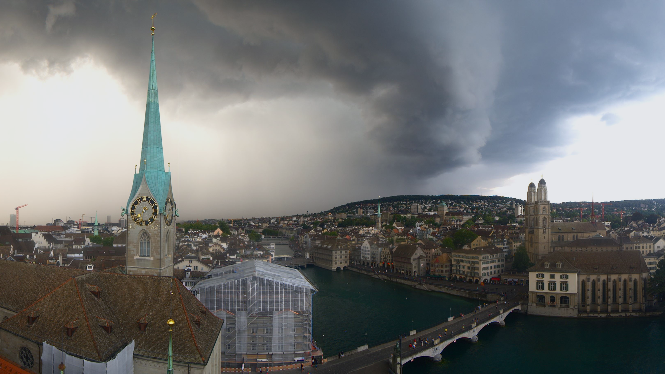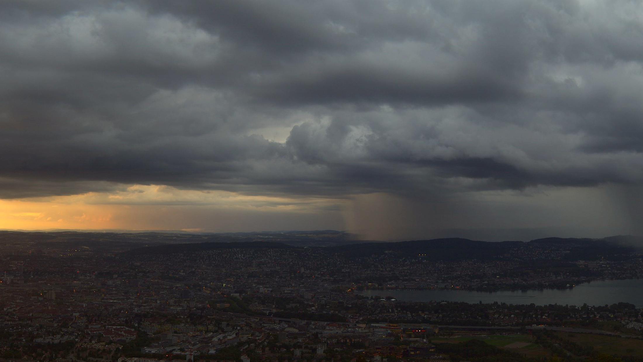 Die nachmittags eintreffende Kaltfront brachte nur wenig Regen. In der Folge errreichte jedoch eine sehr potente Gewitterzelle den Kanton. Diese Zelle kam von Westen und erreichte um ca. 19:20 Uhr Zürich und ihre grösste Potenz. Nebst einigem Niederschlag waren unheilschwanger wirkende Wolken die Vorboten und Folgeerscheinungen dieser Superzelle.