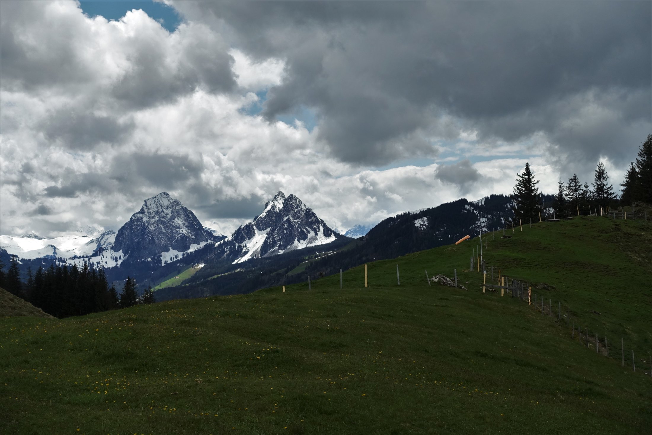 Die beiden folgenden Bilder wurden zum selben Zeitpunkt aufgenommen, am 30. April 2022 um 10:10 Uhr. Zwei Stunden zuvor passierte eine schwache Kaltfront die Schweiz. Das erste Bild zeigt den Blick vom Üetliberg Kulm über das Auegstertal und Säuliamt in Richtung Süden: postfrontale Subsidenz, der Himmel wird löchrig blau, die Sonne heizt ein, es verdampft der Niederschlag und es bilden sich Cumuli mit tiefen, unterschiedlich hohen Basen. Das sieht doch schon mal vielversprechend aus! (Quelle: Rountshot Üetliberg) Das zweite Bild fängt den Blick vom Weissboden im Schächental über das Haldi zum Hoch Fulen in Richtung Süden und Alpenhauptkamm ein: geschlossene Wolkendecke mit Schauern und wenigen Anzeichen auf eine kurzfristige Wetterbesserung. Hier sind wir am falschen Ort! (Quelle: Roundshot Biel-Kinzig)