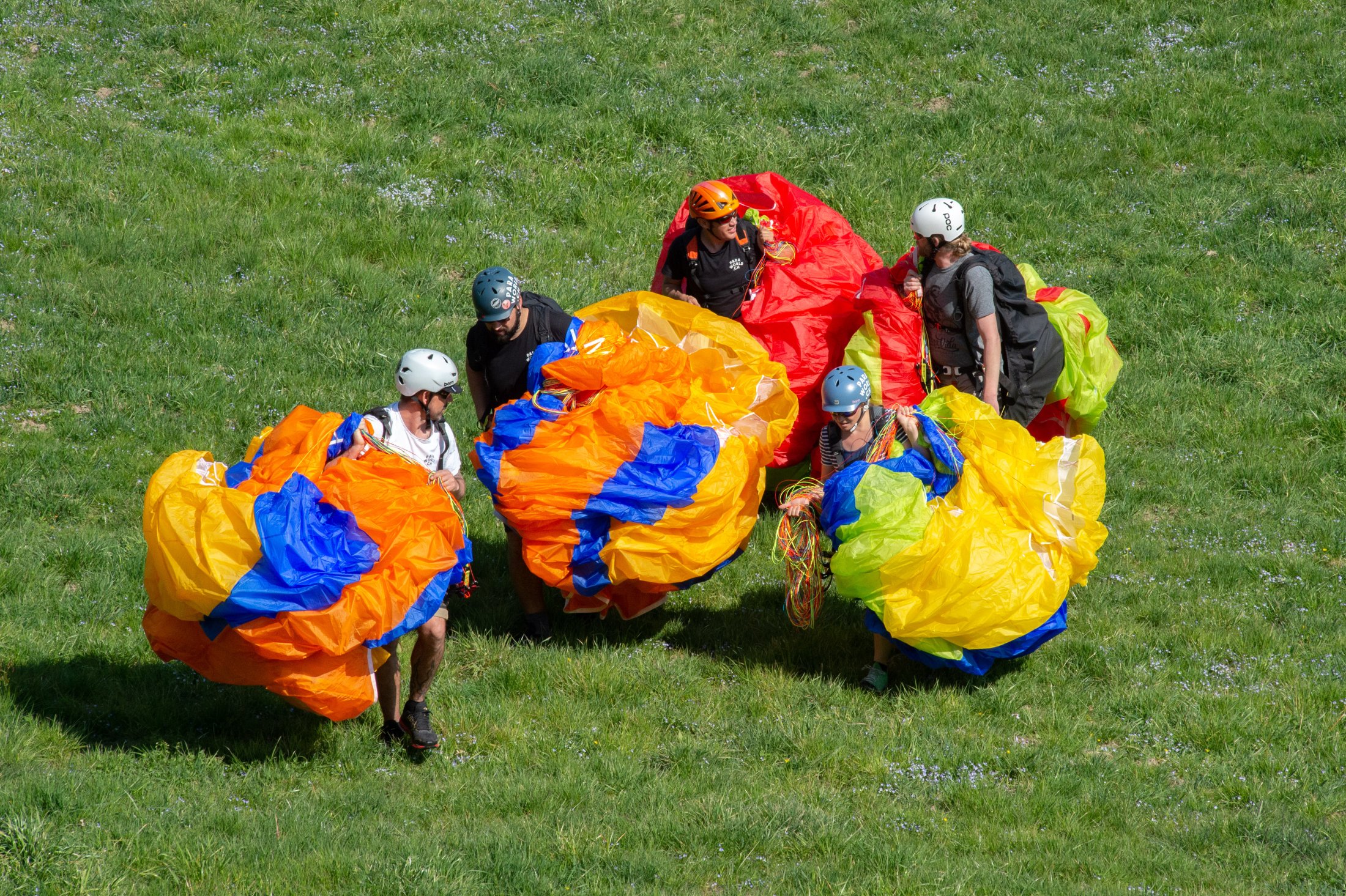 Two of our instructors will show you the ropes using the right school equipment. Under our expert guidance, you will learn how to get a paraglider ready for take-off, find the best position on the slope and take off on your own high-flights.