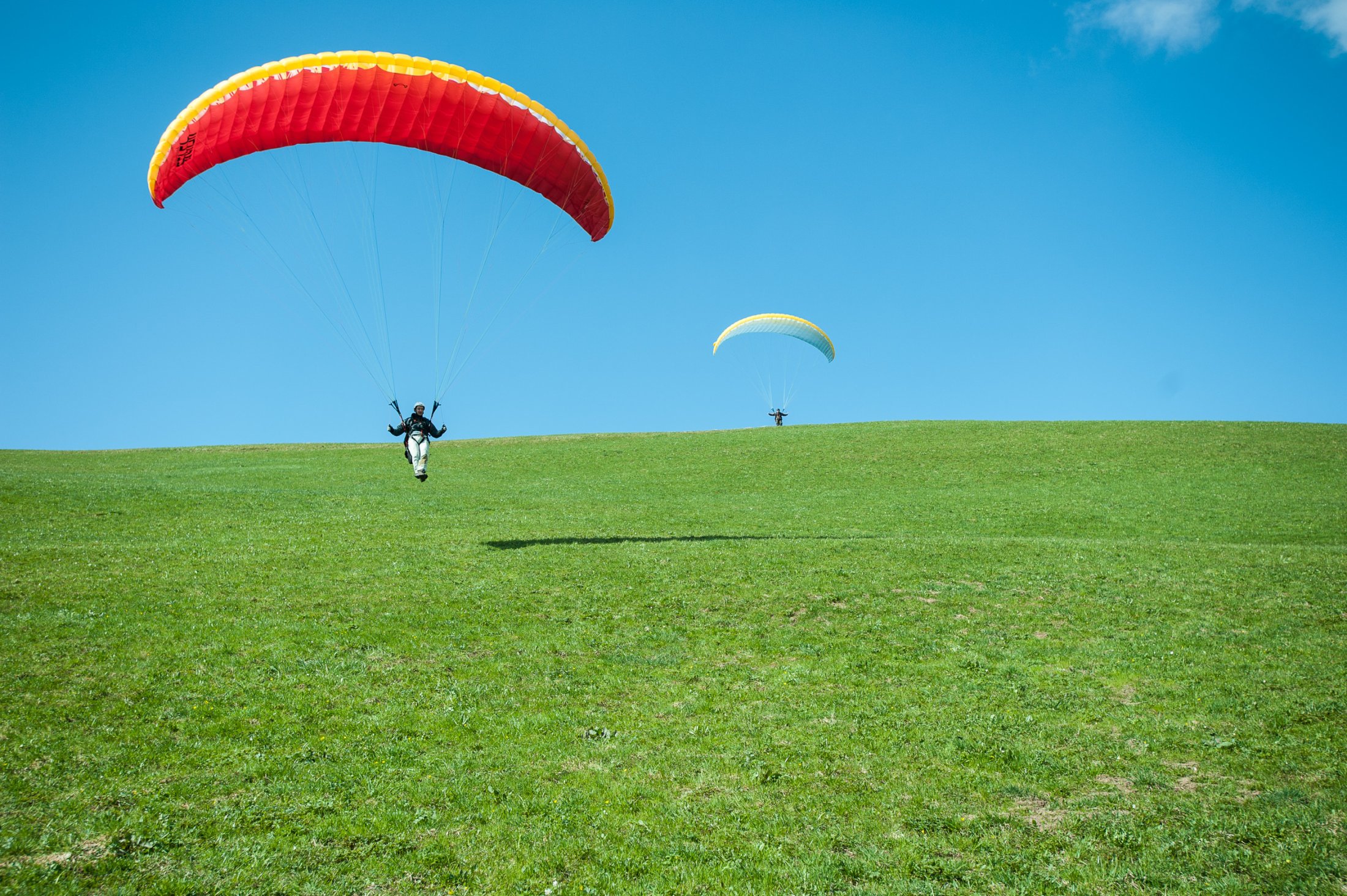 Natürlich läuft die ganze Grundschulung unter Aufsicht eines Fluglehrers ab, der Dich am Funk begleitet und optimal auf den ersten Höhenflug vorbereitet. Ein Tag Höhenflüge ist der krönende Abschluss dieses Gleitschirmkurses – Du fliegst zum ersten Mal allein in einem unserer Fluggebiete mit richtig viel Höhe! Wenn Dir das gefallen hat, dann geht die Ausbildung auf den Höhenflügen weiter bzw. erst richtig los.